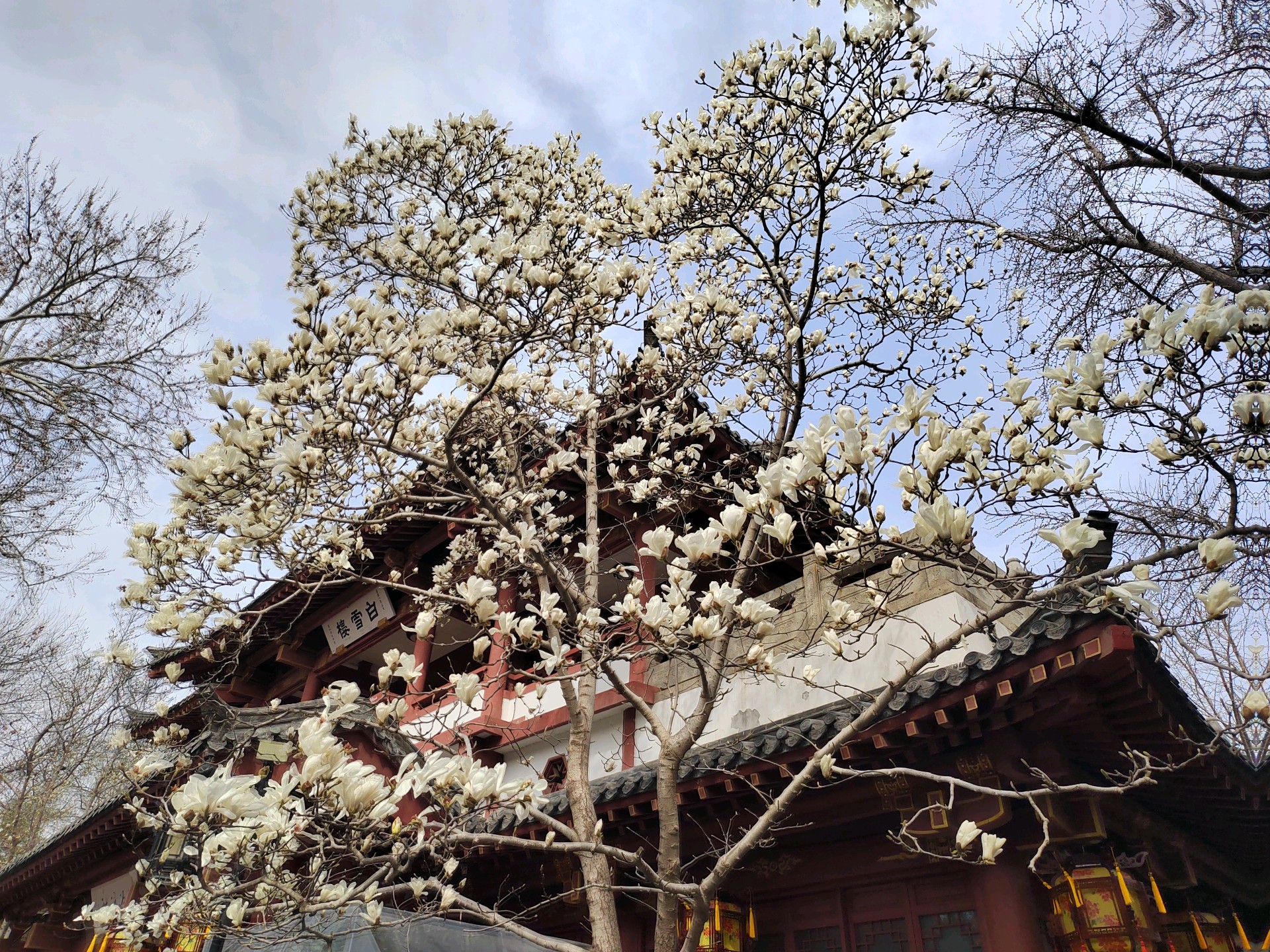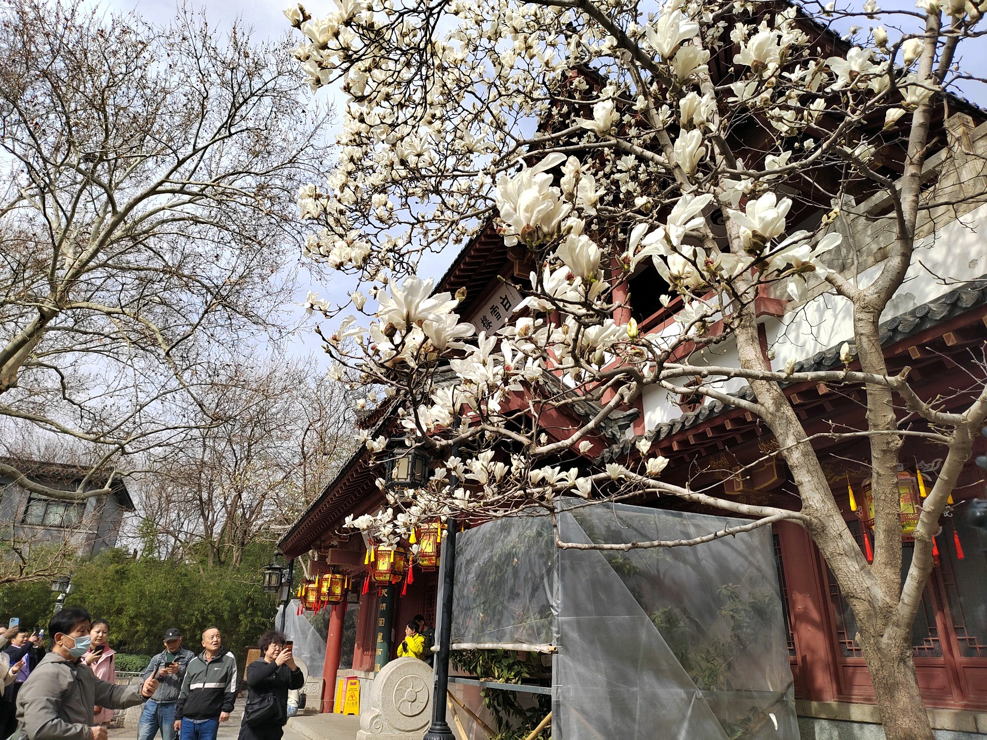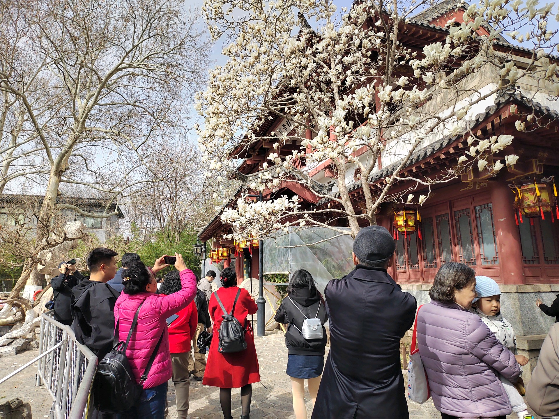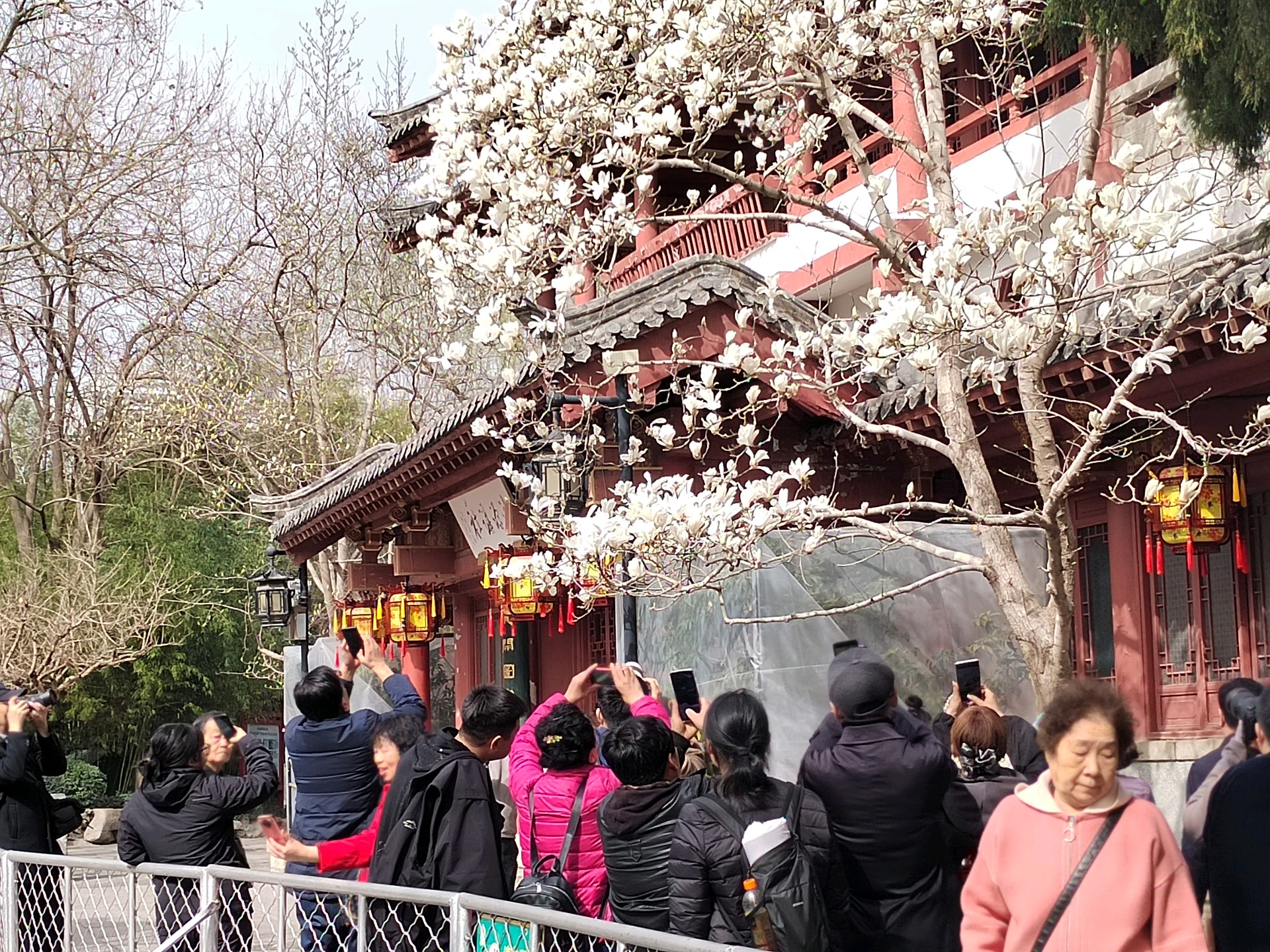 打卡风景如画的趵突泉公园,白雪楼前的玉兰花俏丽枝头,与古色古香的白雪楼交相辉映,美不胜收!吸引了众多游客前来打卡。