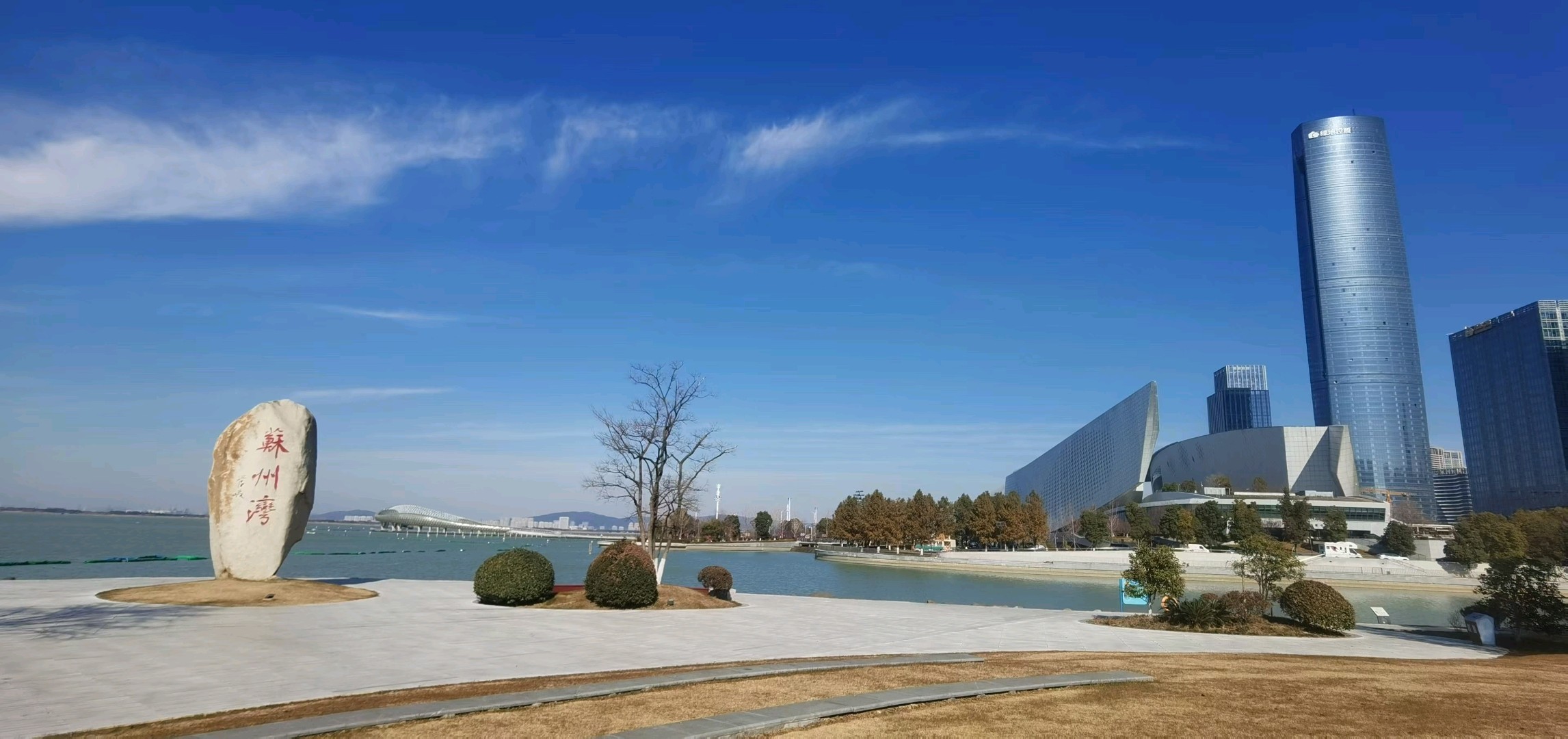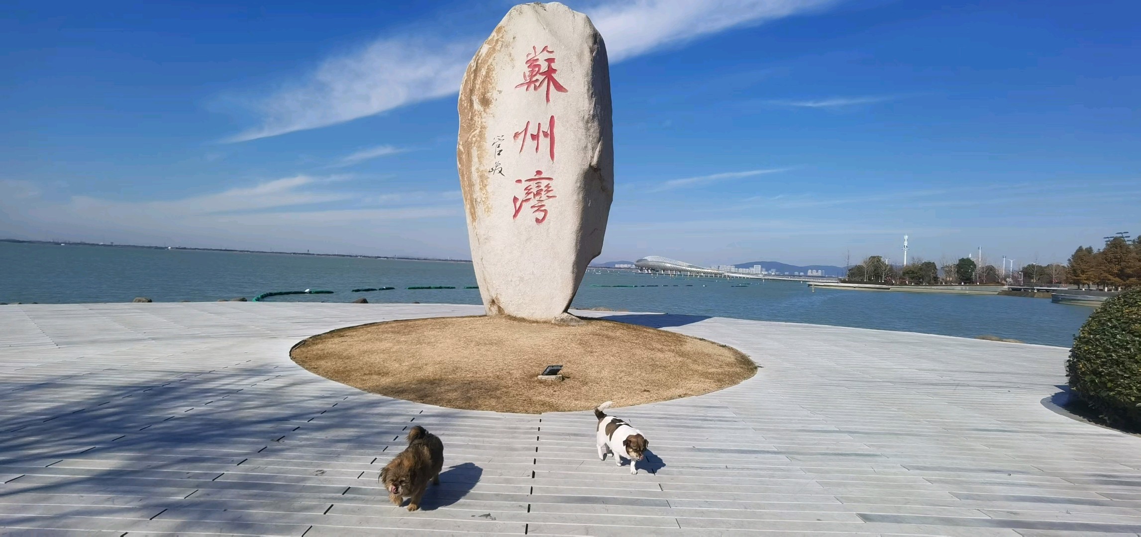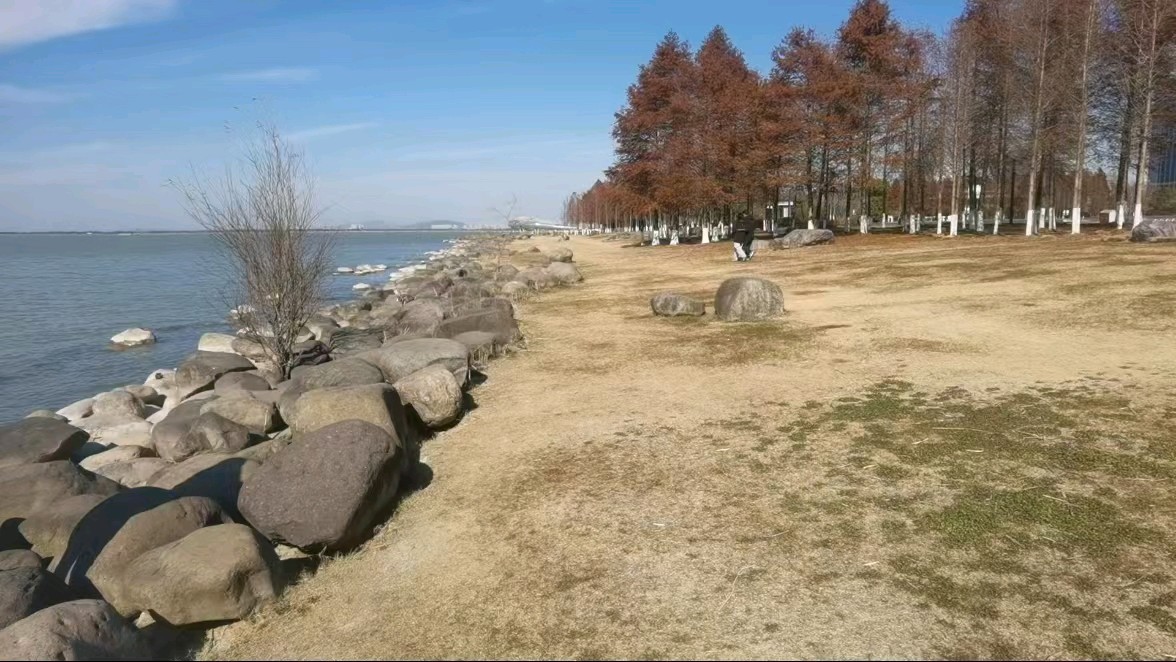 苏州湾位于中国江苏省苏州市吴江区,是太湖的一个湖湾。天蓝蓝的,湖水在阳光的照耀下闪烁着粼粼波光,微风清佛,湖面泛起层层涟漪,好美!