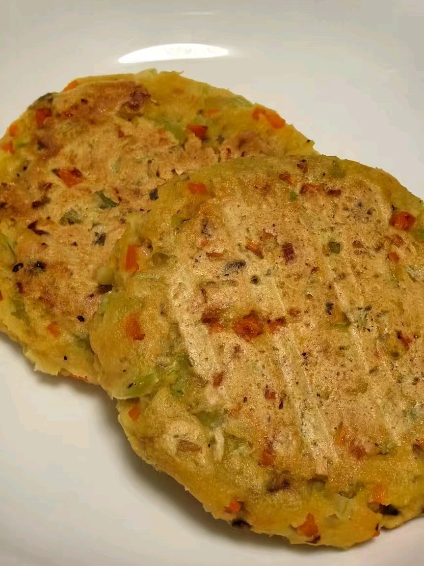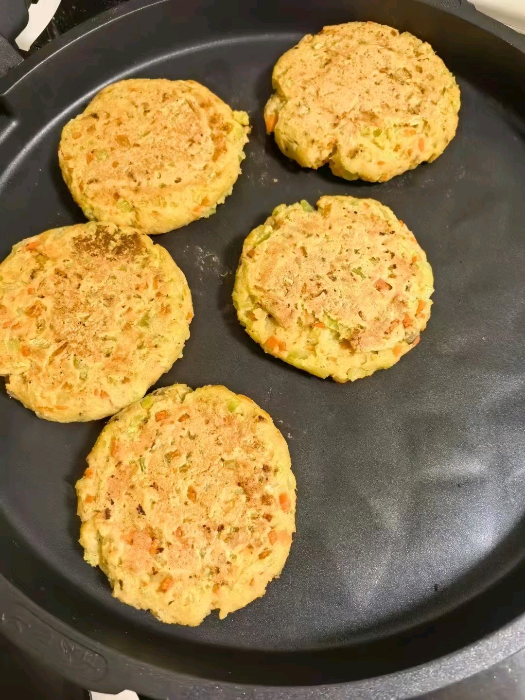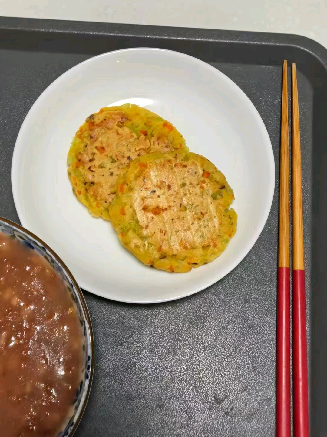 早上做豆浆剩的豆渣,学做了豆渣饼,香味可以,味道调咸了点。自己做饭,其乐融融!