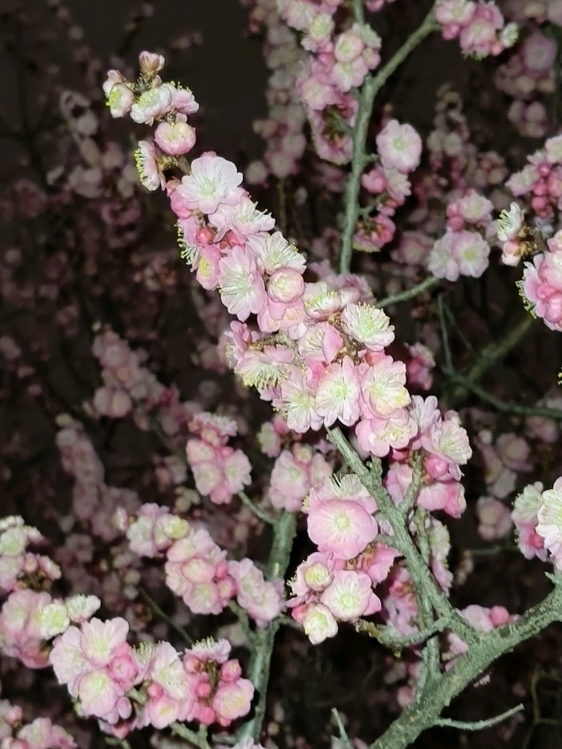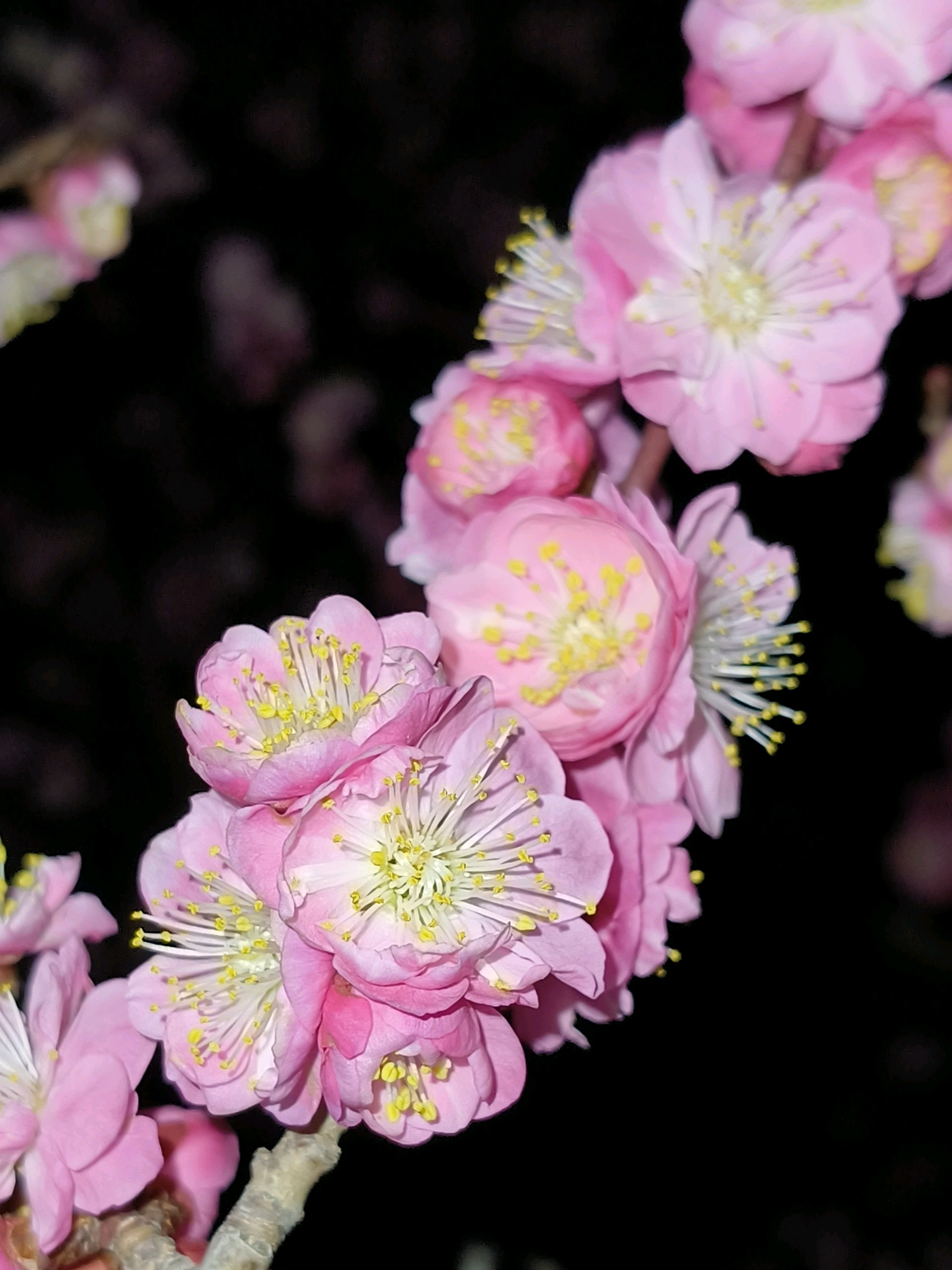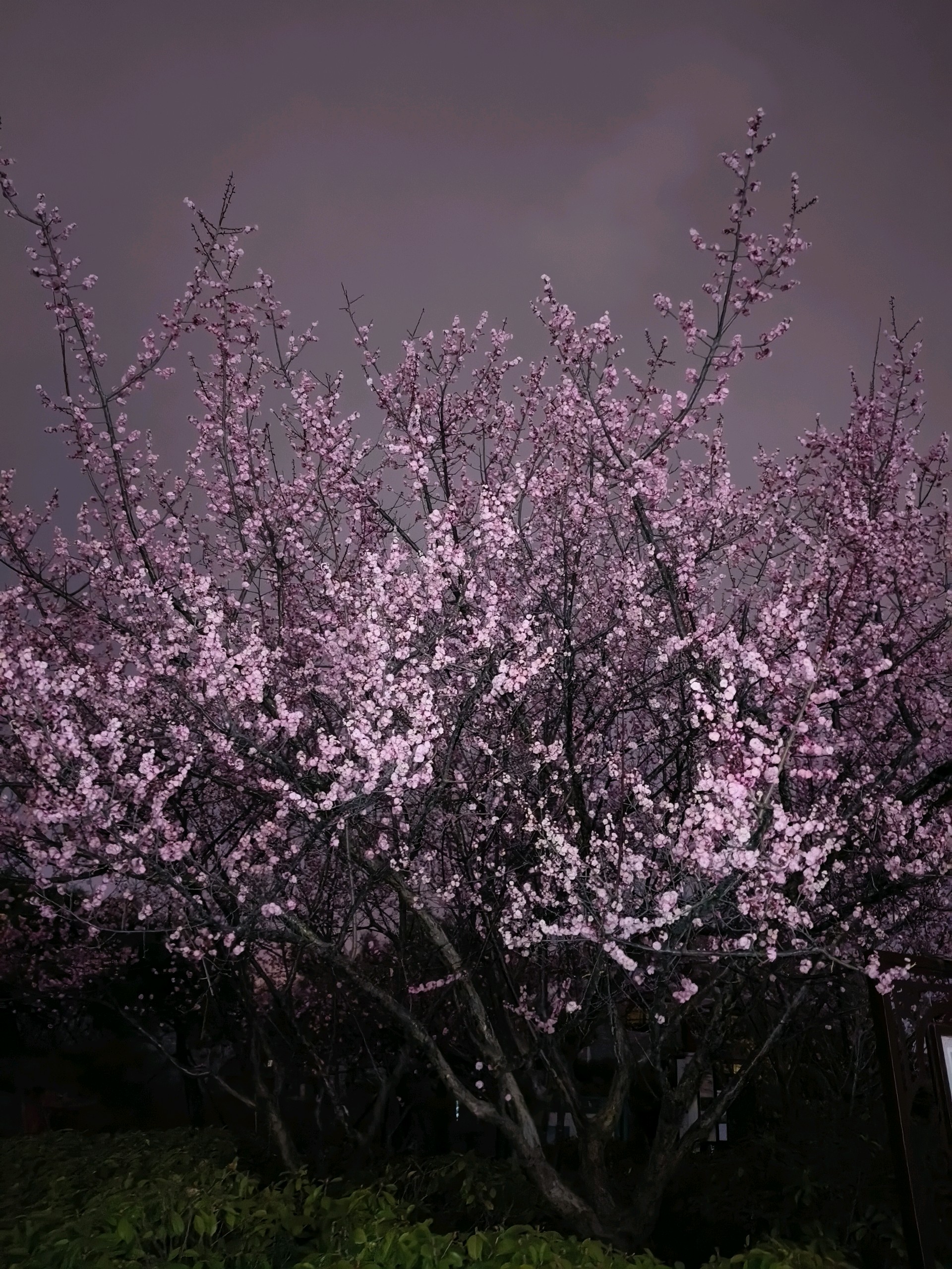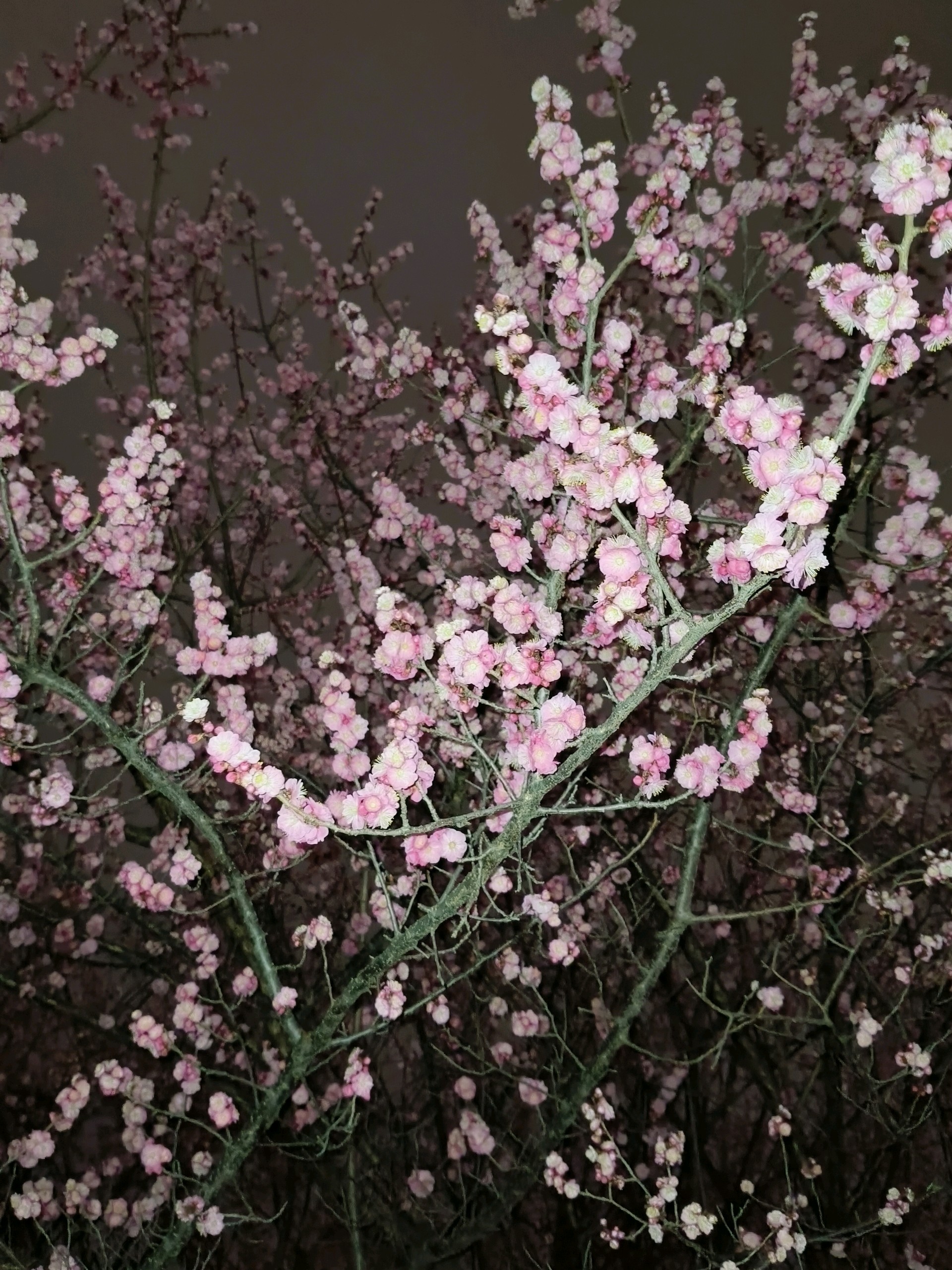 白天路过公园的时候,看到了一团火,恍然间知道了梅花开了。夜晚虽然光线不好,但夜色中的梅花暗自飘香,别有一番景致。