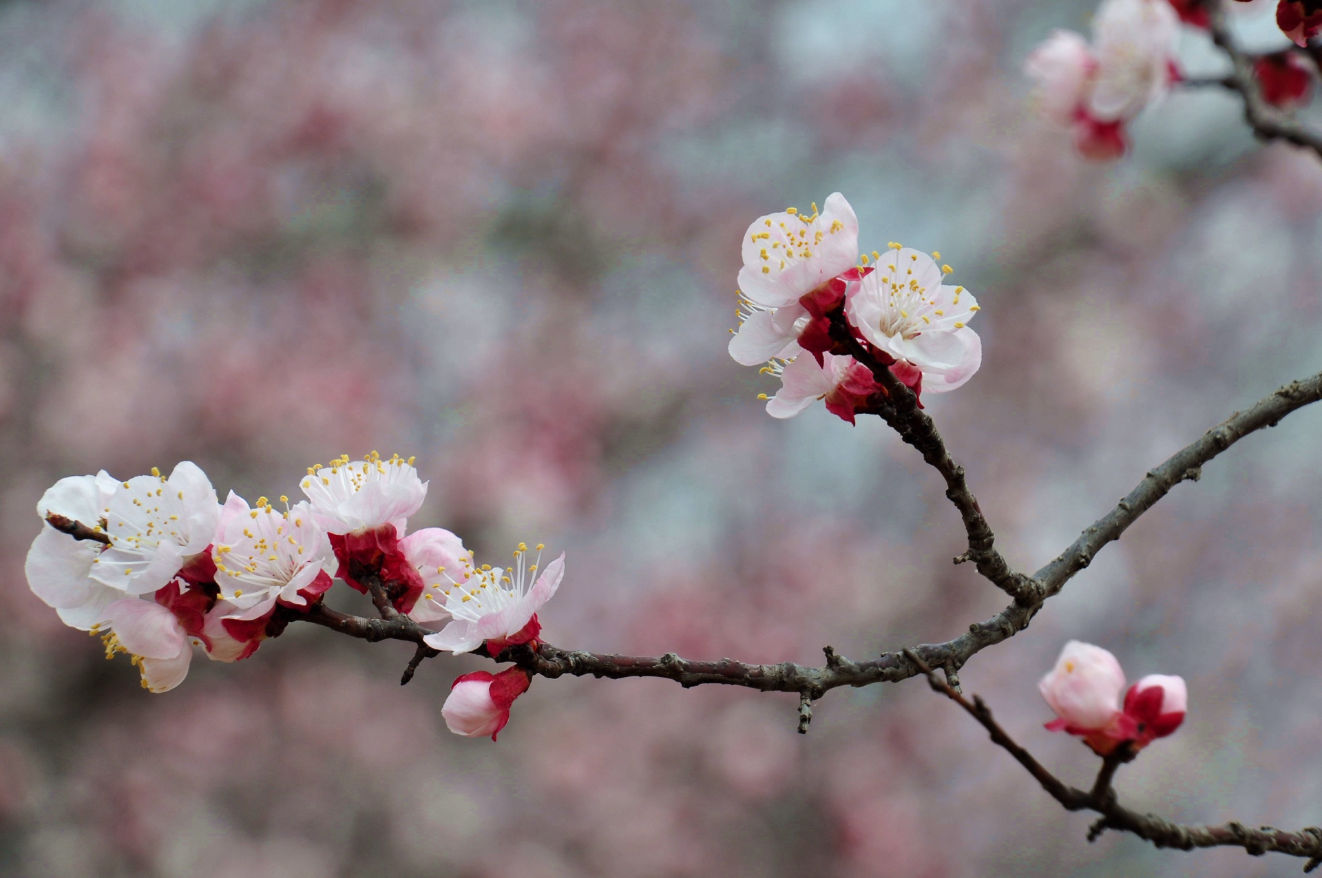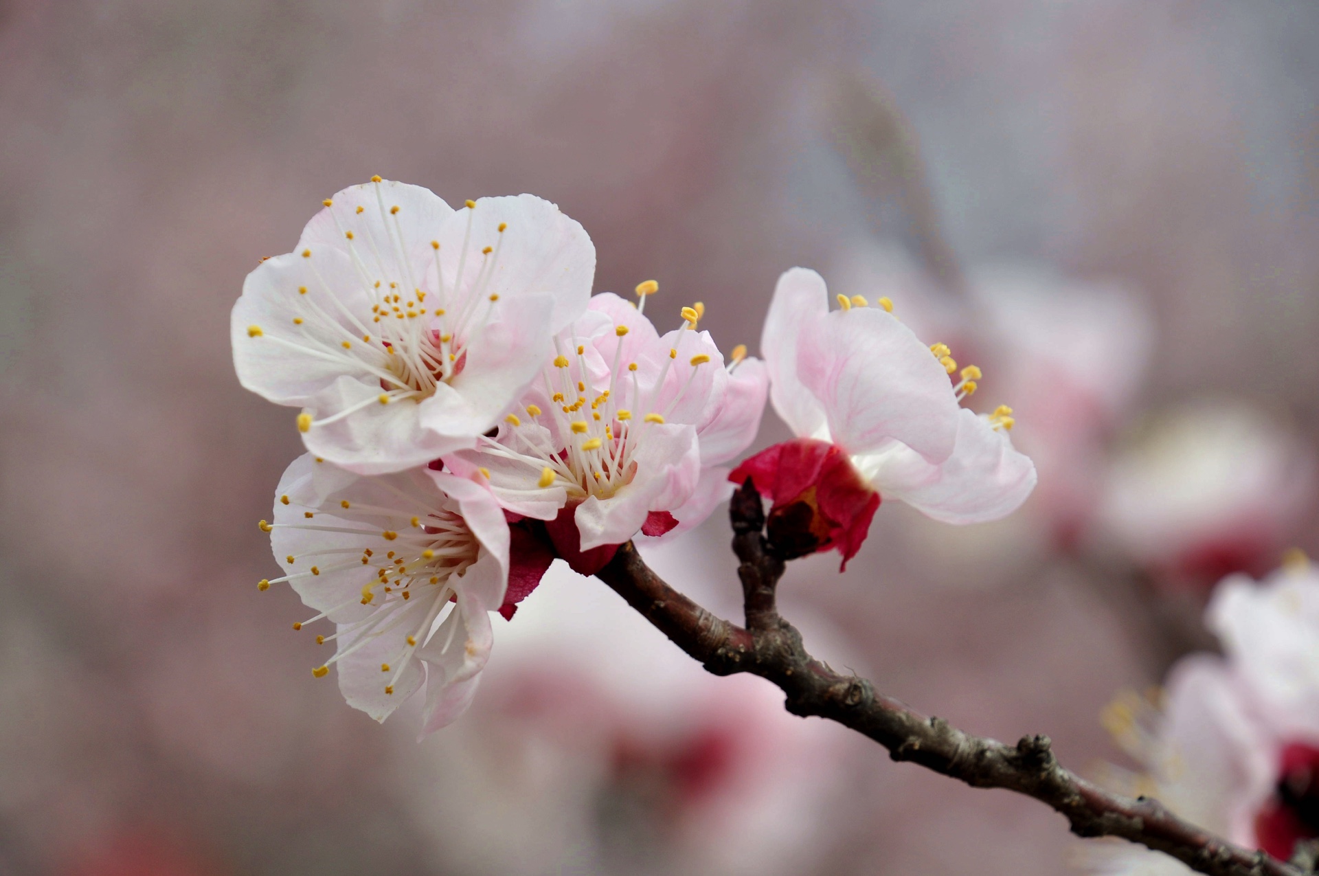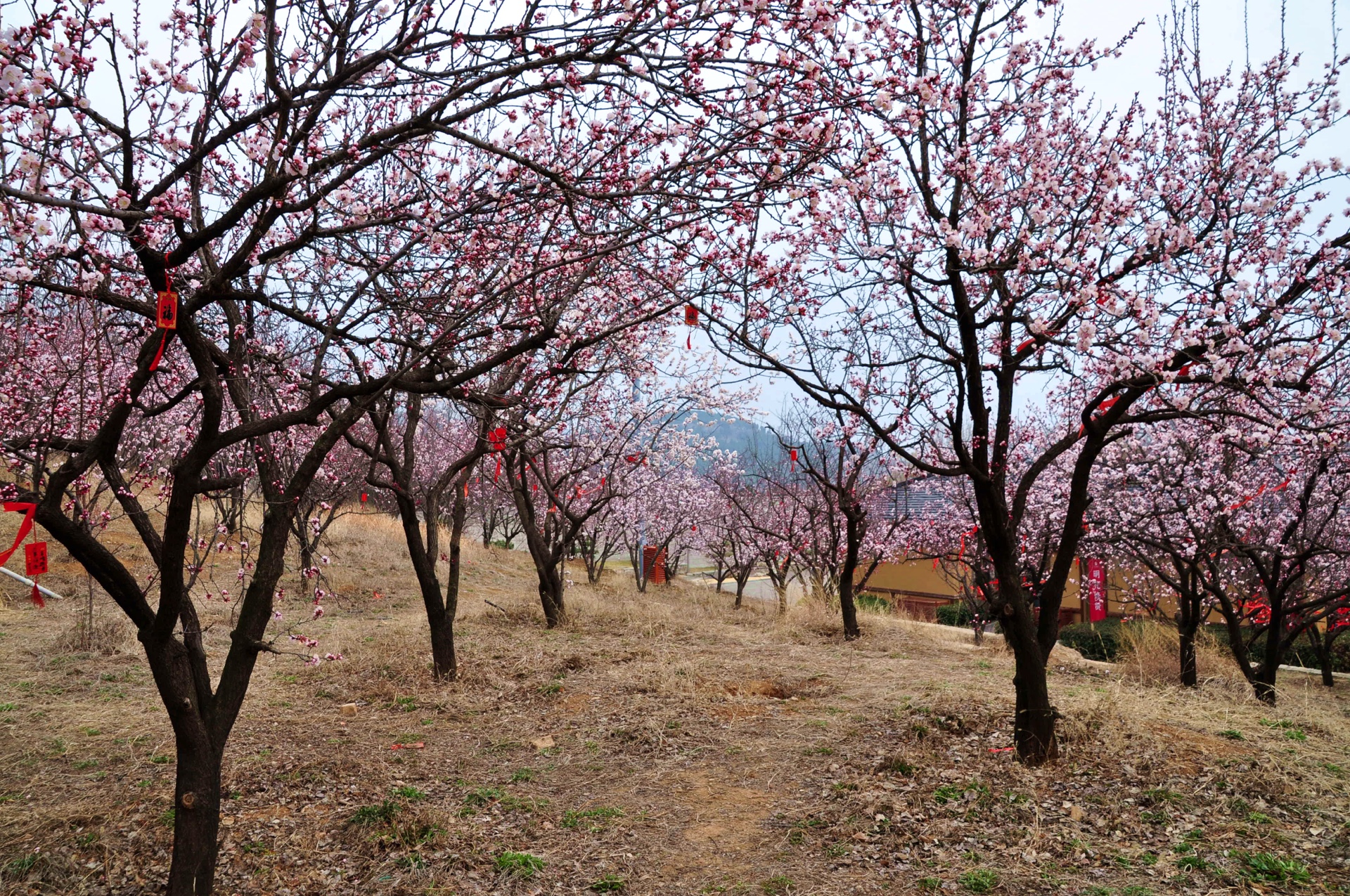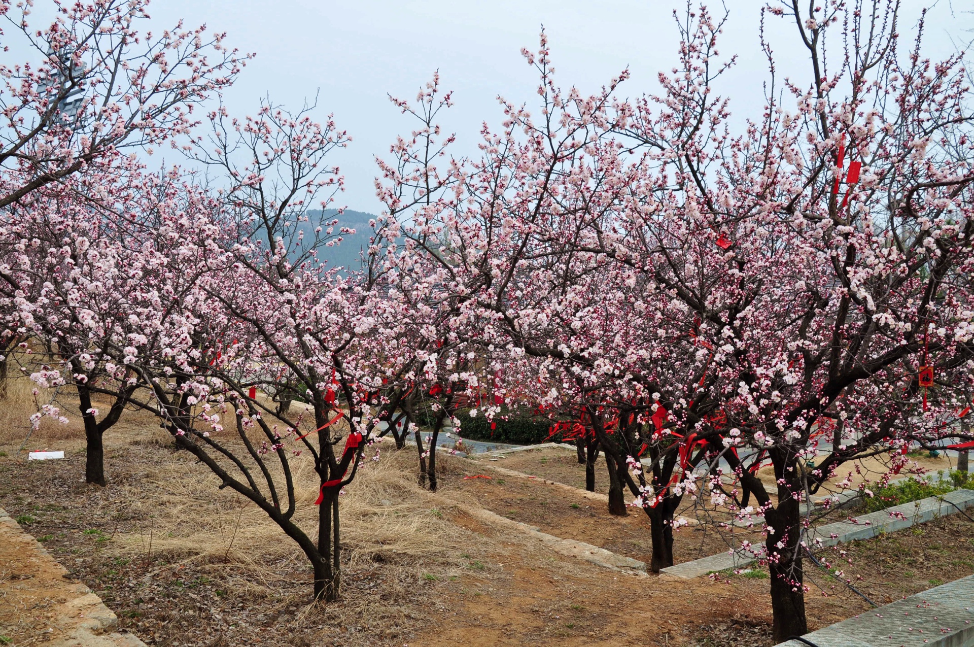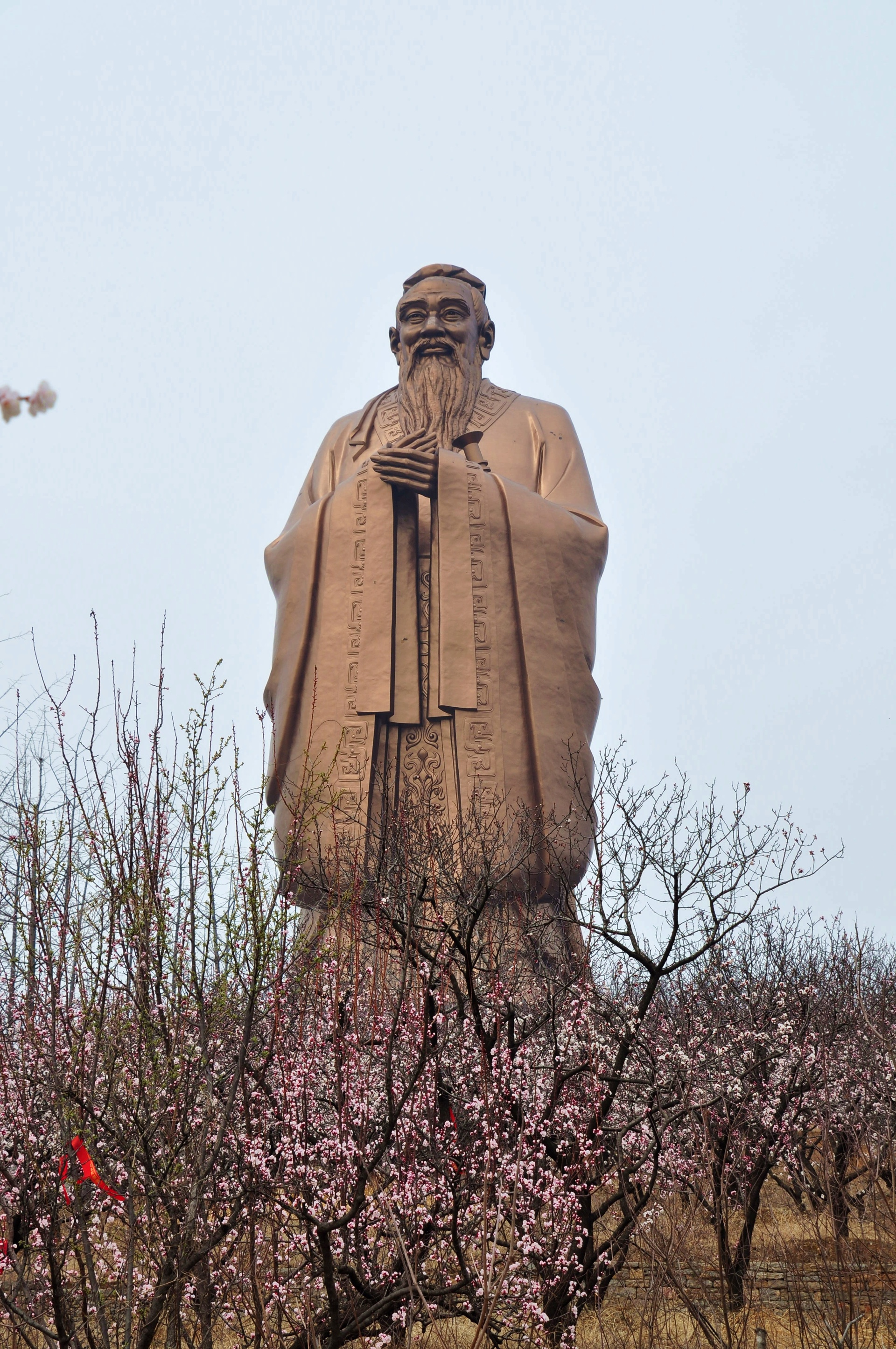 尼山圣境孔子像天命大道两侧的杏花盛开