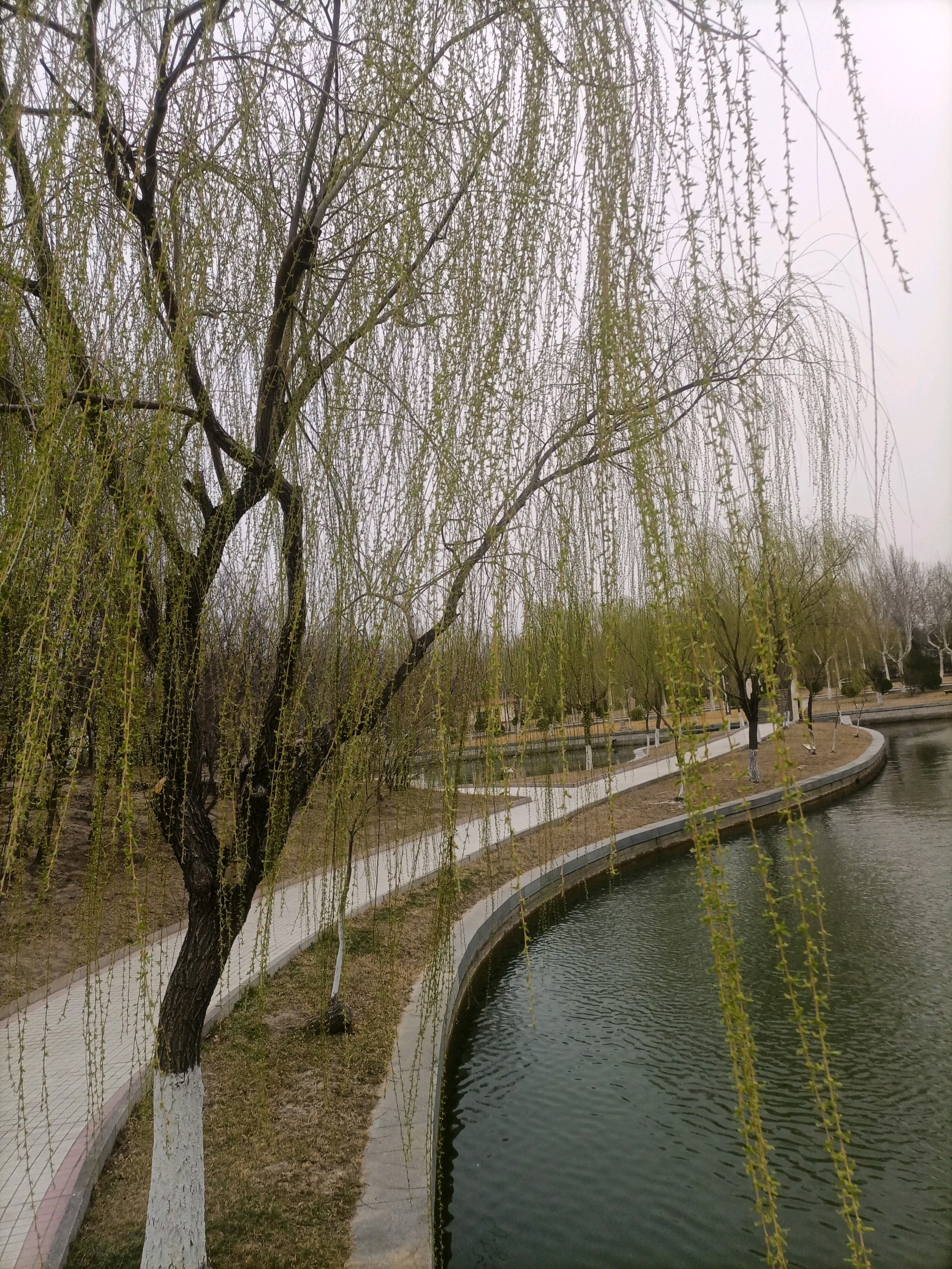 初春的聊城大学校园,湖水碧波荡漾,柳枝绿意盎然。