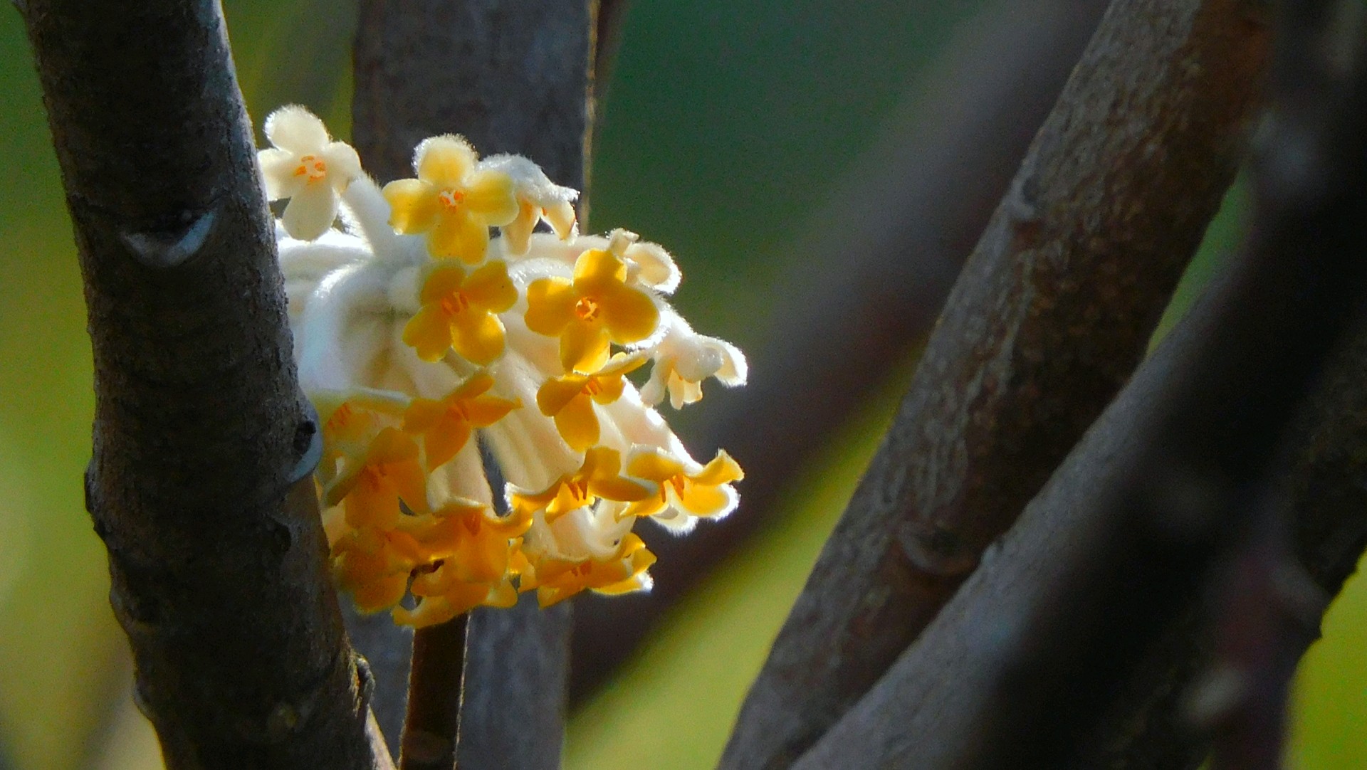 趵突泉公园里拍结香花,结香花象征美好愿望与梦想成真:其柔软的枝条可以打结而不折断,这一特性被人们赋予了“永结同心”和“美好愿望”的象征意义