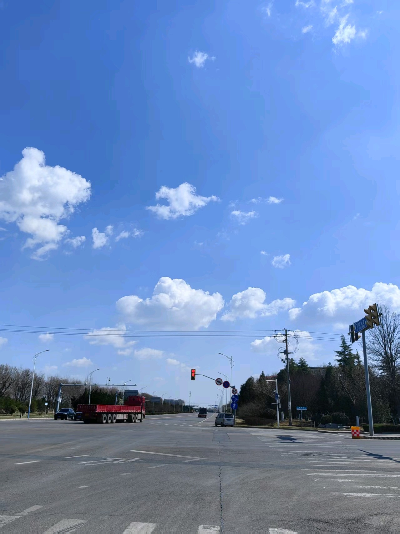 济南东部,晴空如洗,万里无云。湛蓝天空似澄澈海洋,洁白云朵像绵软棉花糖,好一幅明媚春日画卷。