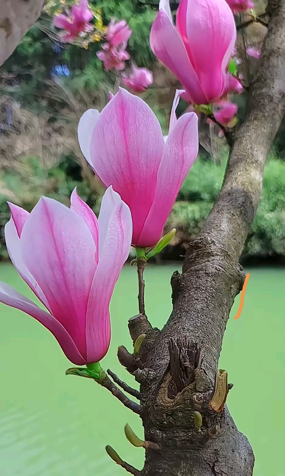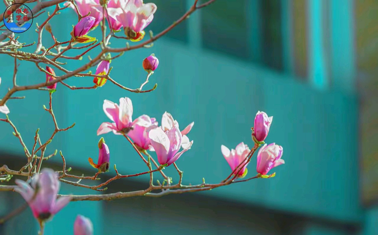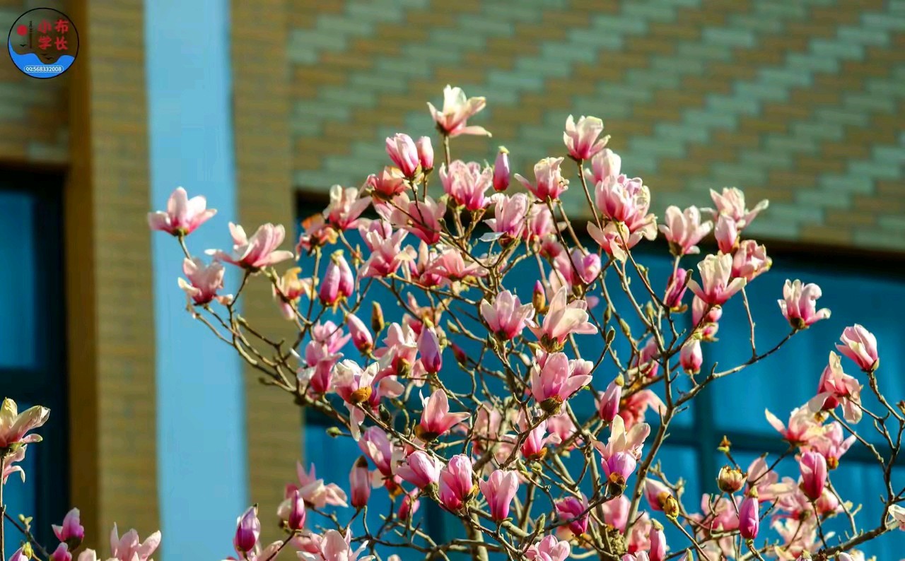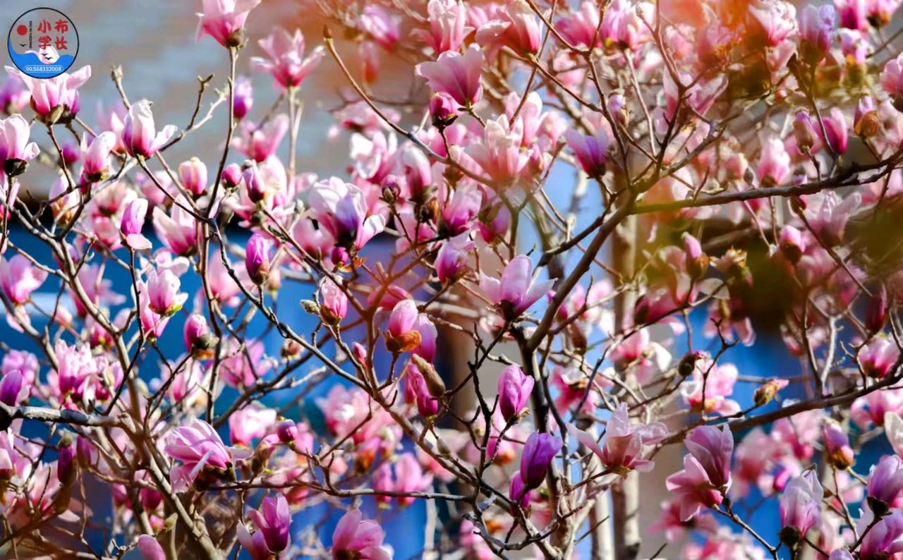 春日的阳光,透过粉嫩的玉兰花,风景很美。