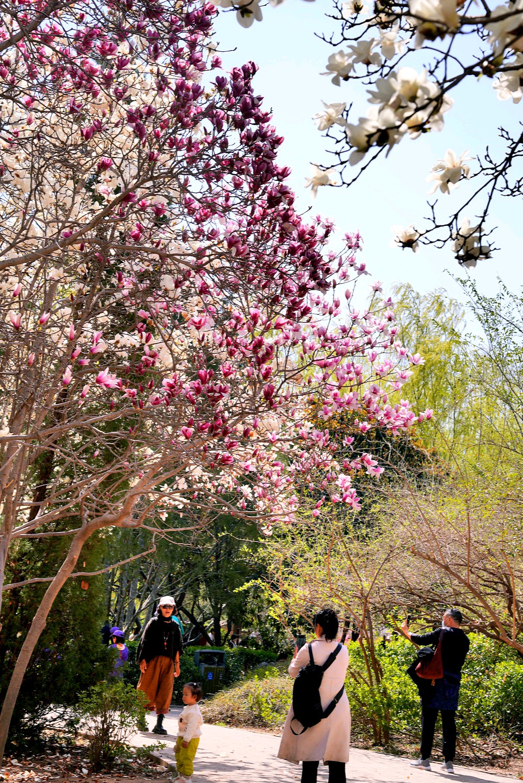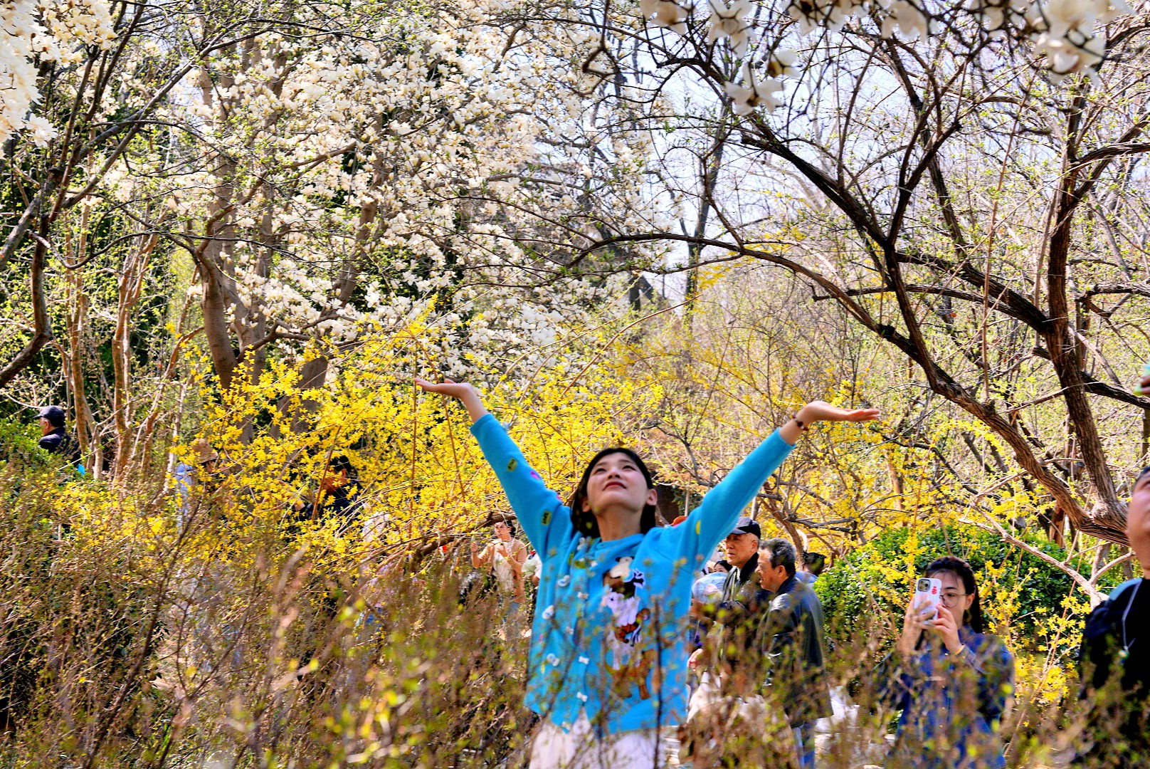 春分过后的济南百花公园,百花盛开,竞相争艳,有玉兰花,樱花,紫叶李,美人梅及连翘等,如美丽的伊甸园,吸引了很多游人前来打卡,一派美好!昨日随拍。