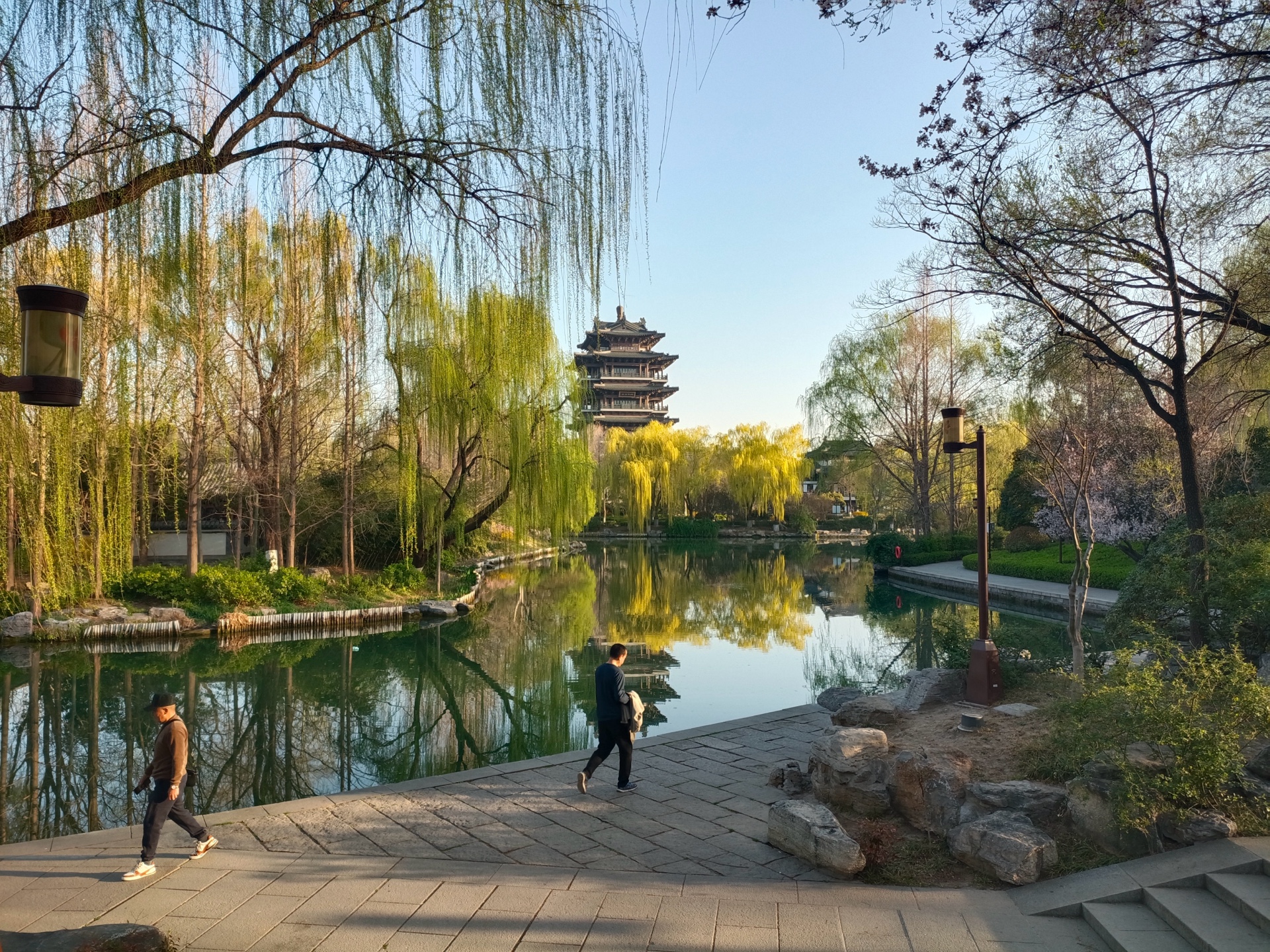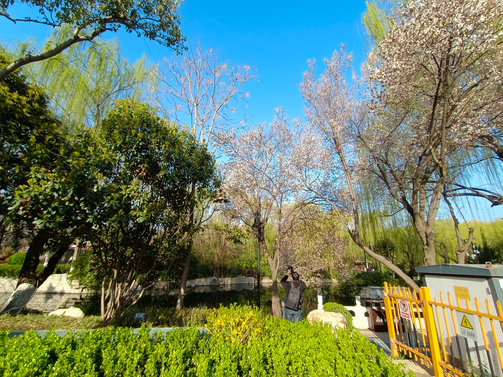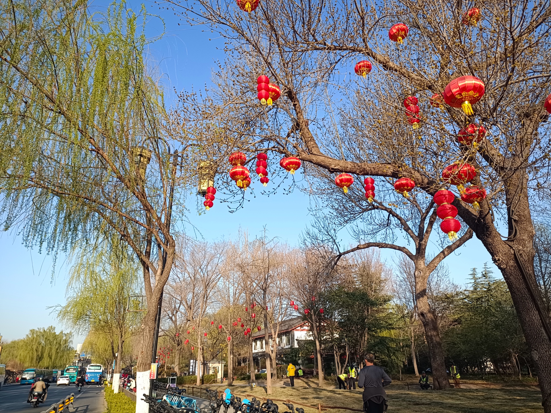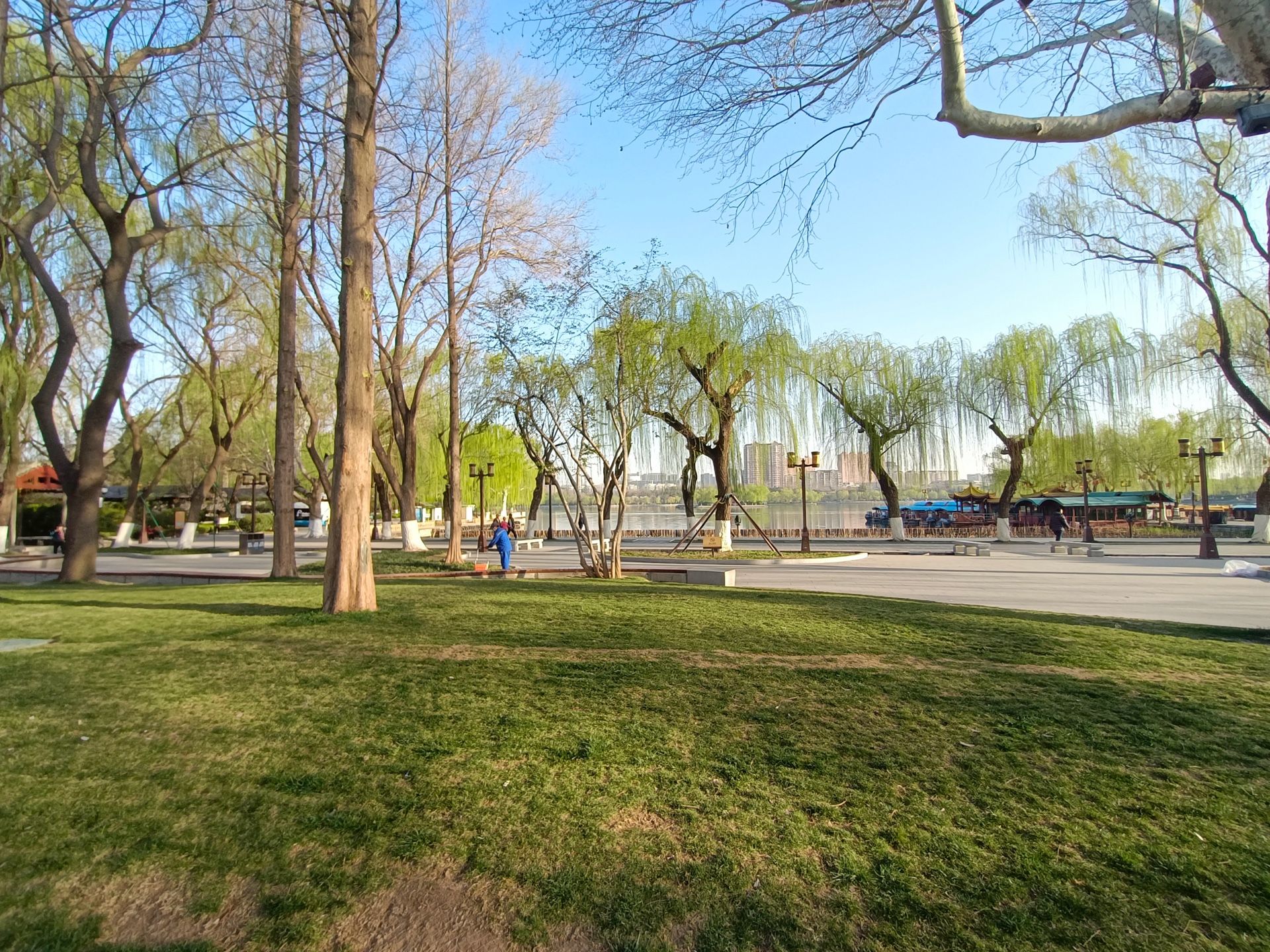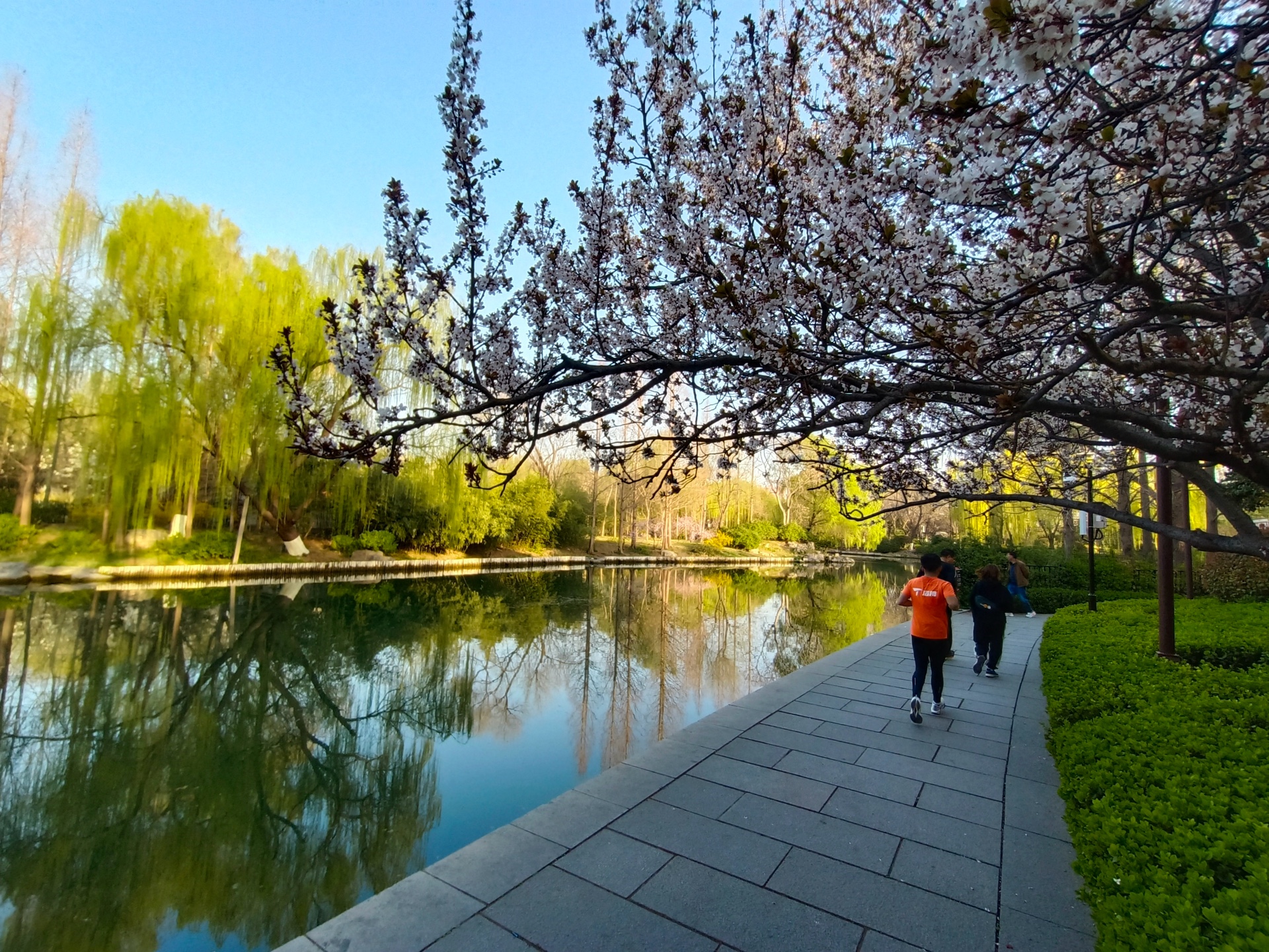 #我的春日赏花攻略#如果到济南旅游,三月和十月最该去的道路就是明湖路。三月下旬的明湖路万物复苏、百花盛开,蓝天下,黄色的连翘、嫩绿的柳枝、白色的杏花、红色的梅花在湖水的映衬下构成一幅优美的画面,真是人间仙境、美不胜收。拍摄于今早八点