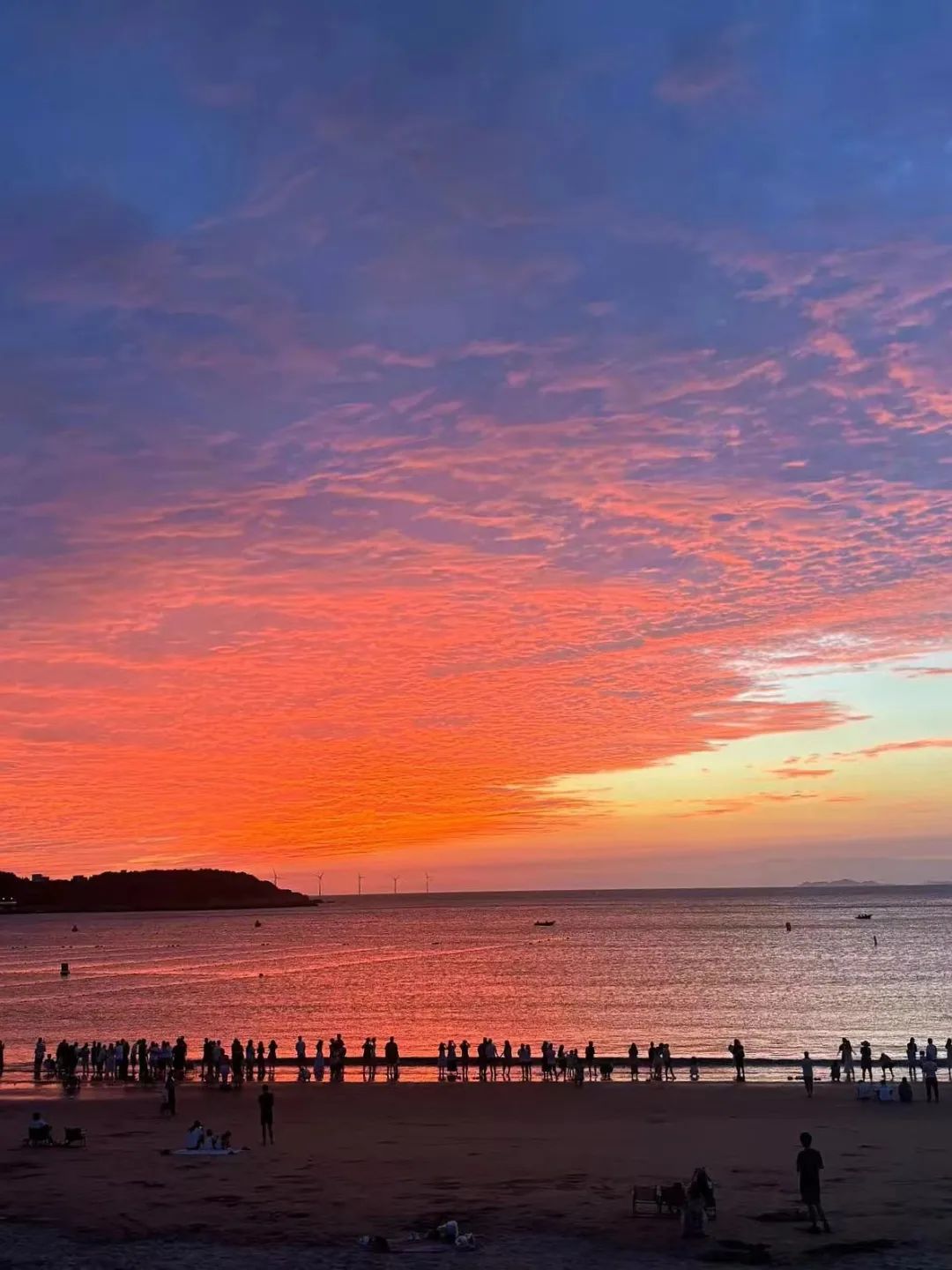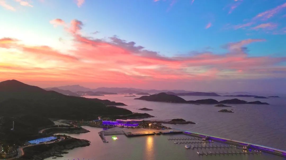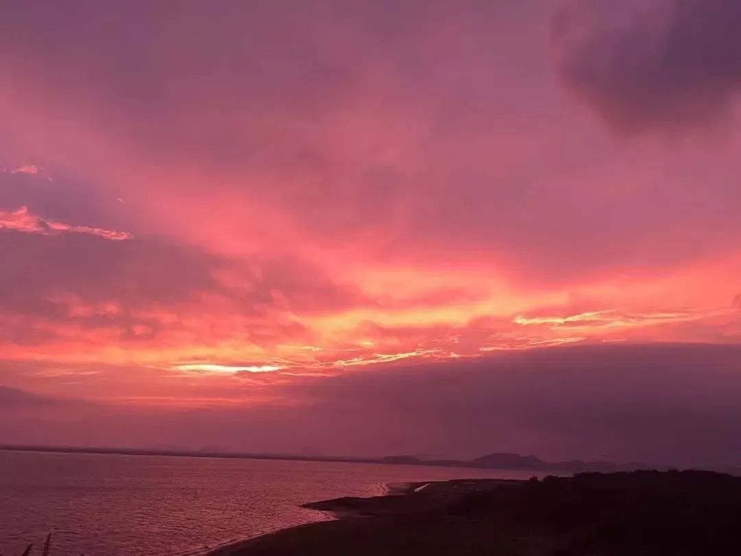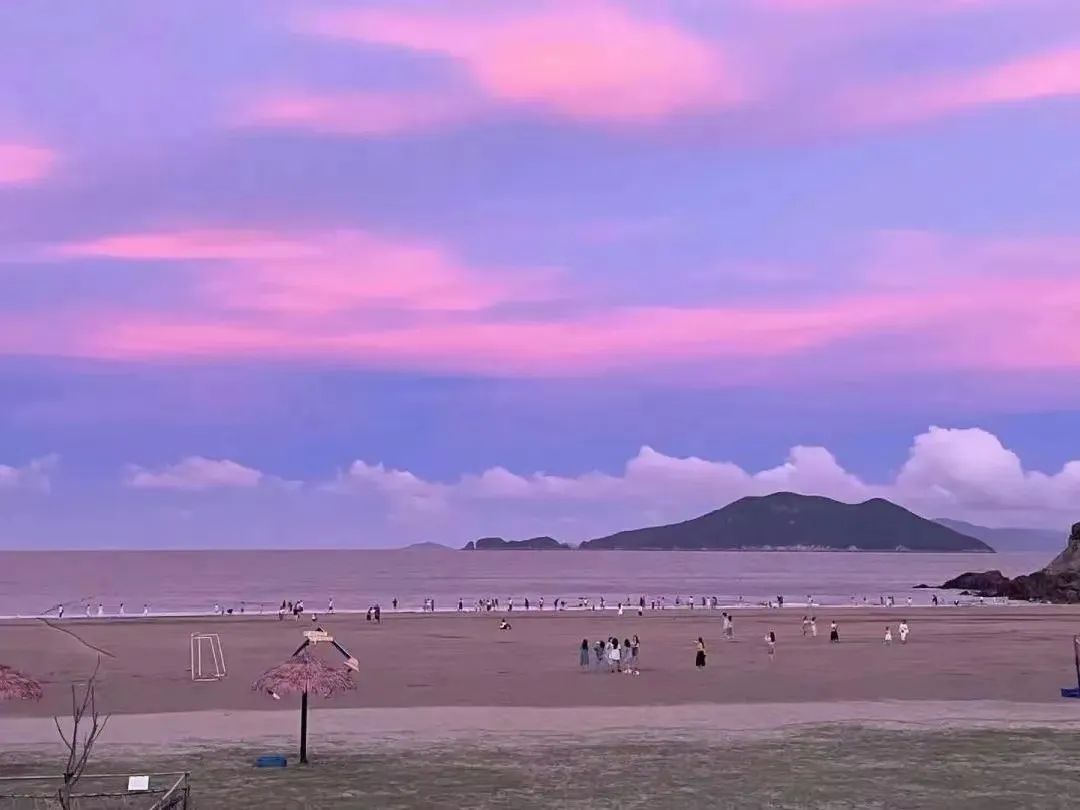 海面晕染成蓝的、橘的、紫的……