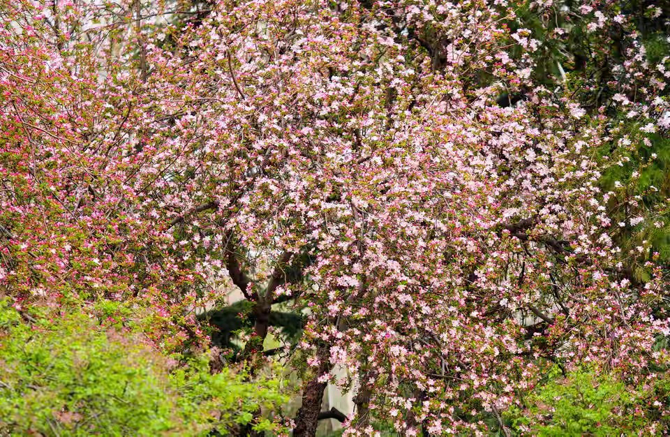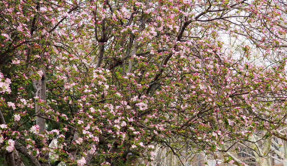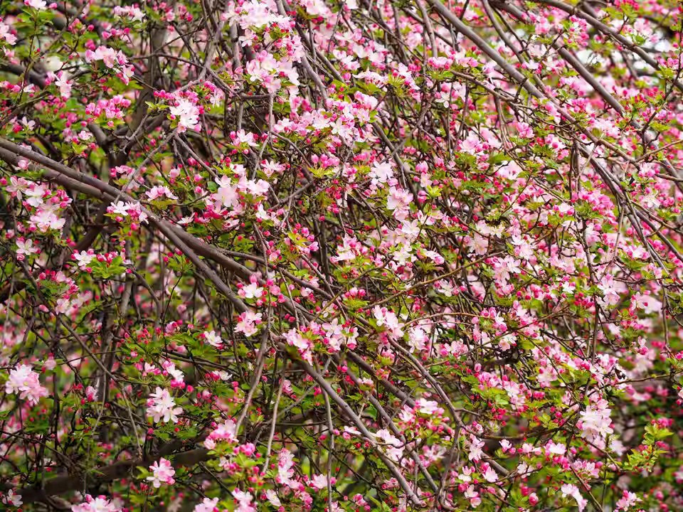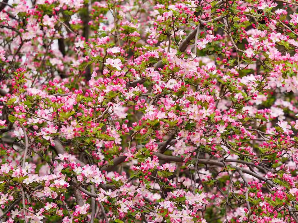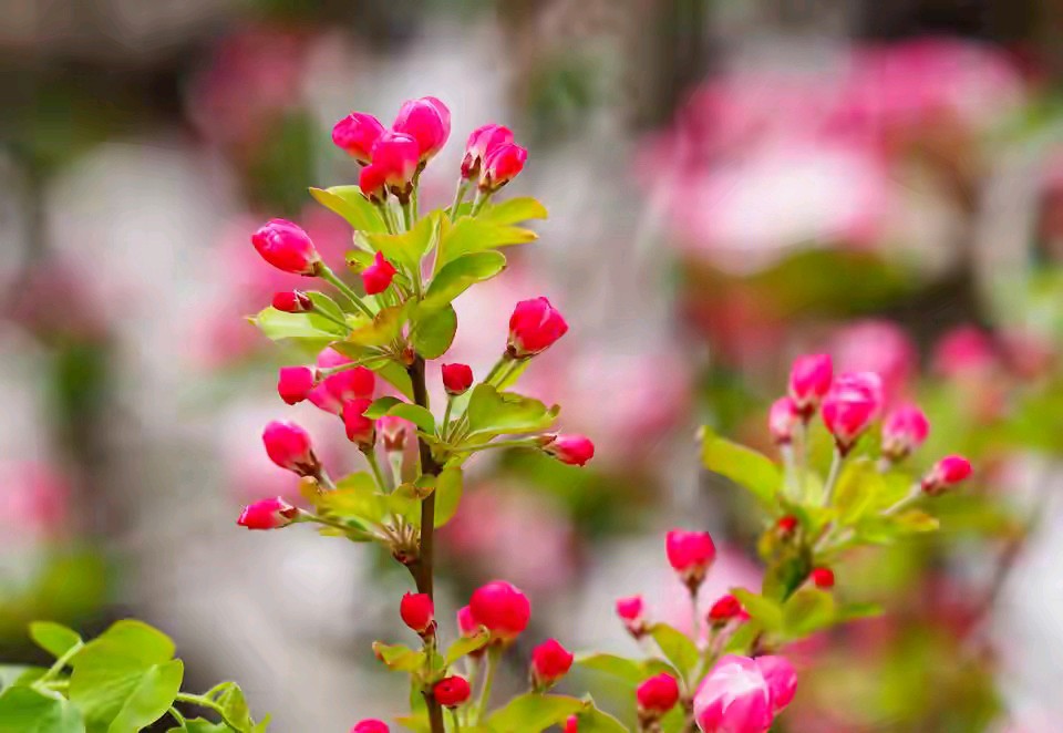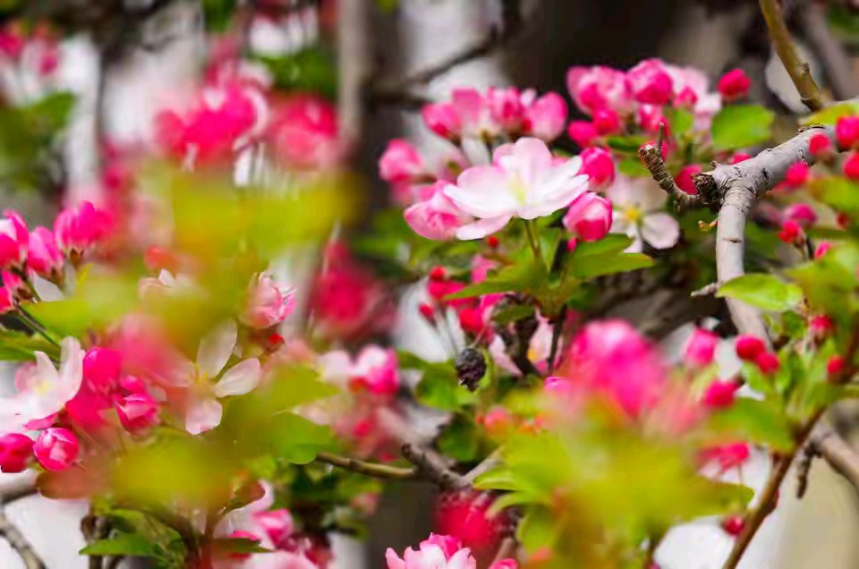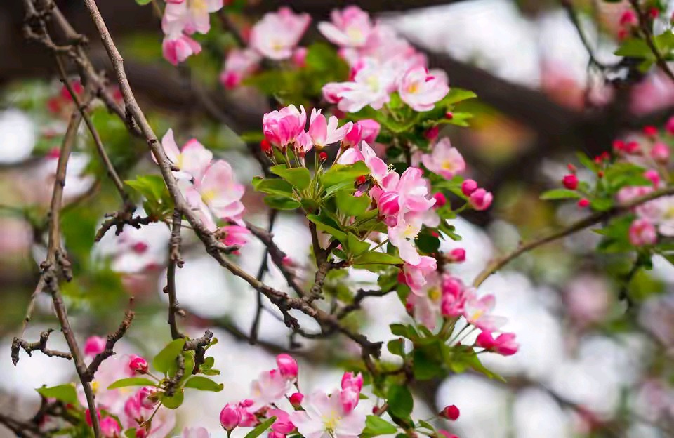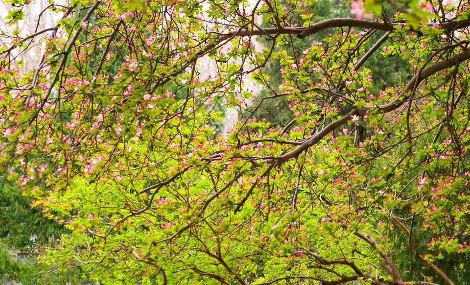 济南春天景色千万朵红色粉色的花朵优雅又热烈盛开景色优美真漂亮。