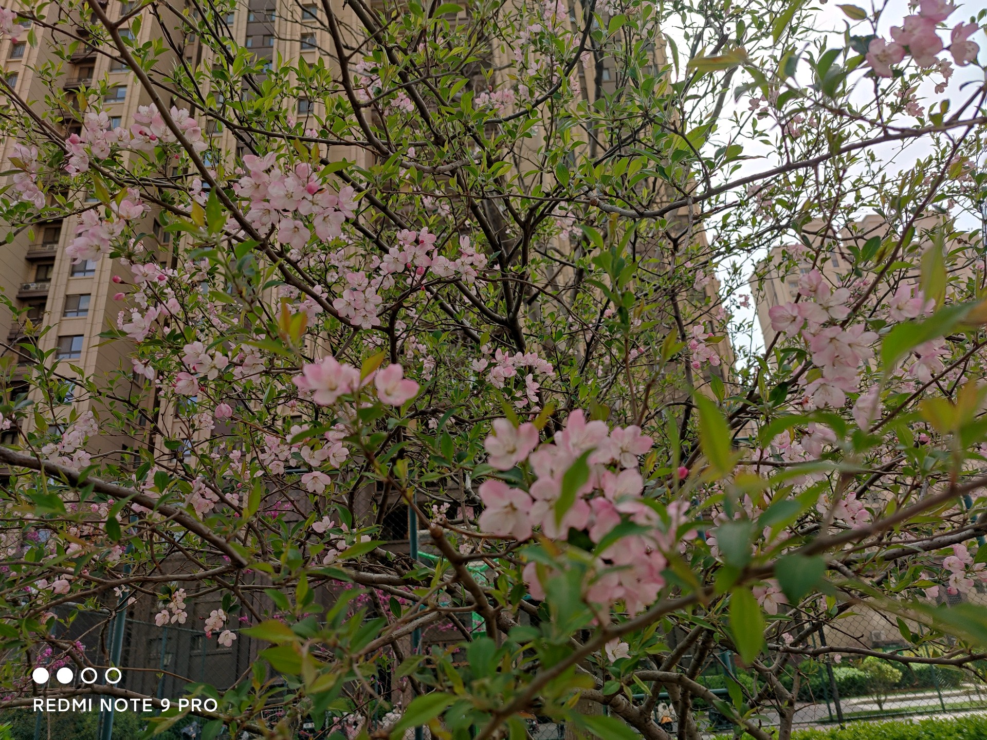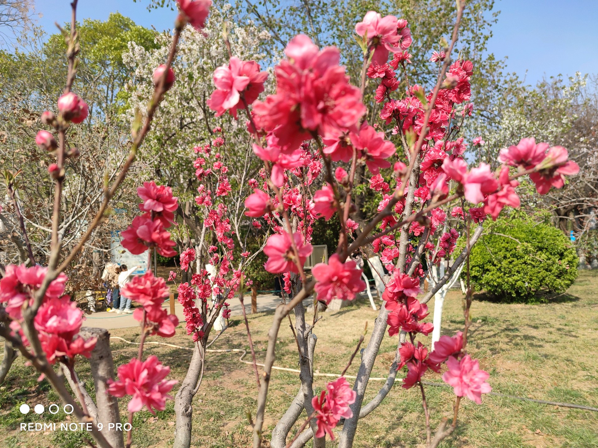漫步在泉城公园,赴一场春日之约,春花依旧,笑春风,此时,园内的花进入盛花期,粉红的花朵摇曳枝头,几片嫩绿的叶子点缀在花丛。“夭桃灼灼,杨柳依依”,红艳艳的花与柳绿相映成趣,充满诗情画意。