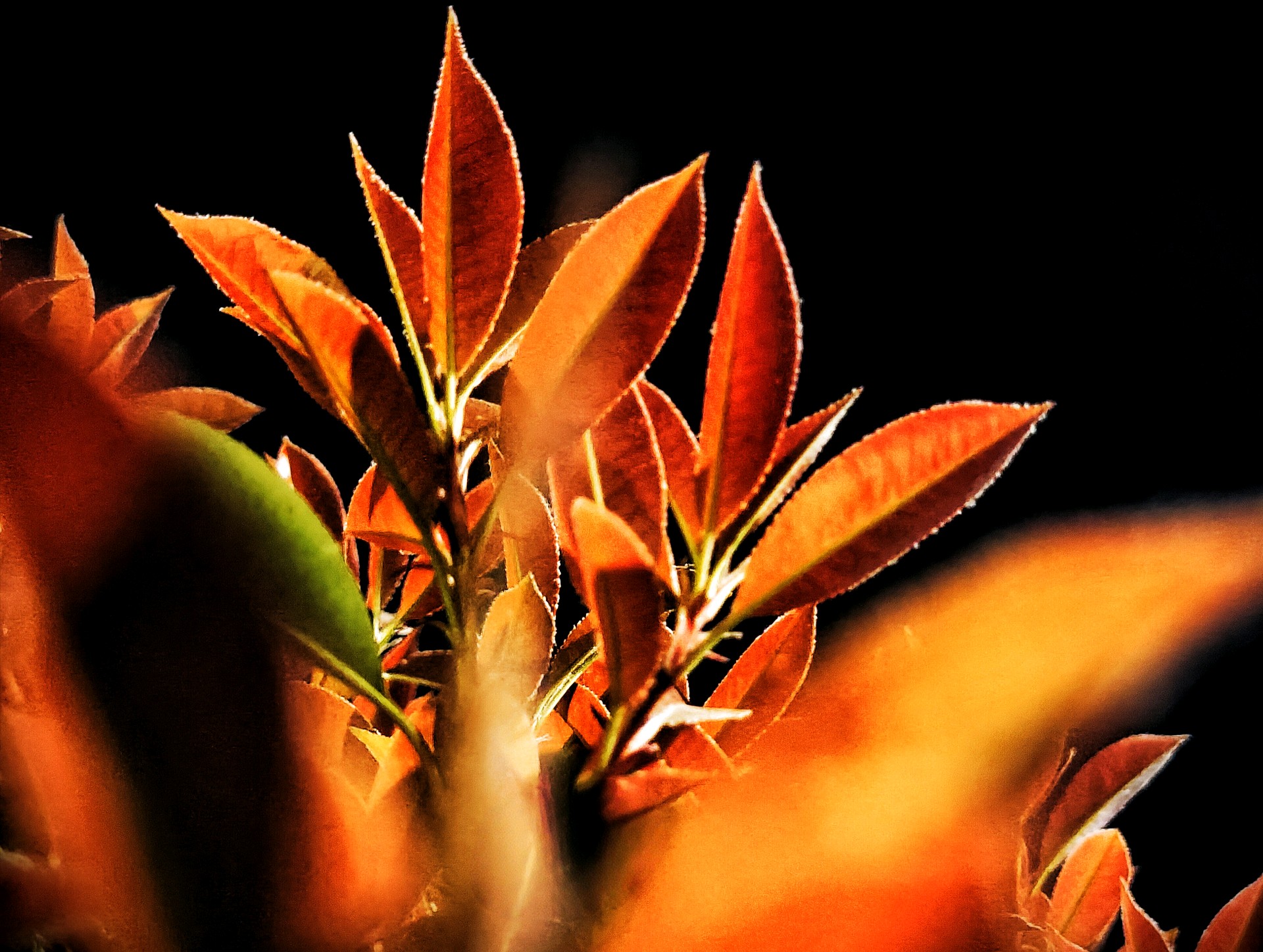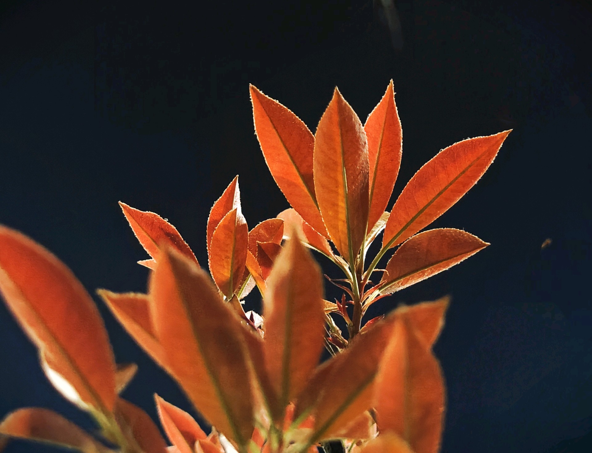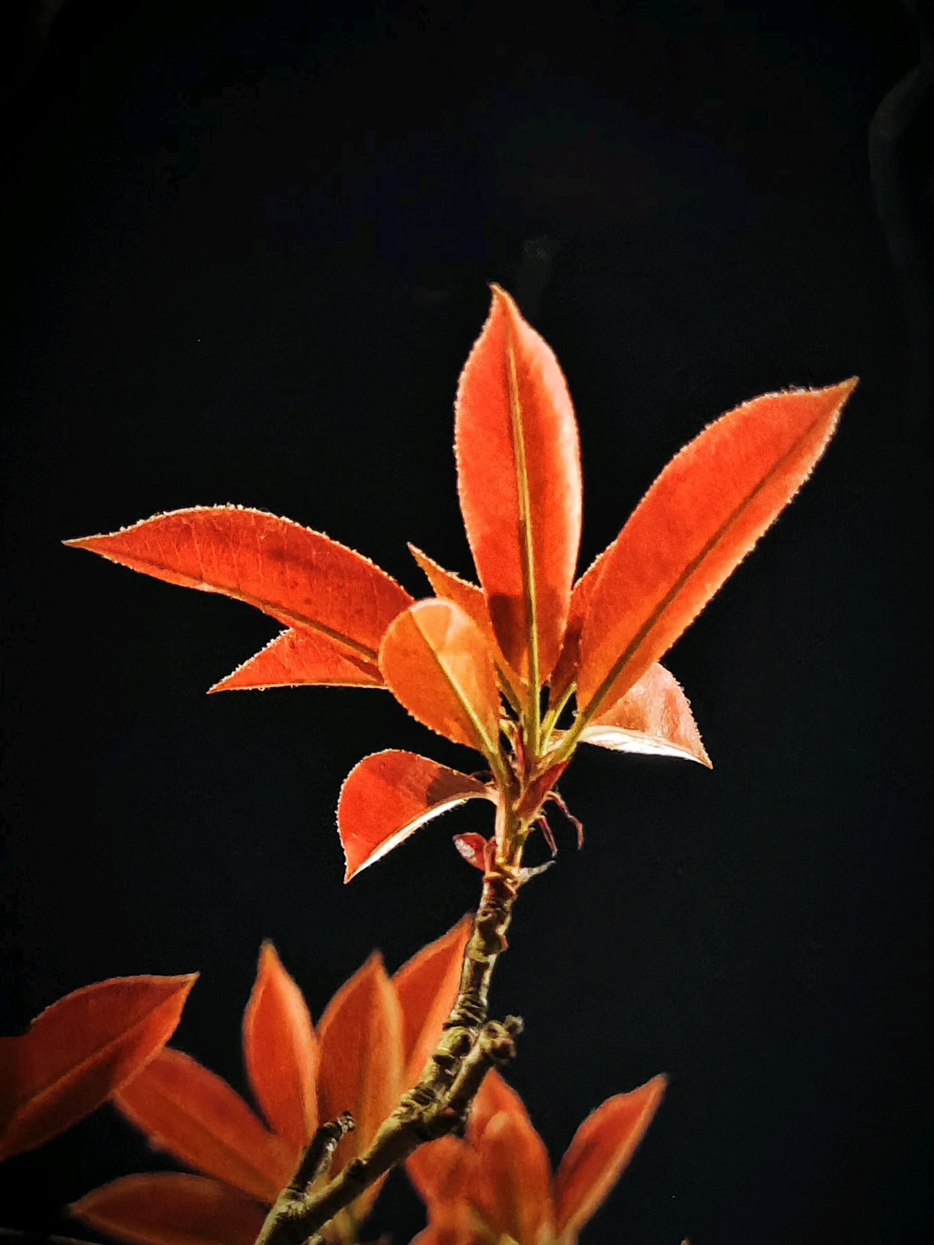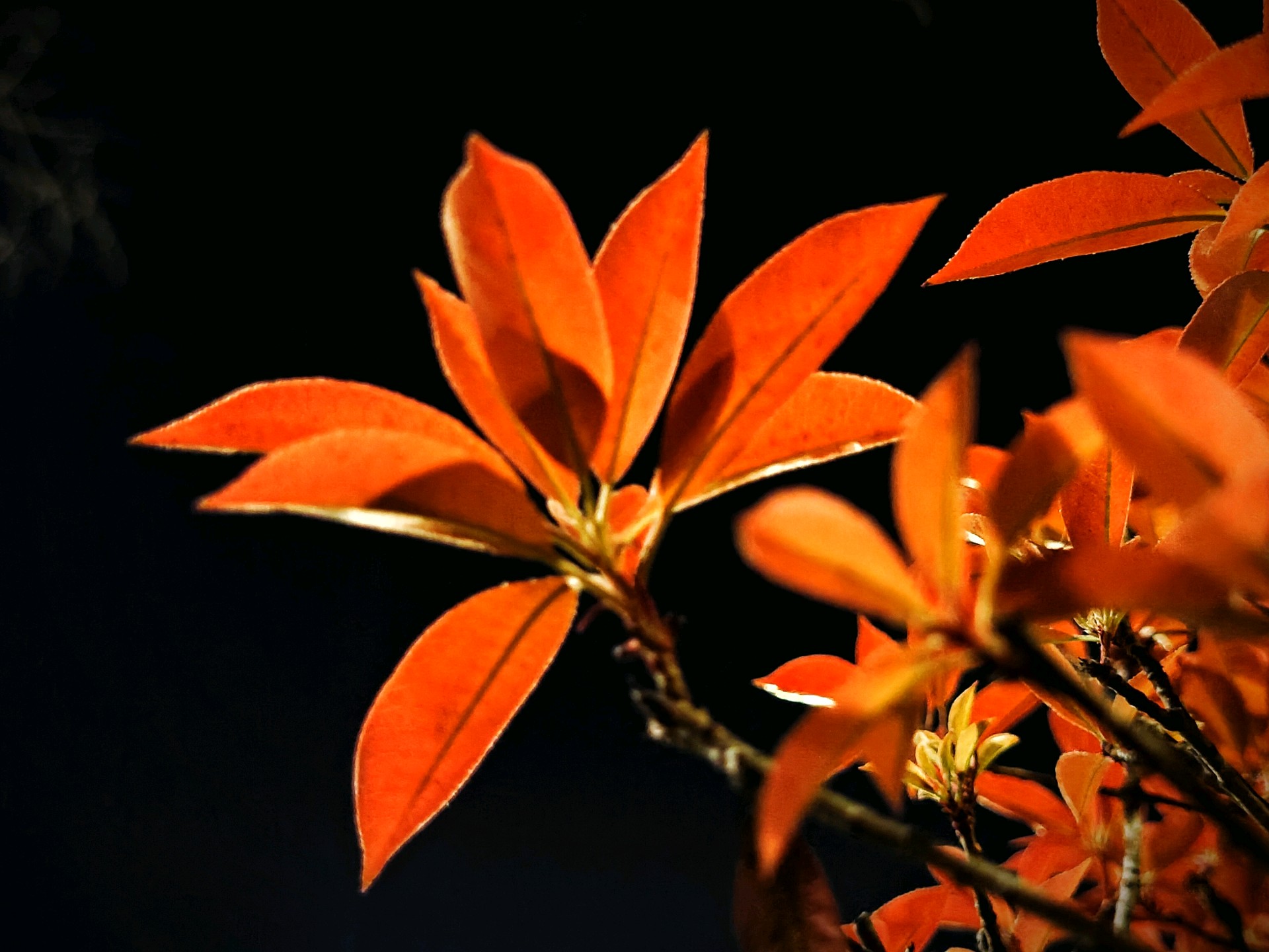 瞧,新长出的嫩叶颜色极为火红,宛如燃烧着的火焰,不但鲜艳夺目、充满生机,还增添了一道道亮丽的景色。