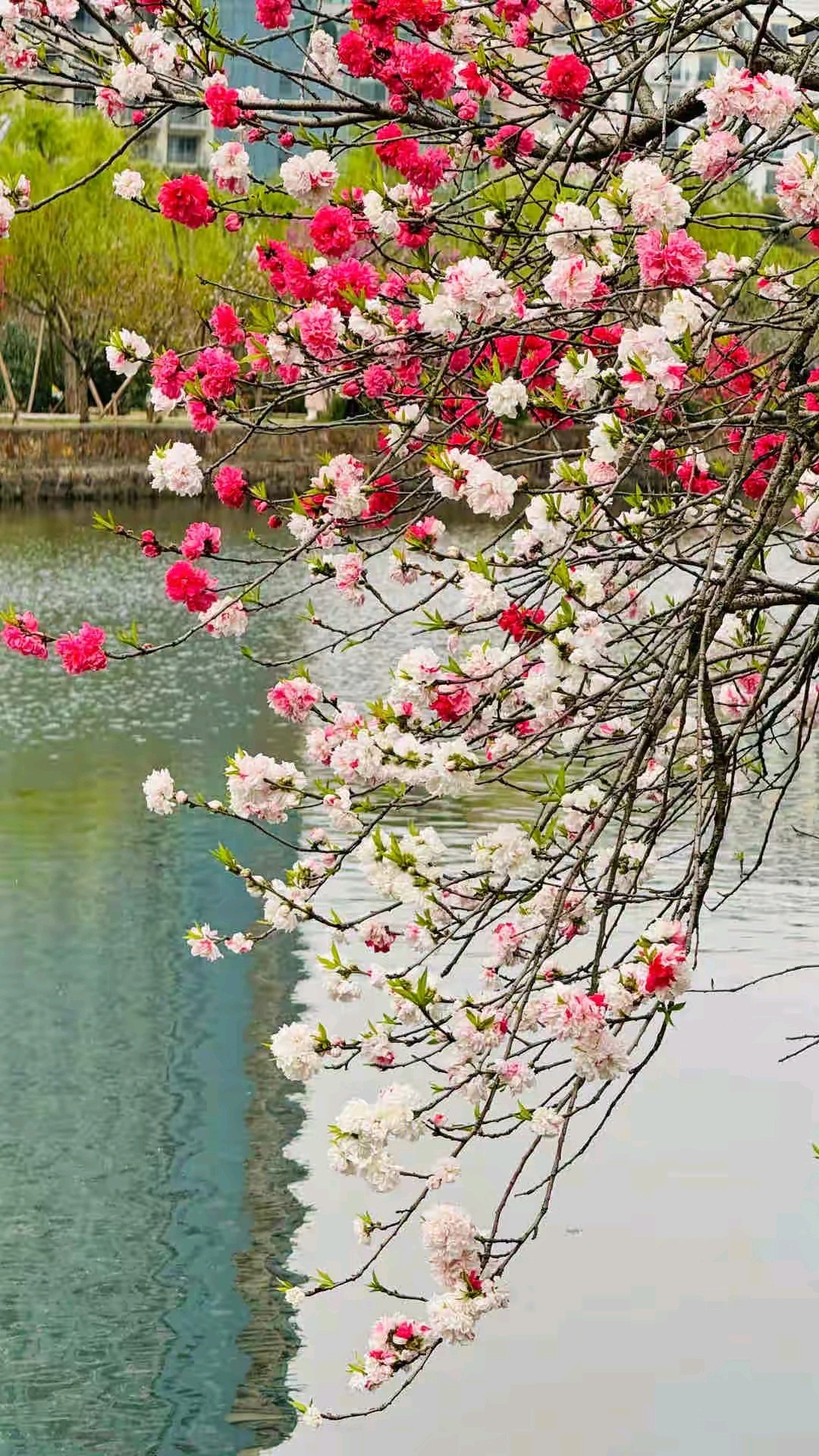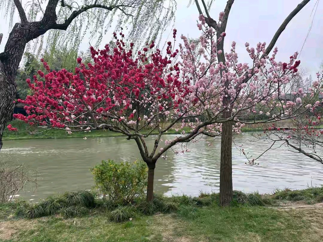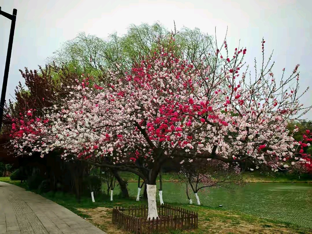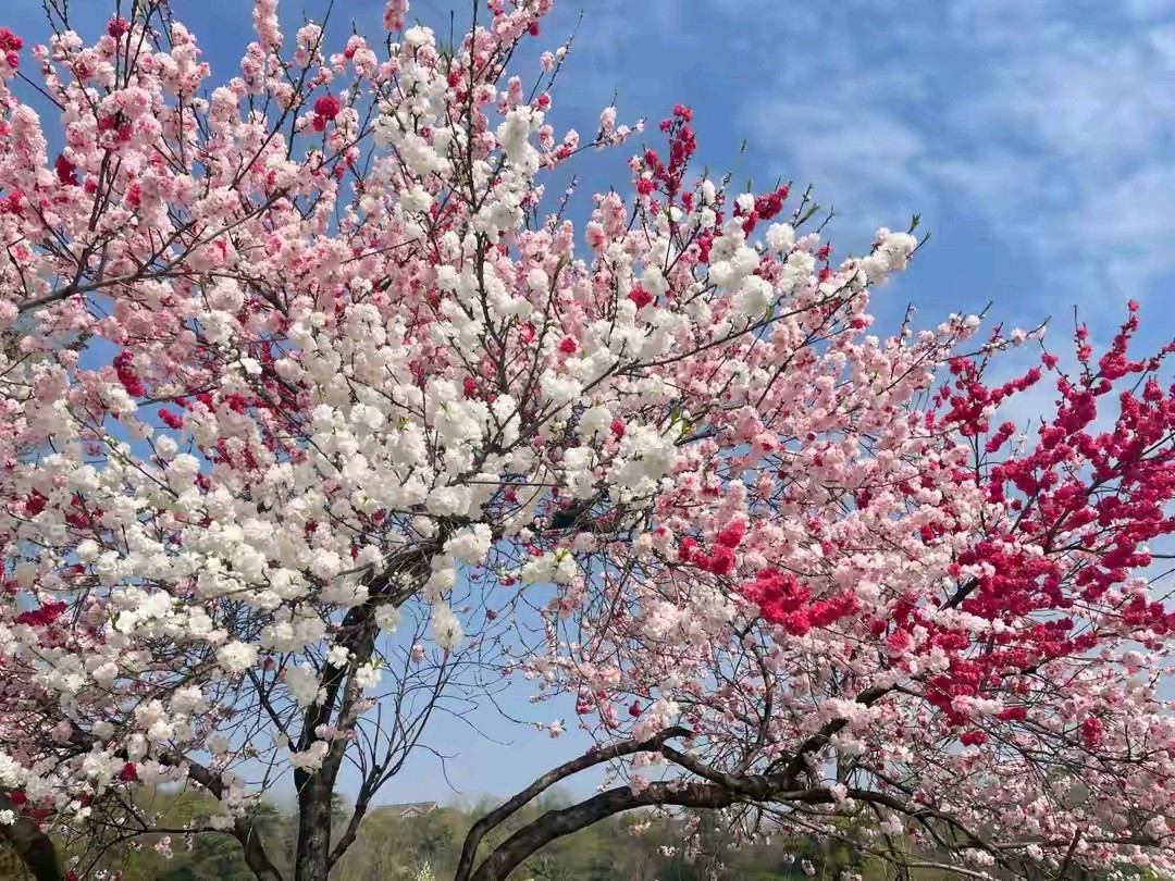桃树开花了,五颜六色的真漂亮。
