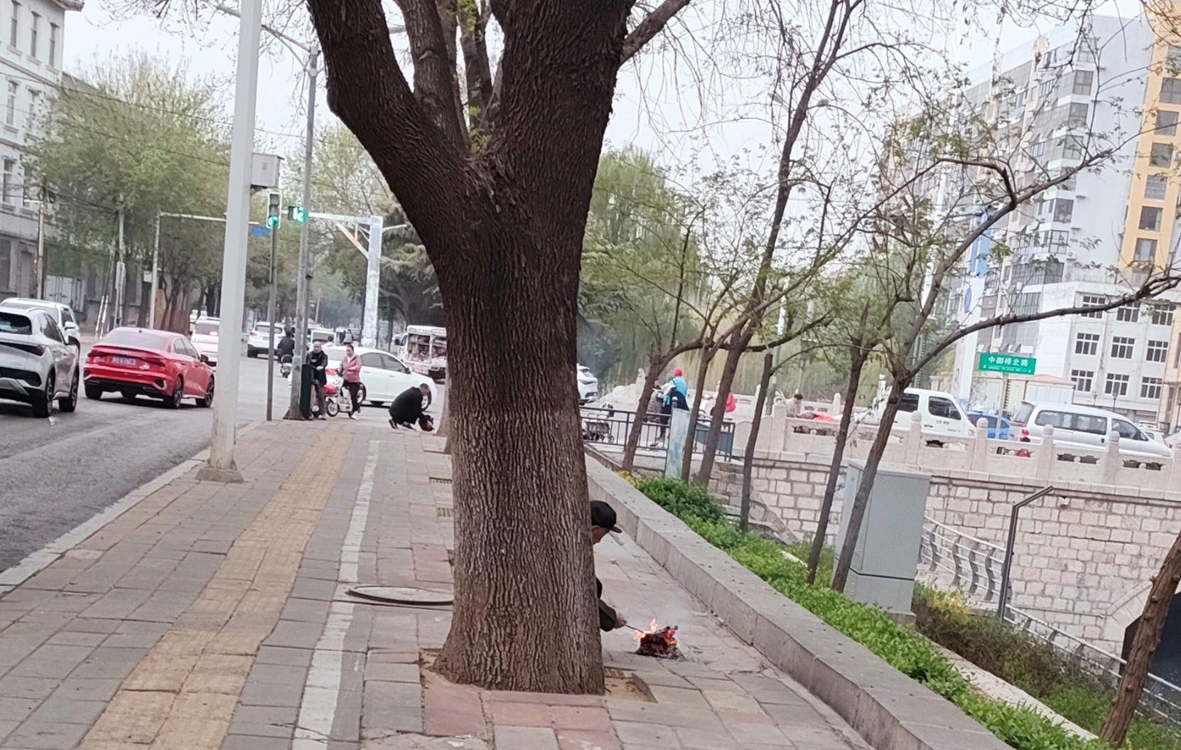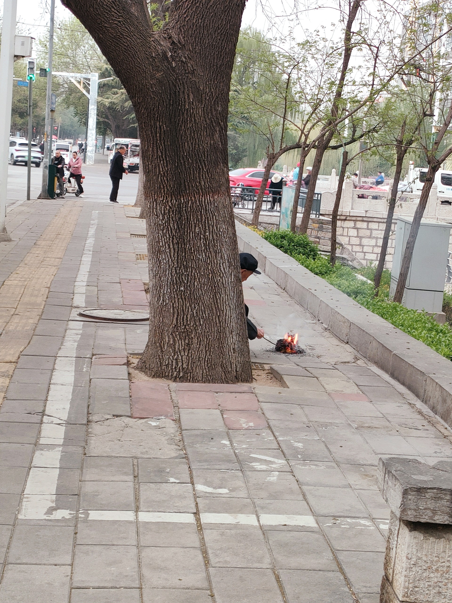 清明节,不方便上坟的人,在路边烧纸祭奠