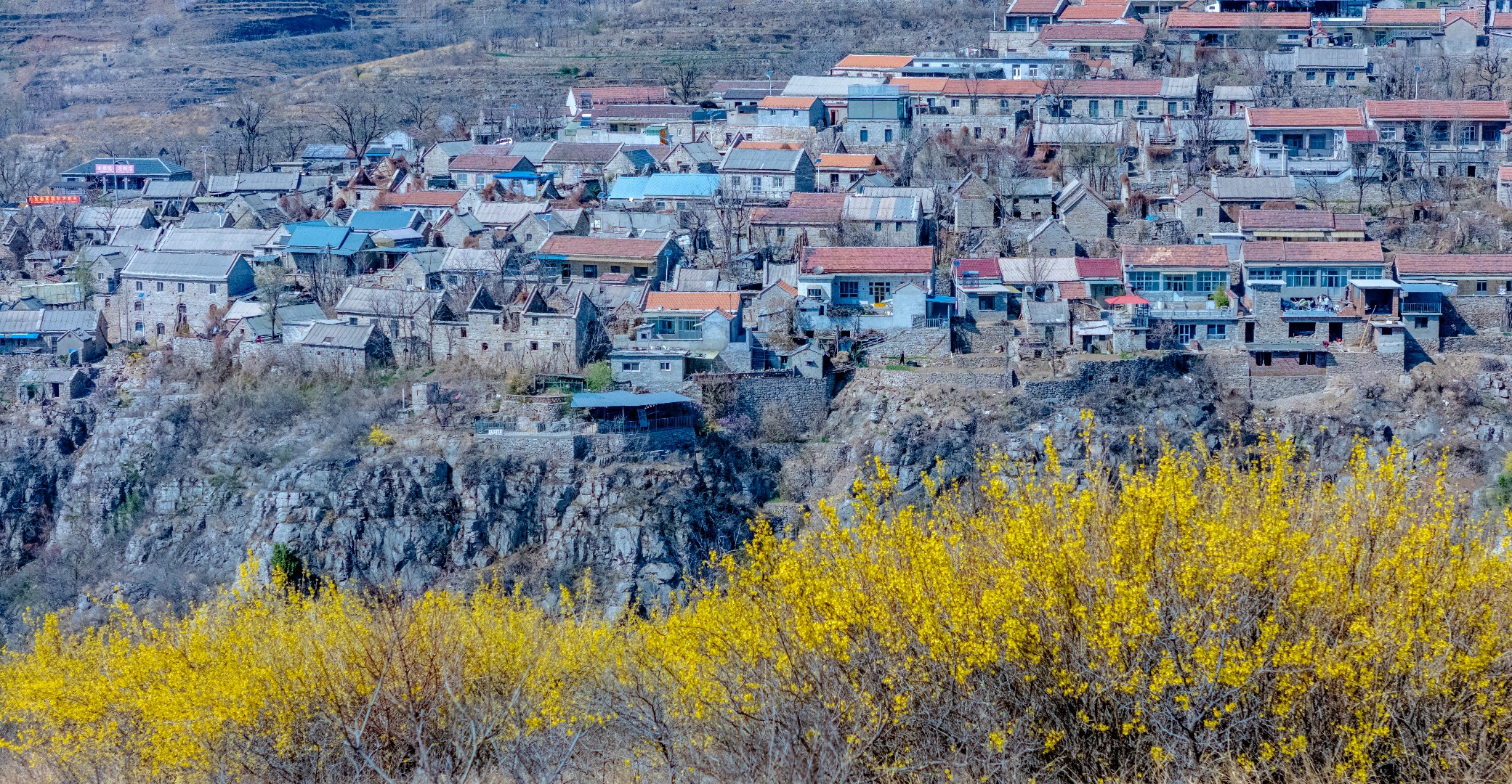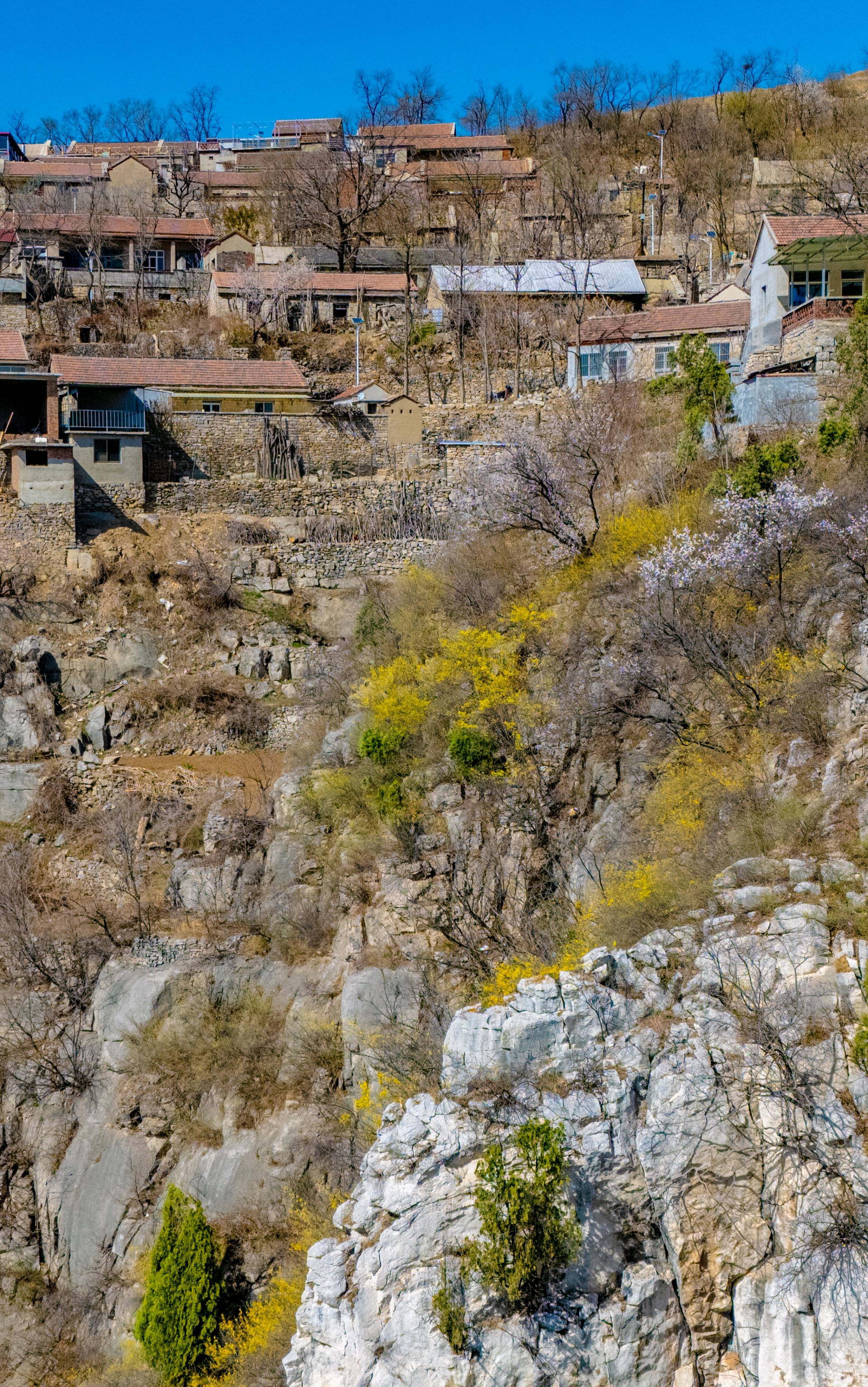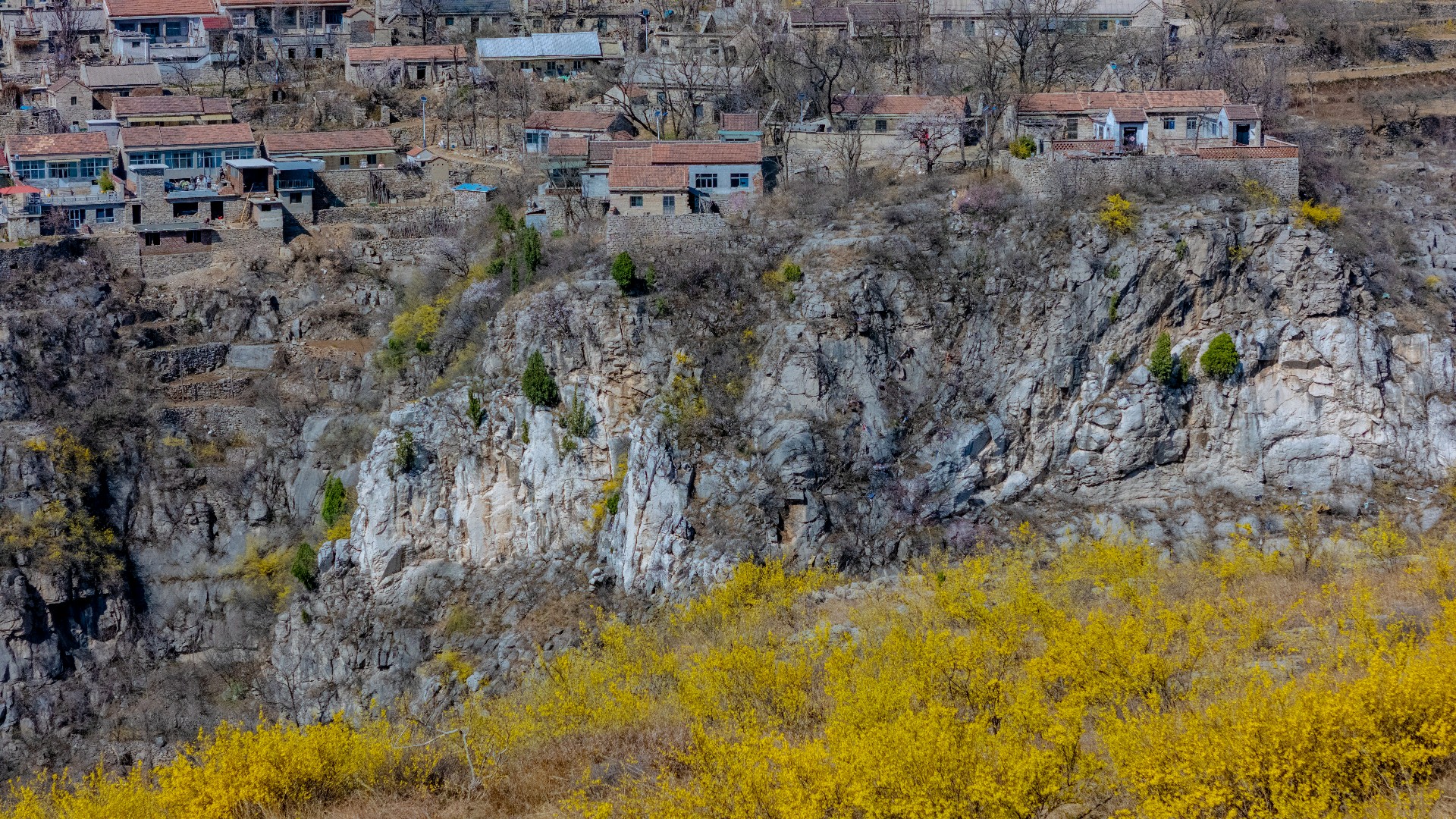 悬崖之上逯家岭村是莱芜海拔最高的古村落。当别处早已沉浸在春暖花开的热烈氛围中,逯家岭依旧残留着几分冬日的冷峻模样。但生机已在悄然间蔓延,古村对面的山坡,金黄的连翘肆意绽放,漫山遍野,宛如一片金色的海洋。古村内,杏花正开得热闹,满树繁花如雪,桃花也不甘示弱,花苞鼓鼓含苞欲放。随着春日的脚步渐渐加快,古村很快会被蓬勃的春意唤醒,焕发出别样的光彩。