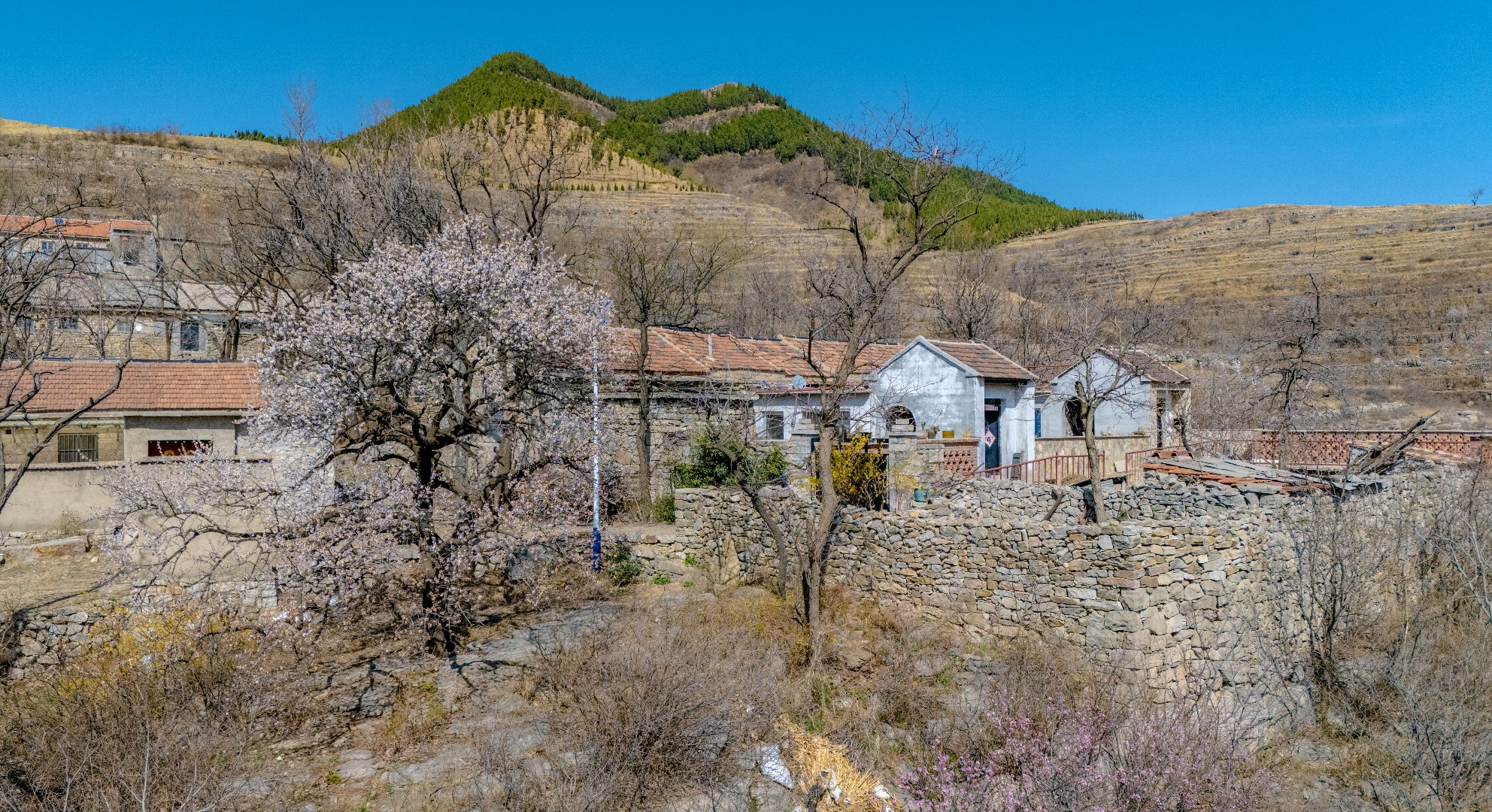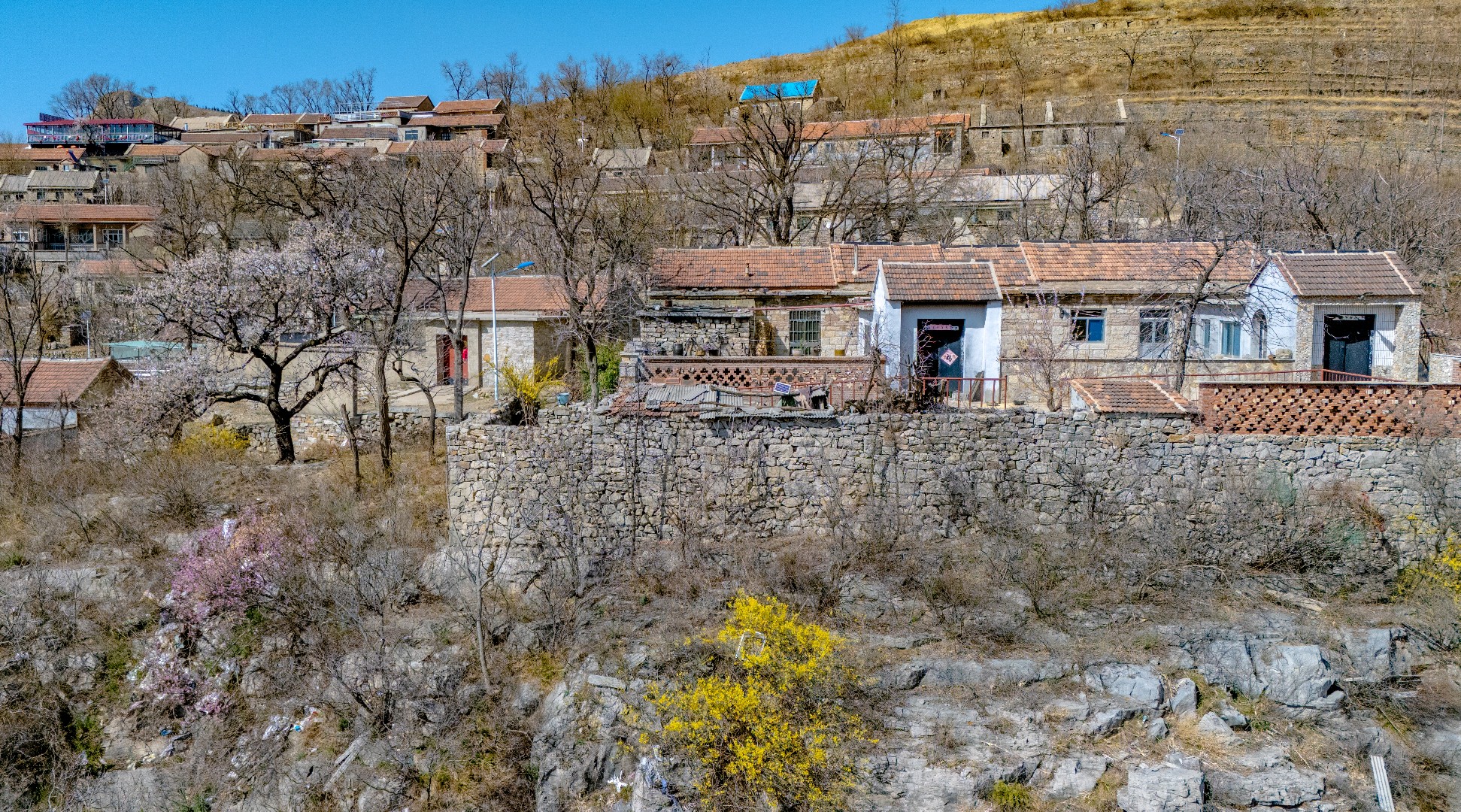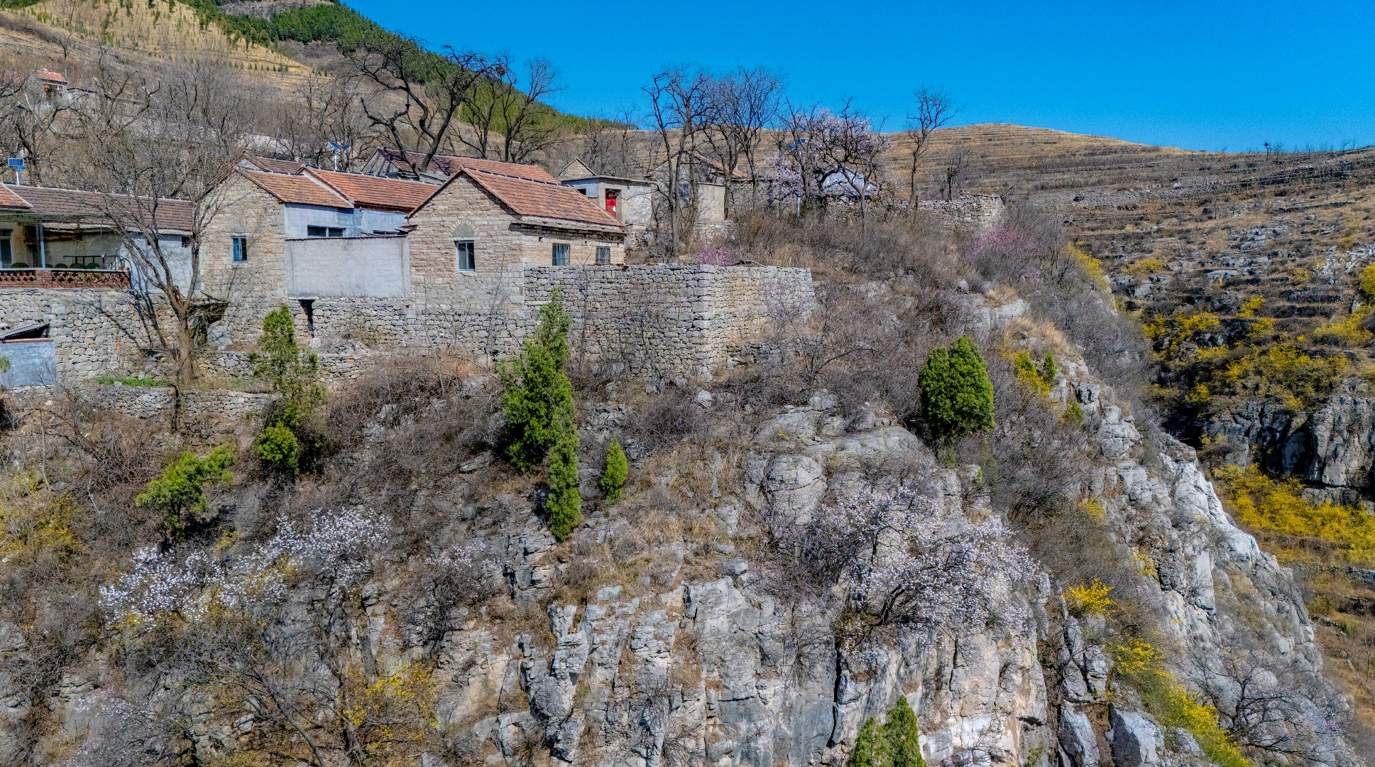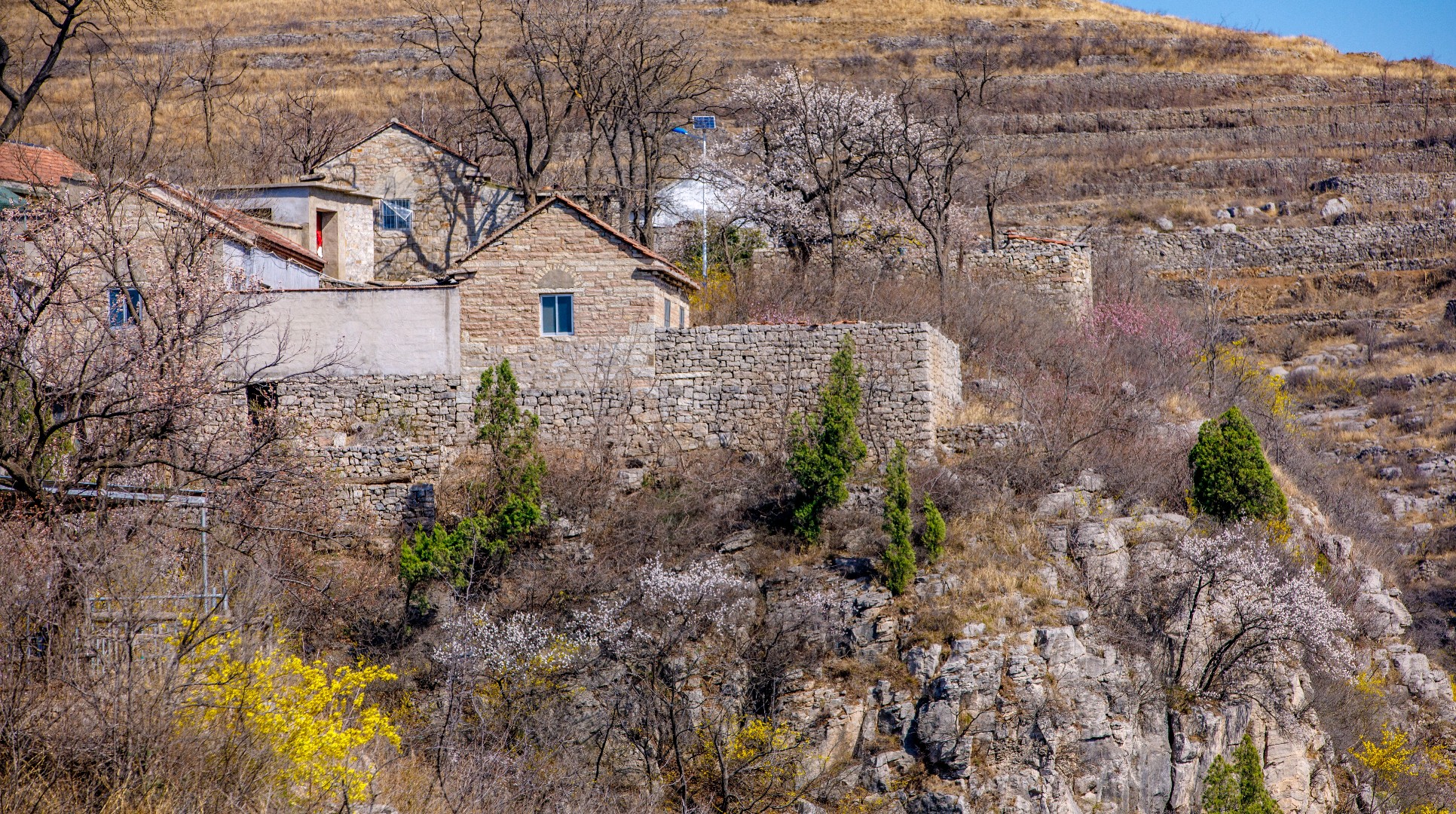 悬崖之上逯家岭村是莱芜海拔最高的古村落。当别处早已沉浸在春暖花开的热烈氛围中,逯家岭依旧残留着几分冬日的冷峻模样。但生机已在悄然间蔓延,古村对面的山坡,金黄的连翘肆意绽放,漫山遍野,宛如一片金色的海洋。古村内,杏花正开得热闹,满树繁花如雪,桃花也不甘示弱,花苞鼓鼓含苞欲放。随着春日的脚步渐渐加快,古村很快会被蓬勃的春意唤醒,焕发出别样的光彩。
