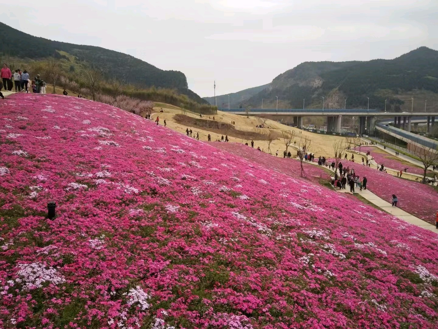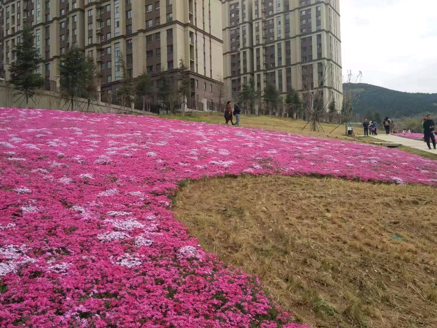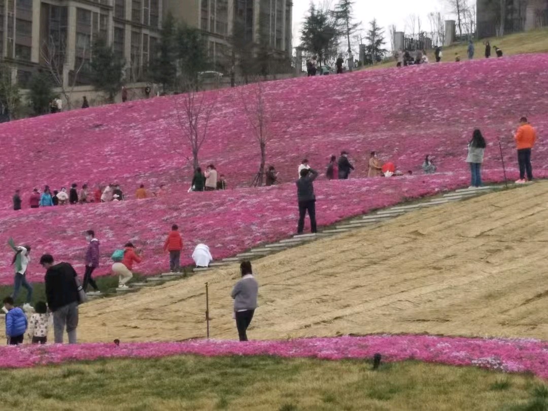 鲍山公园遍地开花,吸引了附近居民前来赏花打卡。