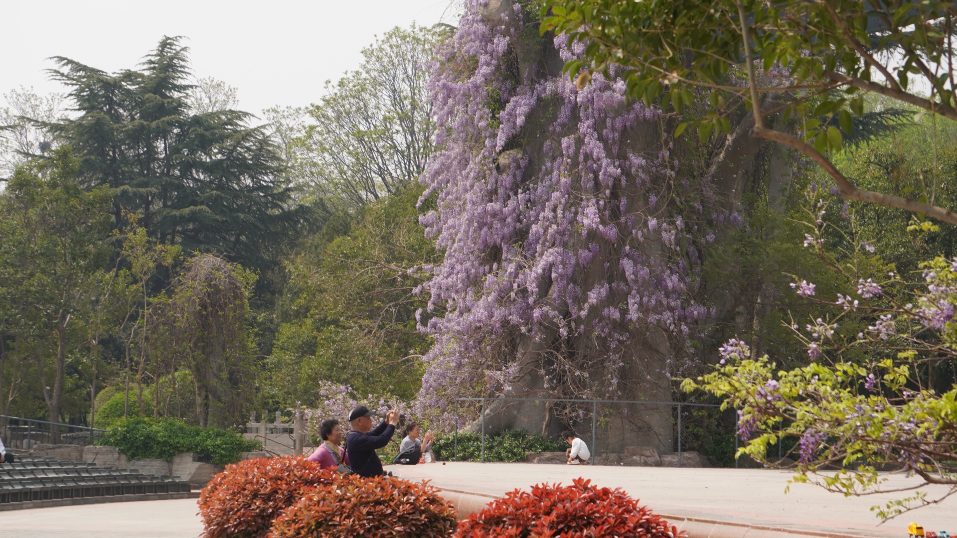 泉城公园紫藤花开如繁星垂挂,如瀑似梦,春风轻拂,花影摇曳生姿,花瓣簌簌,空气中满是浪漫的甜香。