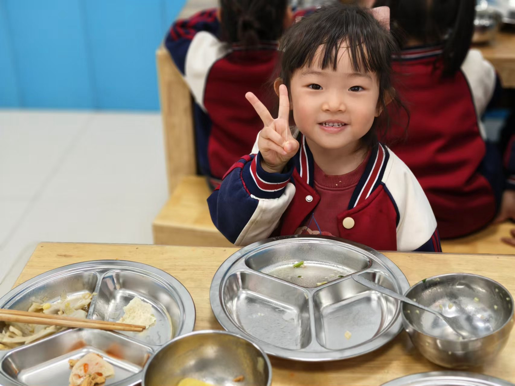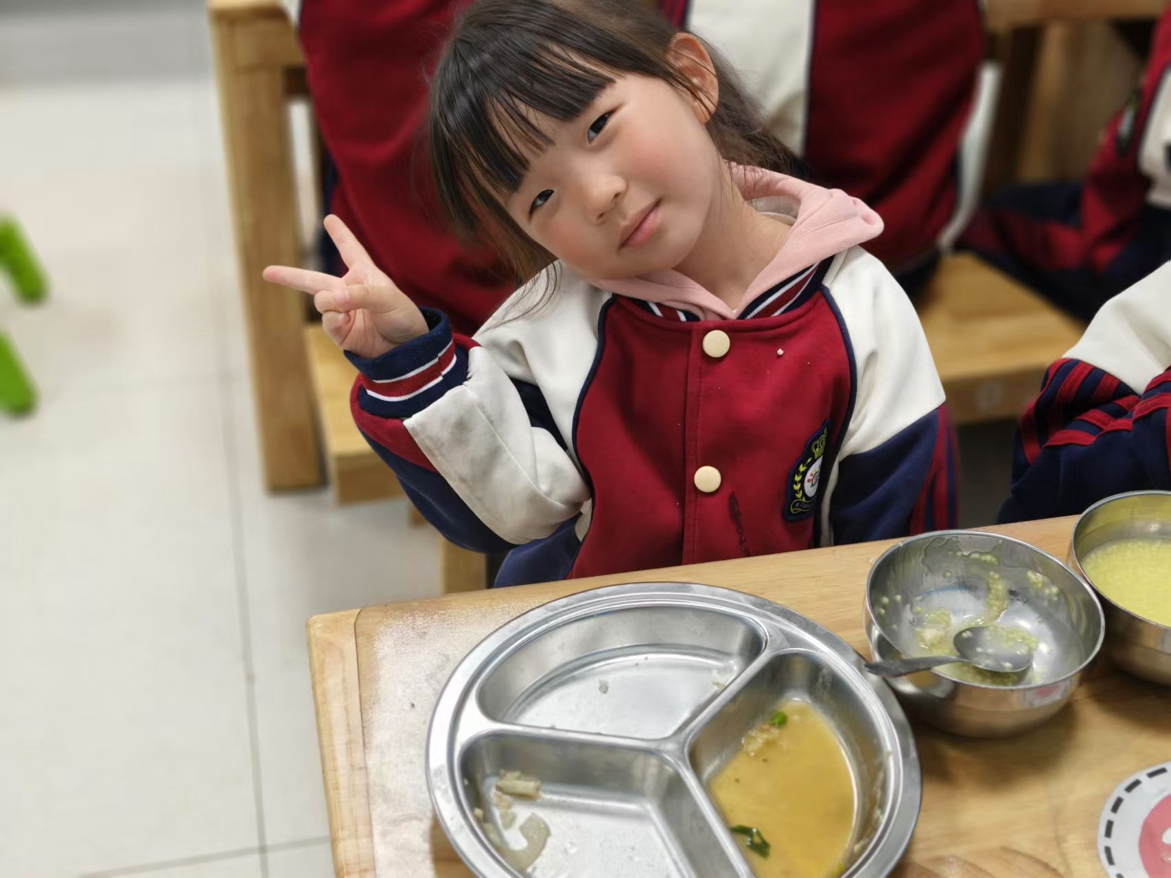 在互动环节,孩子们积极举手抢答,表达对“光盘行动”的理解。午餐时间,小朋友们把餐盘里的饭菜吃得干干净净,举起餐盘分享自己的“光盘”成果。