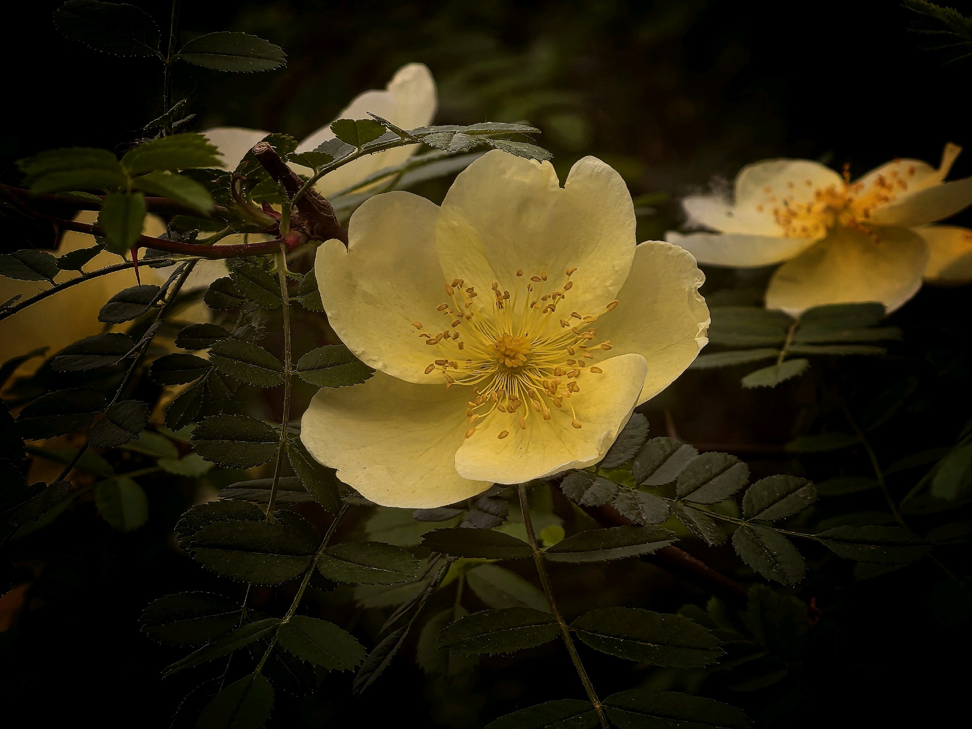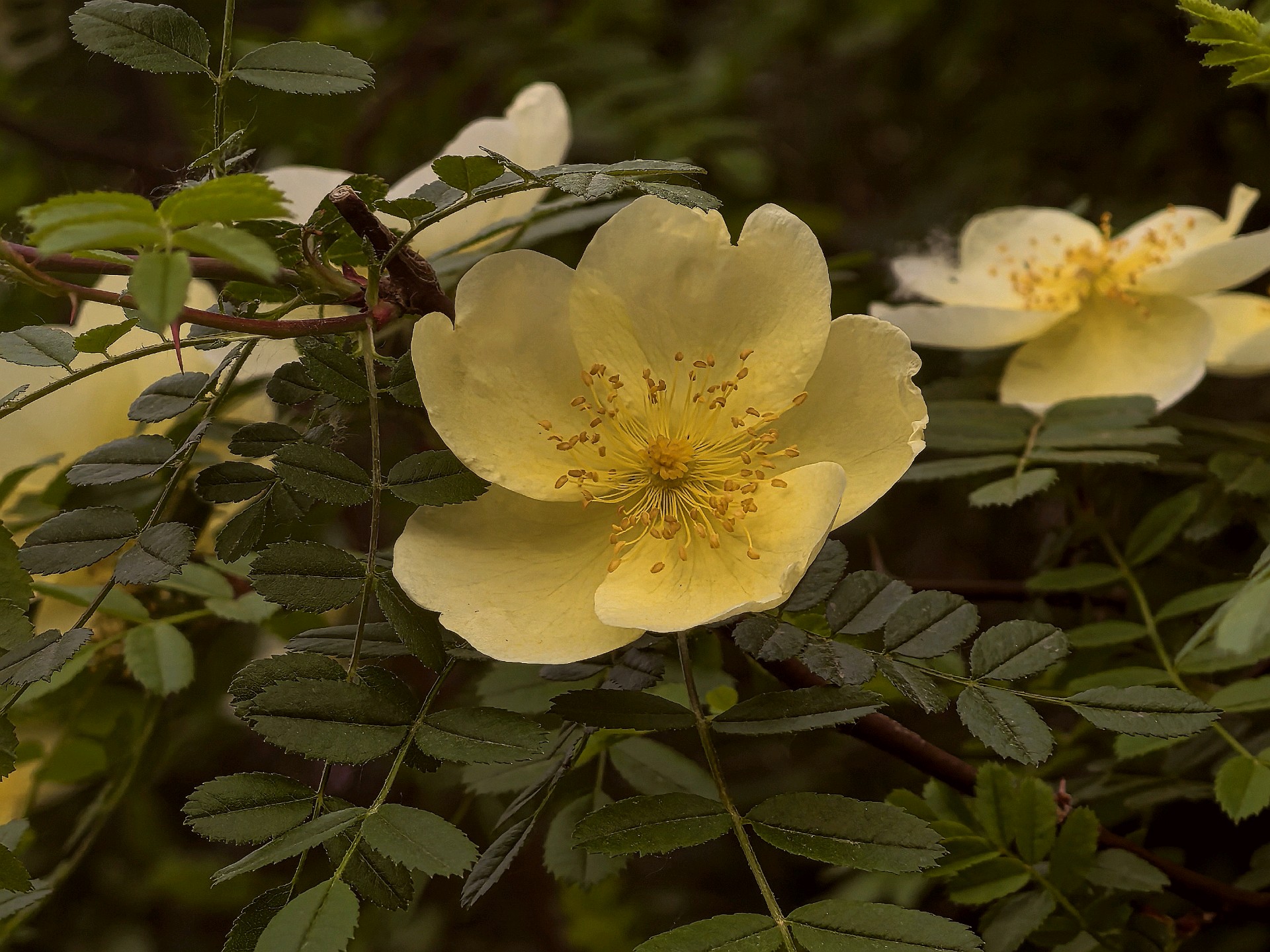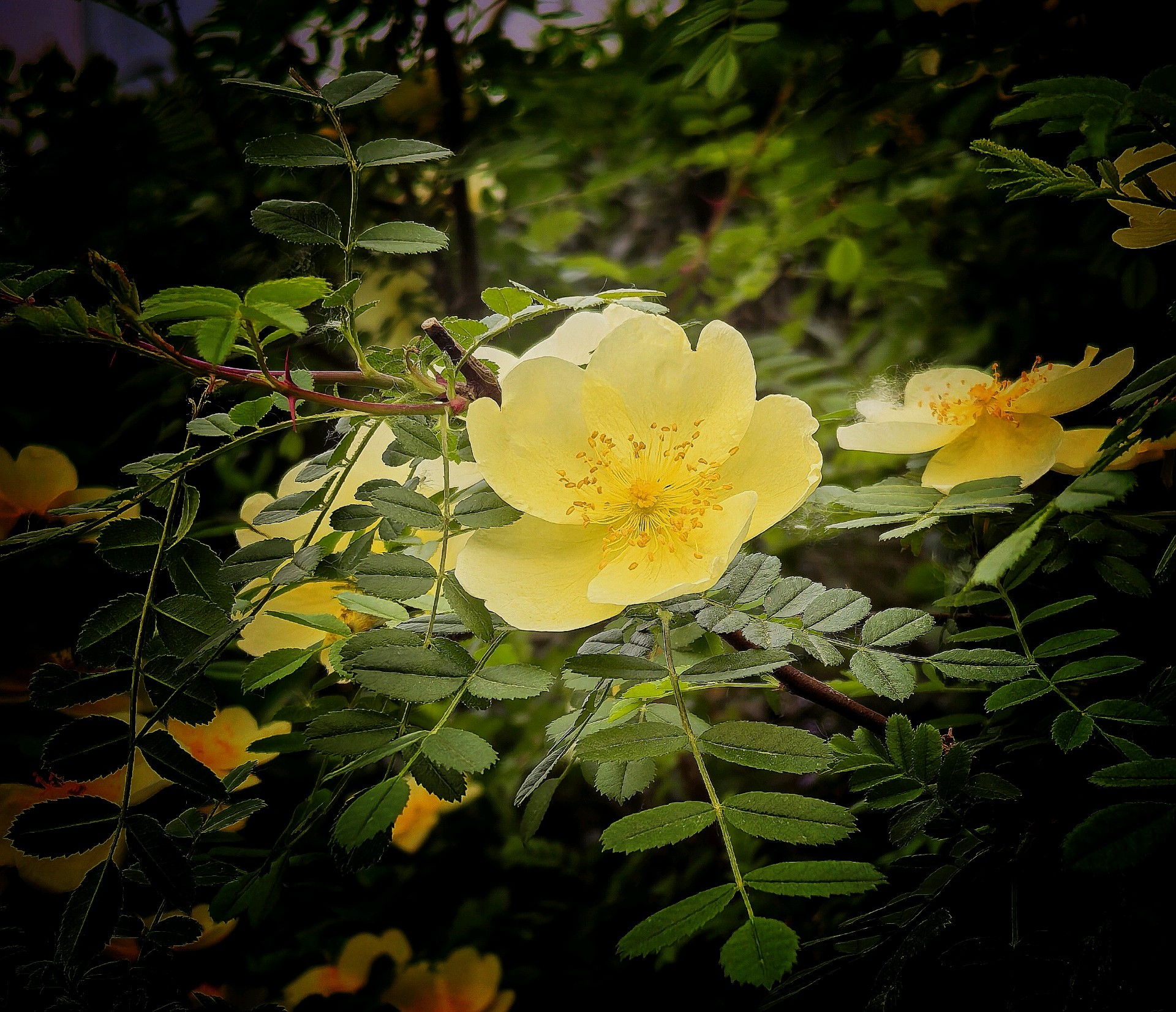 五龙潭公园的单瓣黄刺玫开花了。淡化色的花朵格外艳丽游客们纷纷拍照留念。