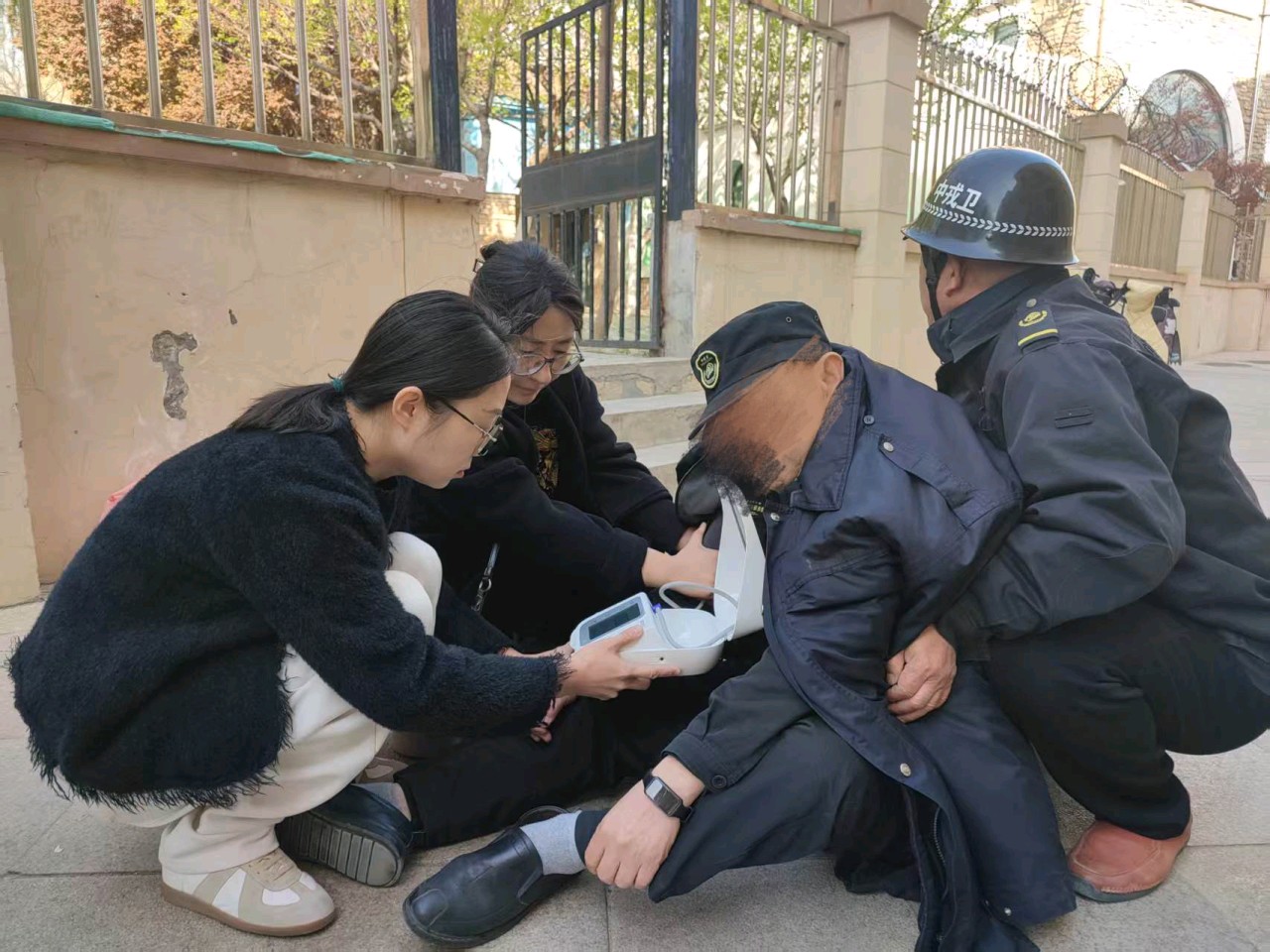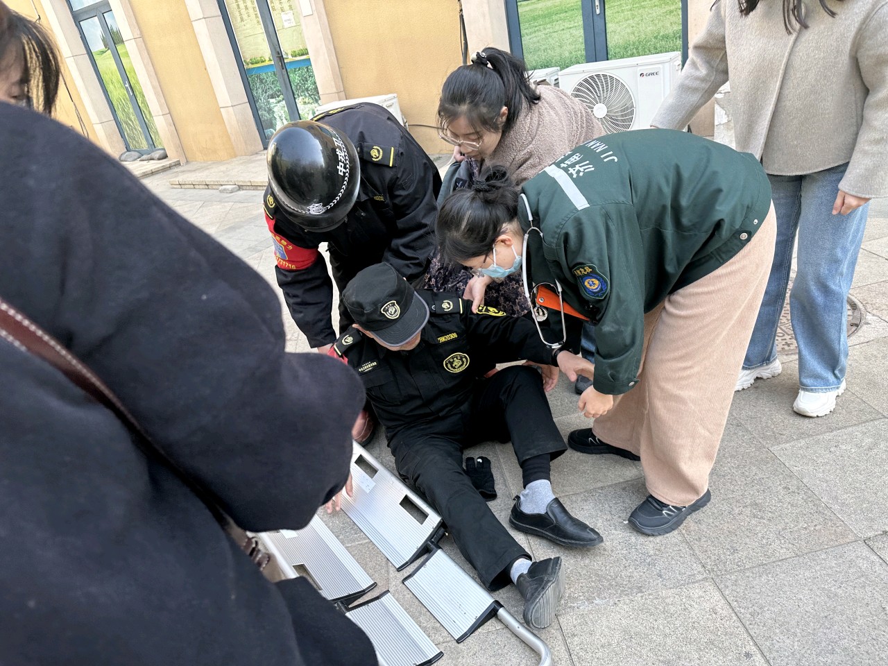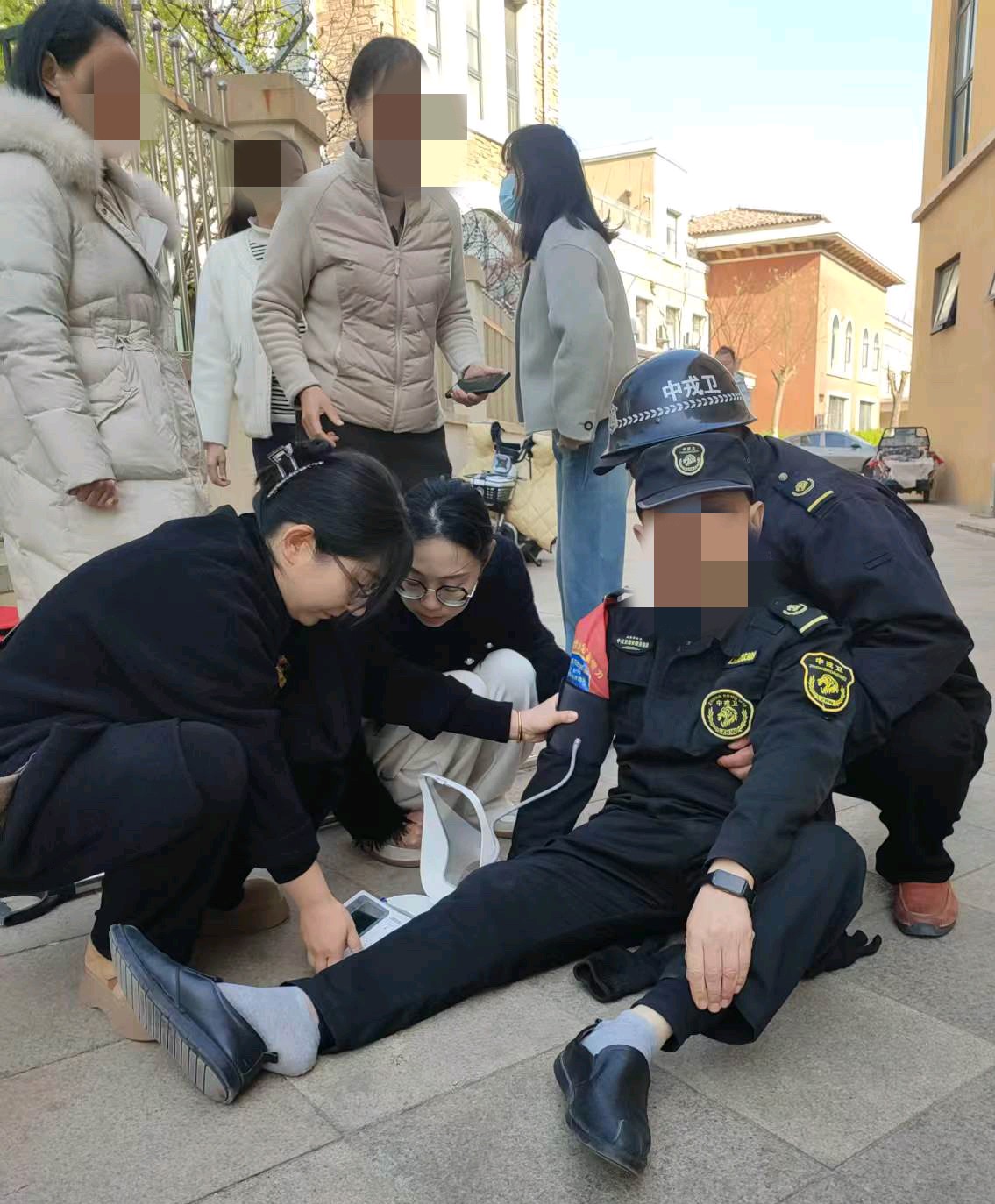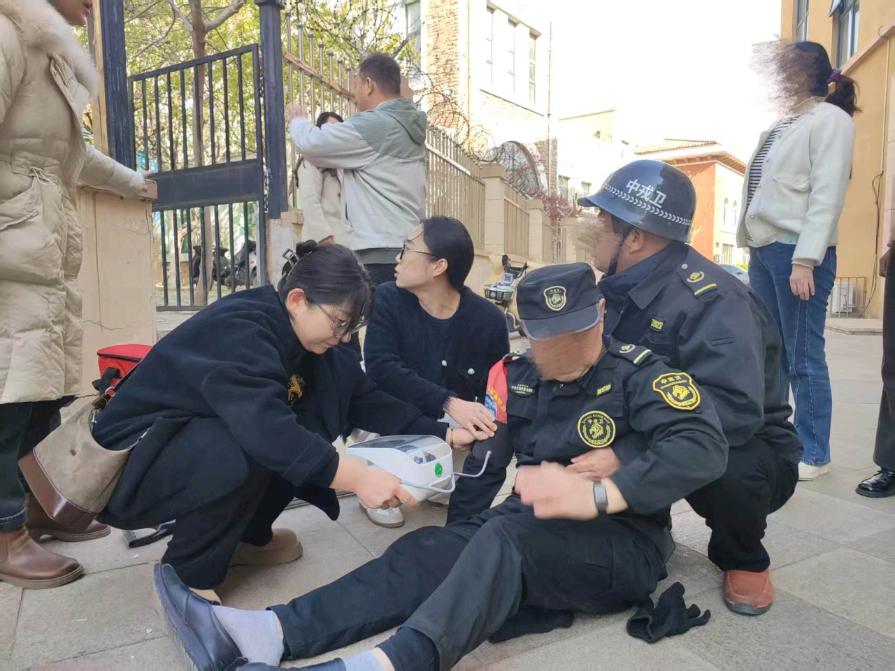 爱心传递,大爱无边,白衣天使抢救站岗晕倒的保安