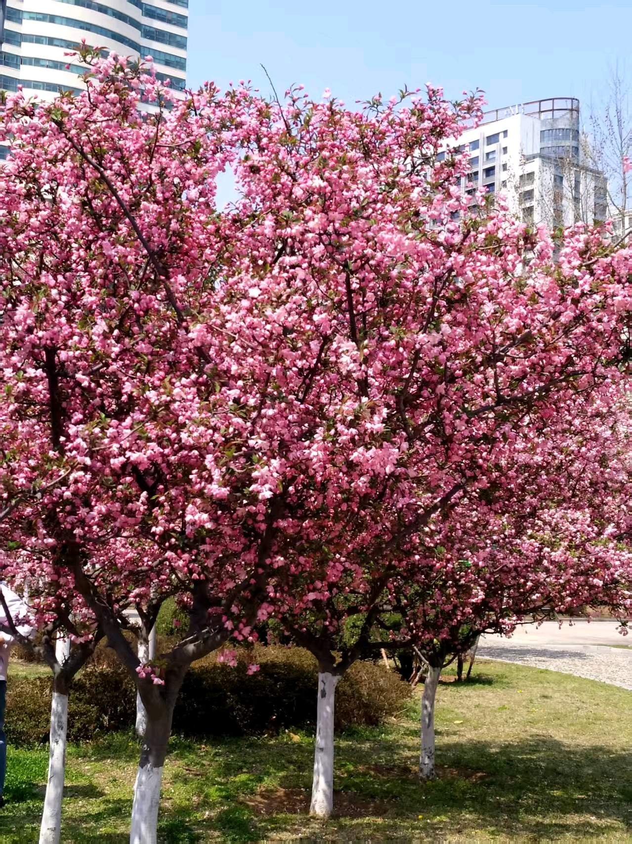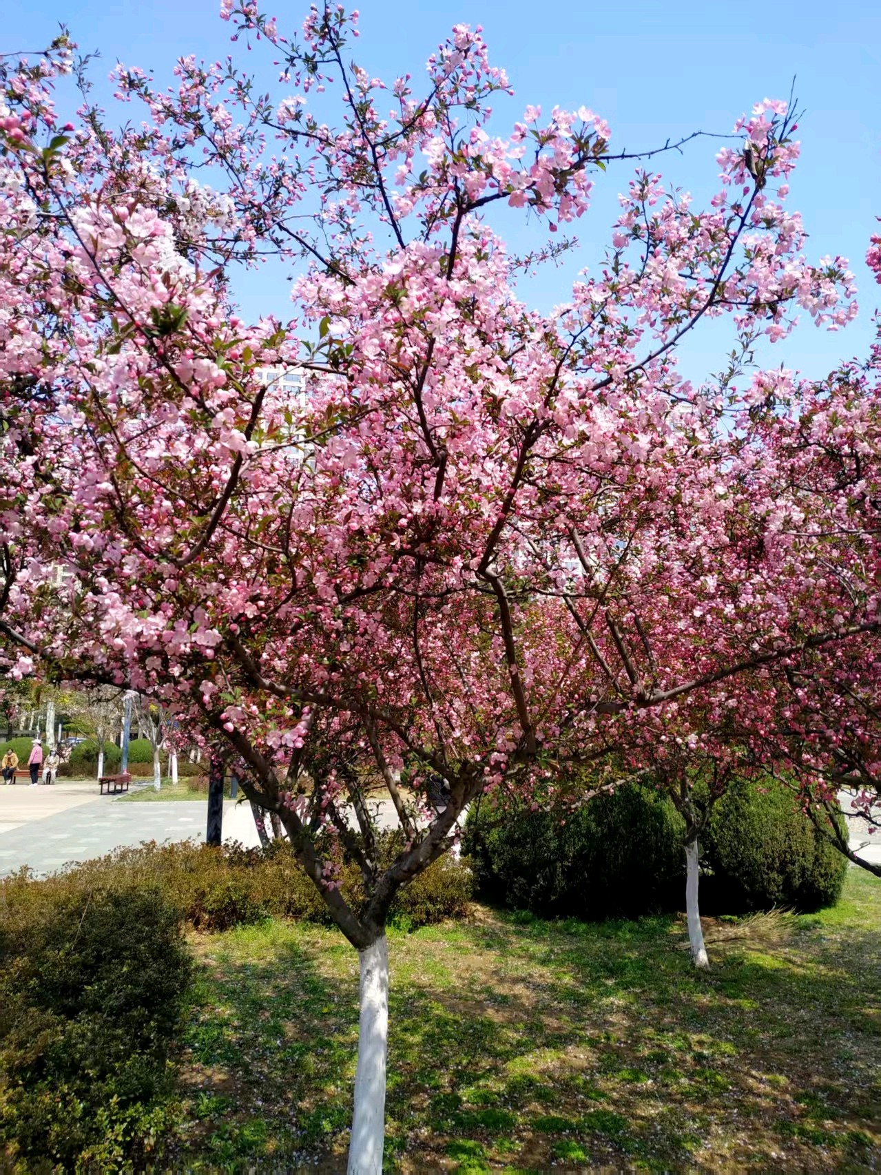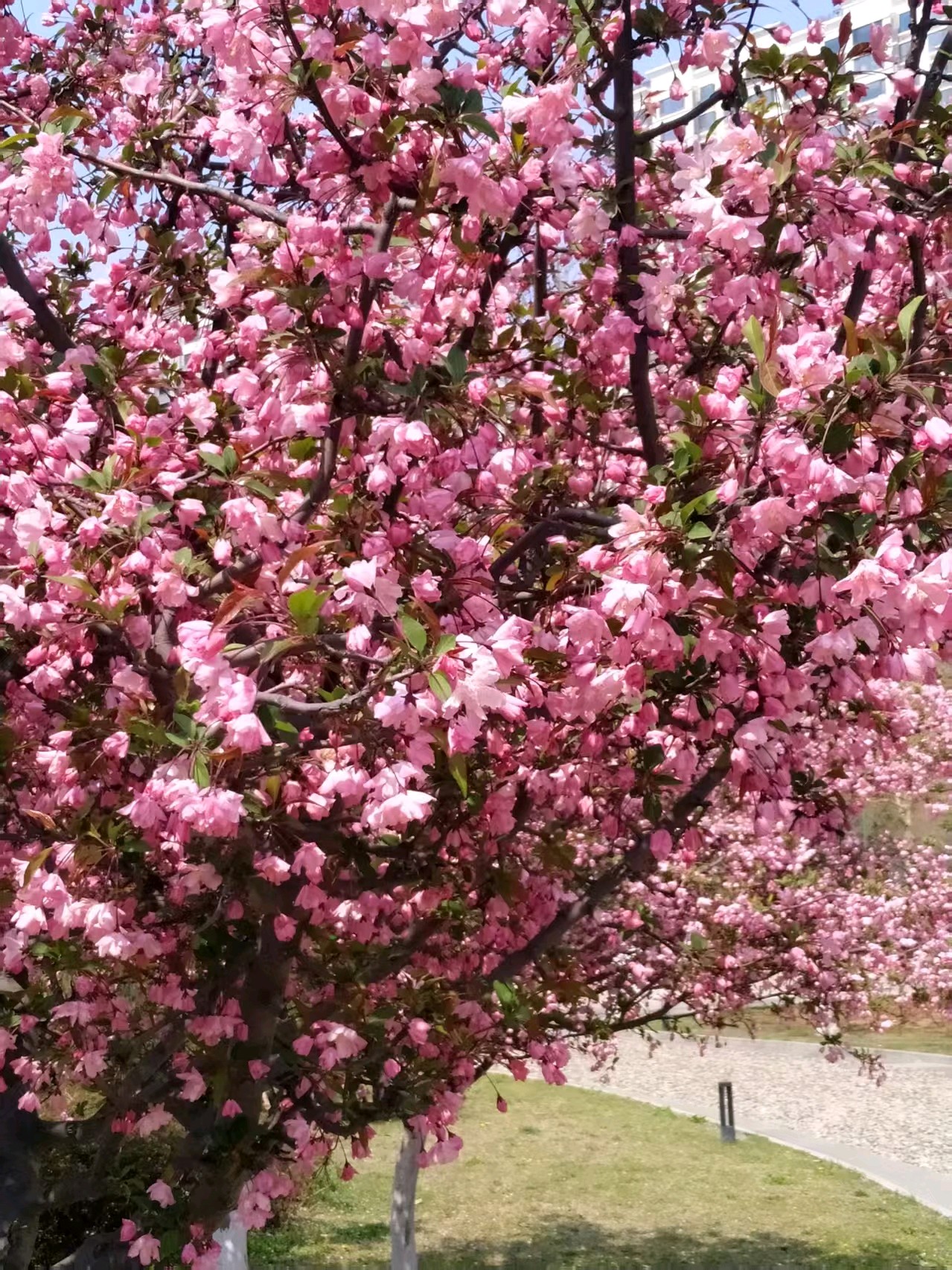 威海休闲体育公园,风景优美,是休闲锻炼的场所,这里的海棠花、樱花都开了,太美了!