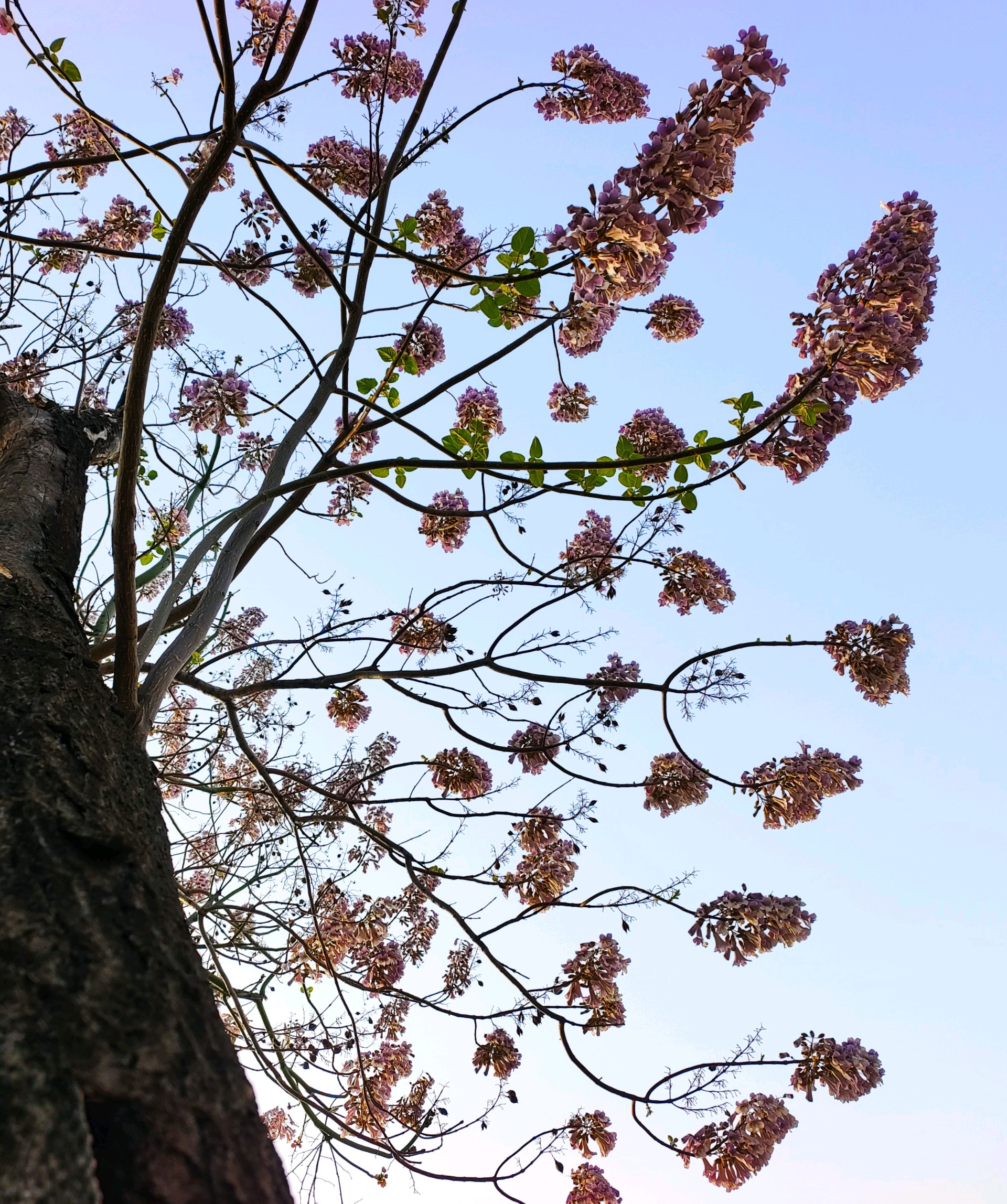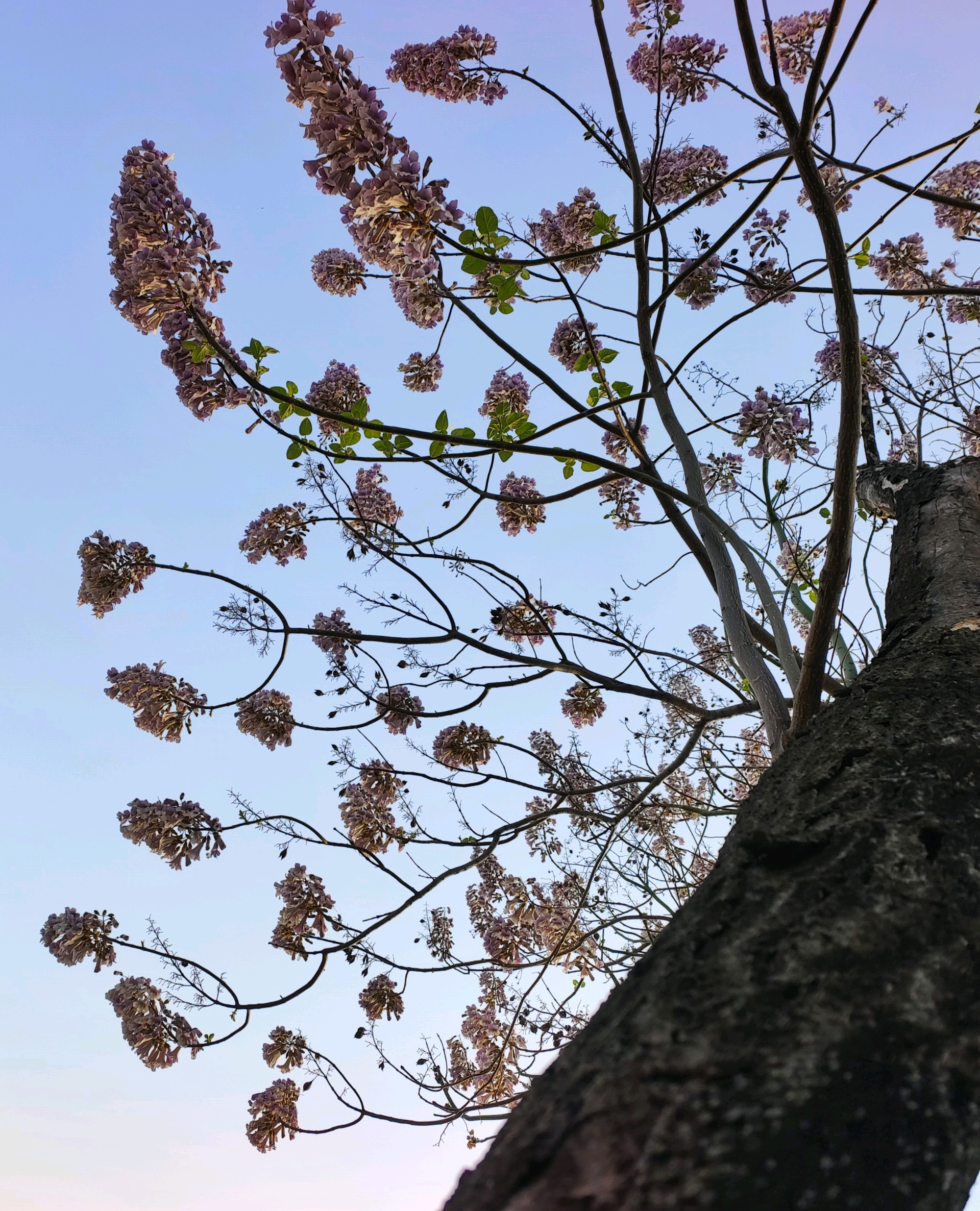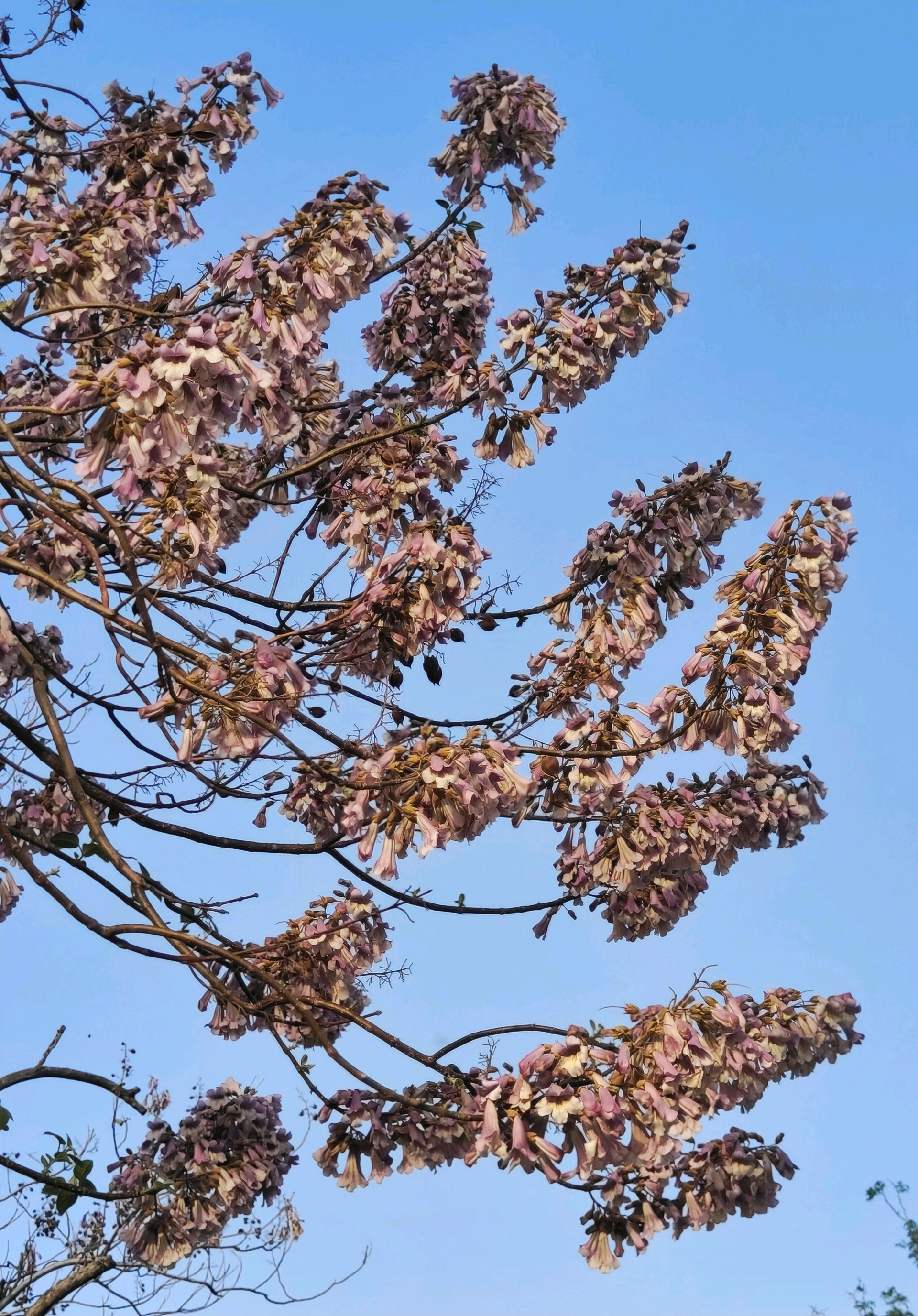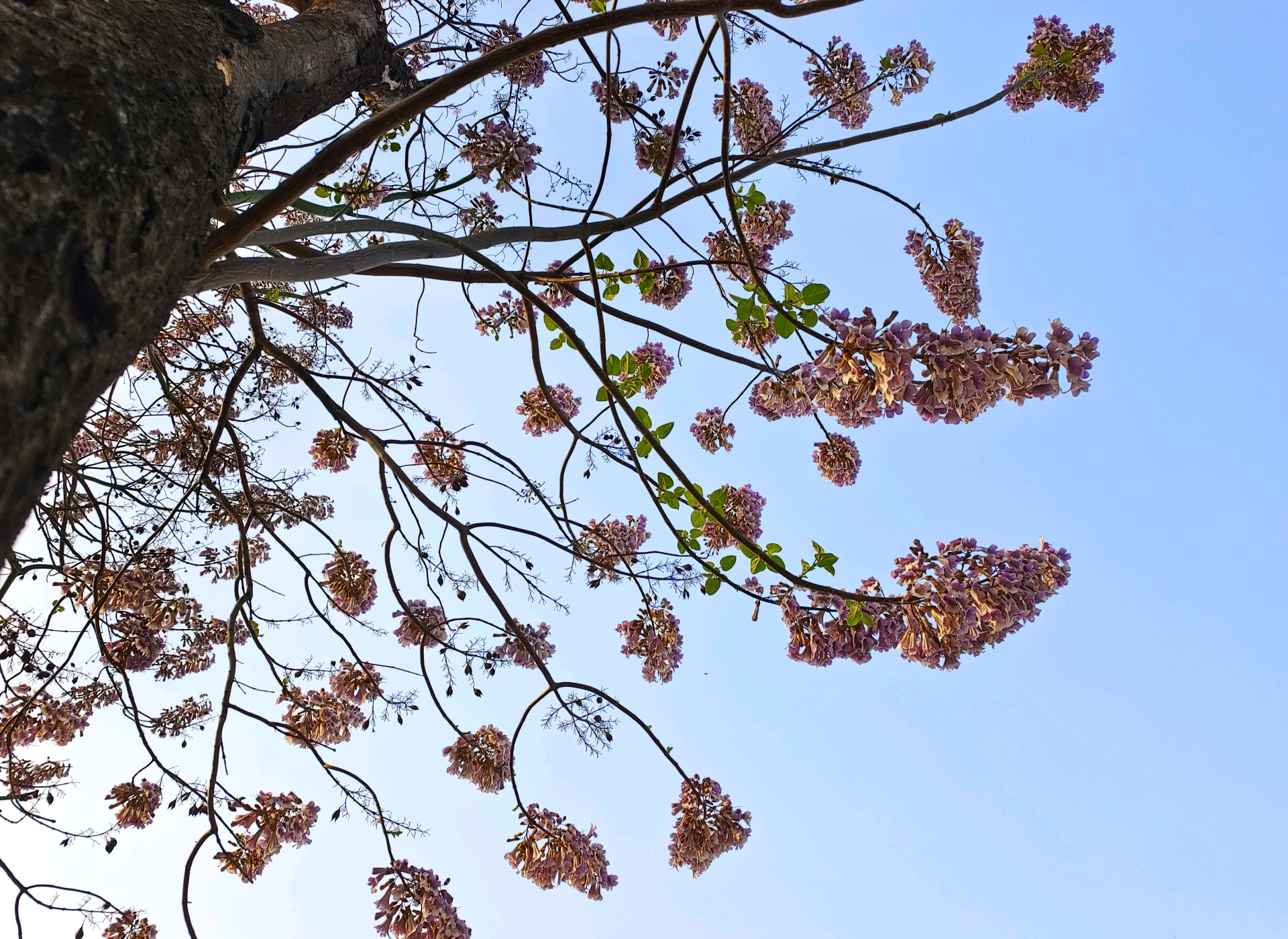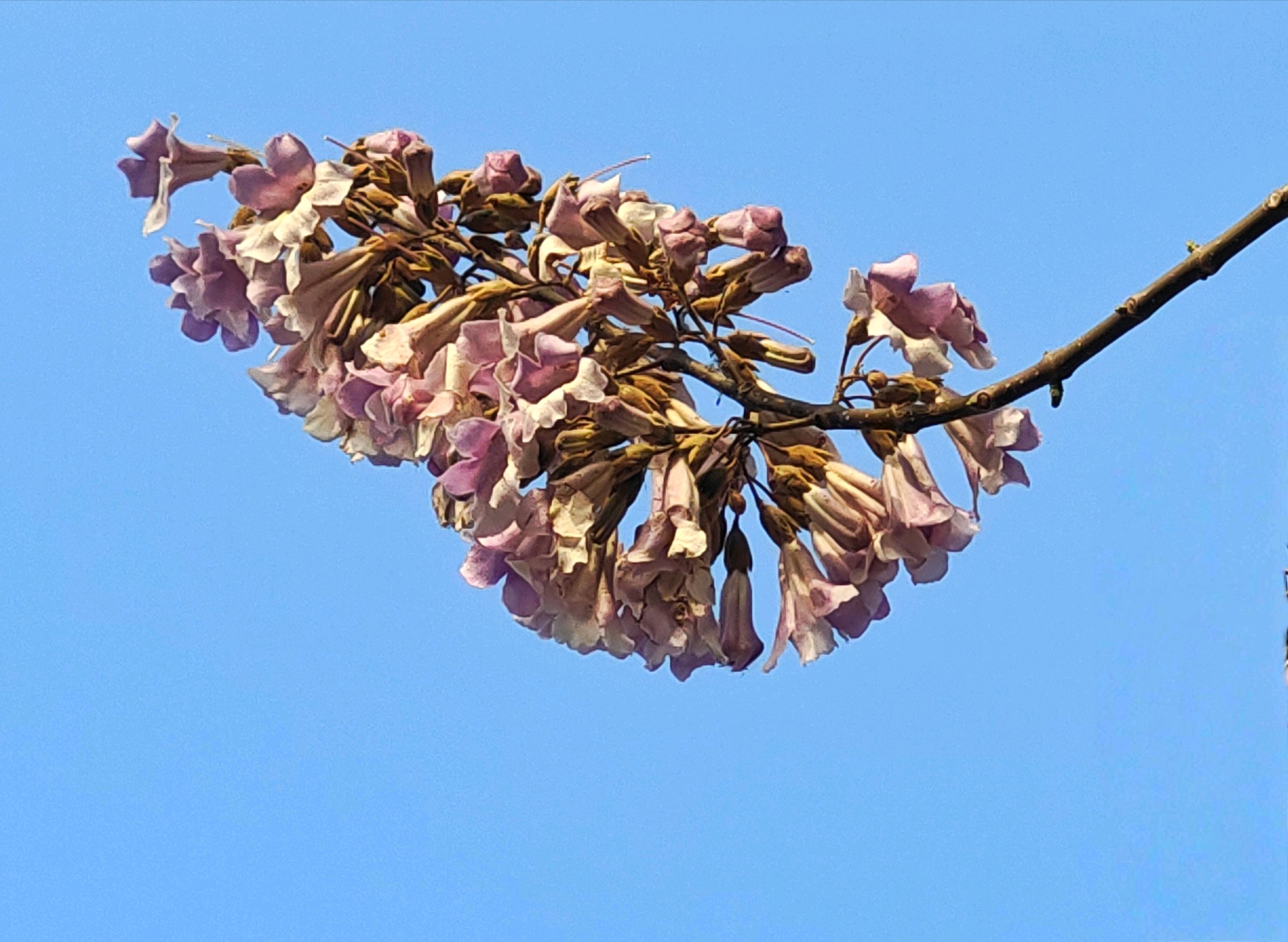 紫色花形如风铃 一串串挂在枝头4月16日,在沂河岸边广场的梧桐树已被繁花覆盖,开出了一串串形如风铃的花朵。梧桐花儿颜色淡雅,白中带紫,紫里镶白。阵阵微风吹过,浓郁的香气,香飘沂河岸边。梧桐花儿不仅美丽耀眼夺目,而且魅力无穷无尽,如果看上一眼就心生欢喜,陶醉在美与香之中。(高军摄影)