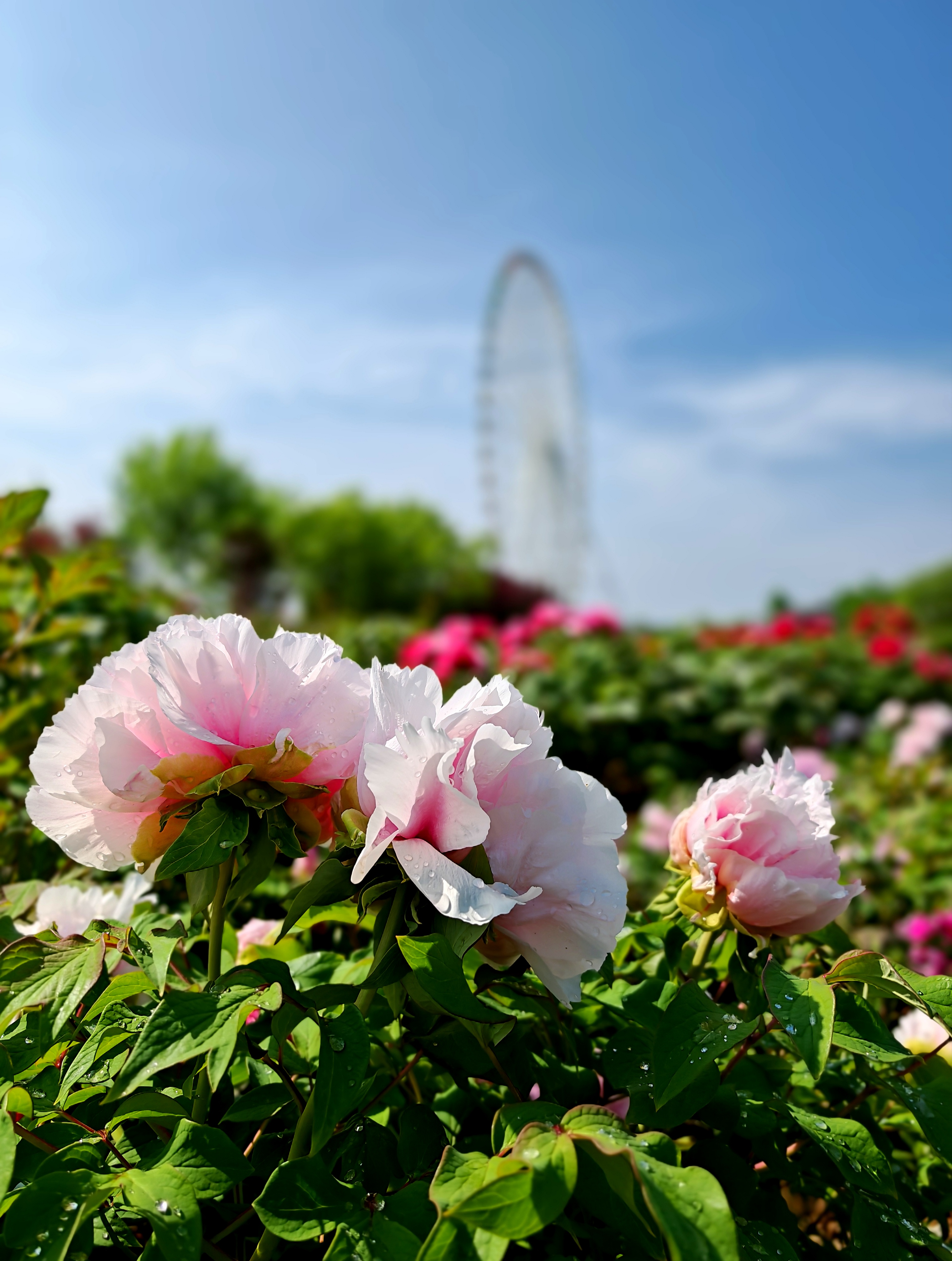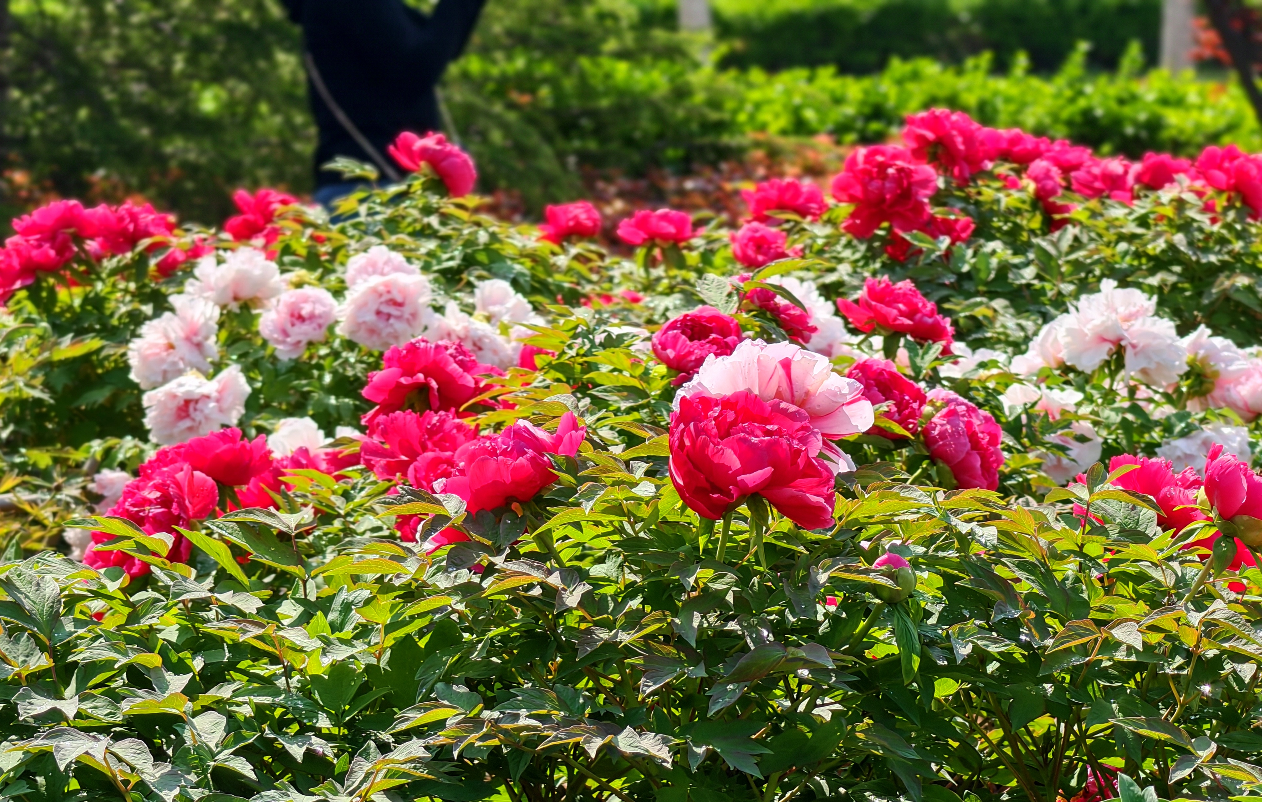 牡丹园以观赏牡丹、芍药为主题,品种多样,花色丰富,盛花期时与溪水、亭台楼阁相映成趣,呈现江南园林风格。