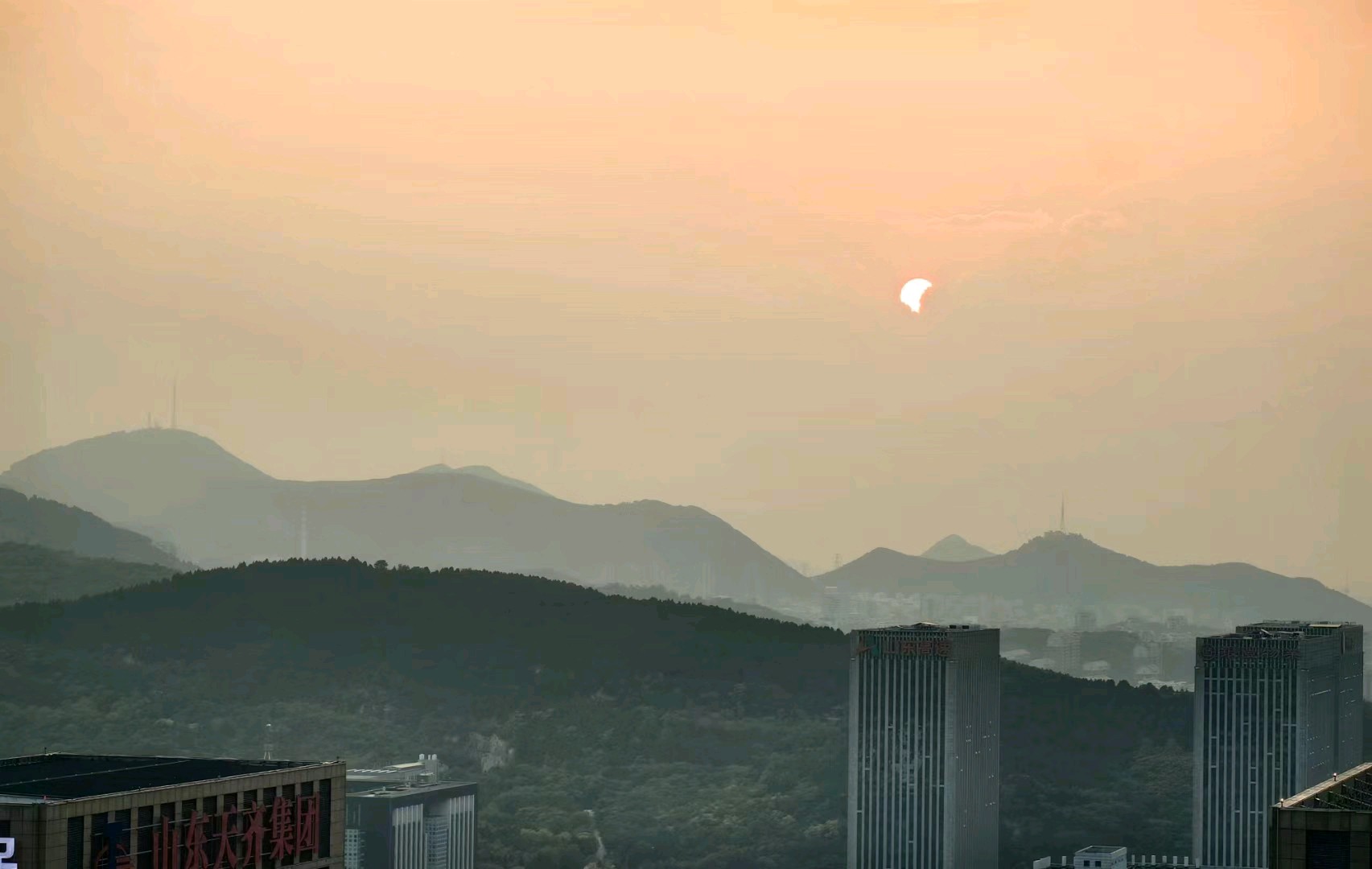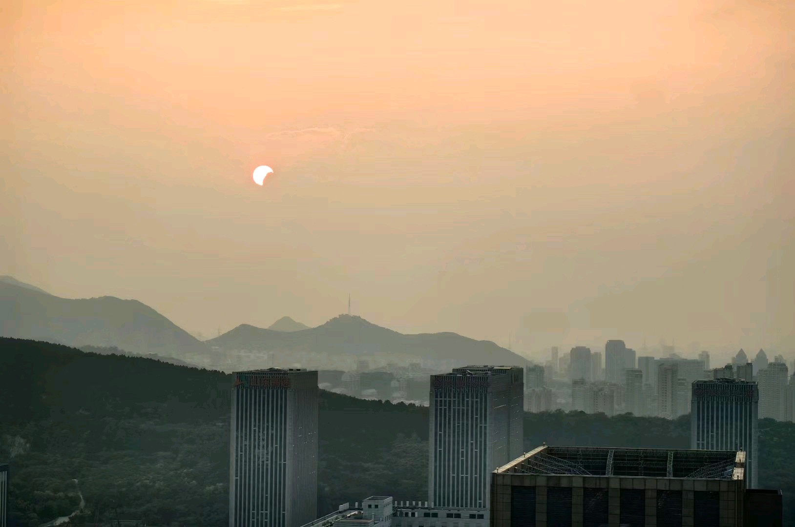 登上楼顶拍夕阳,日月同辉,没醉了