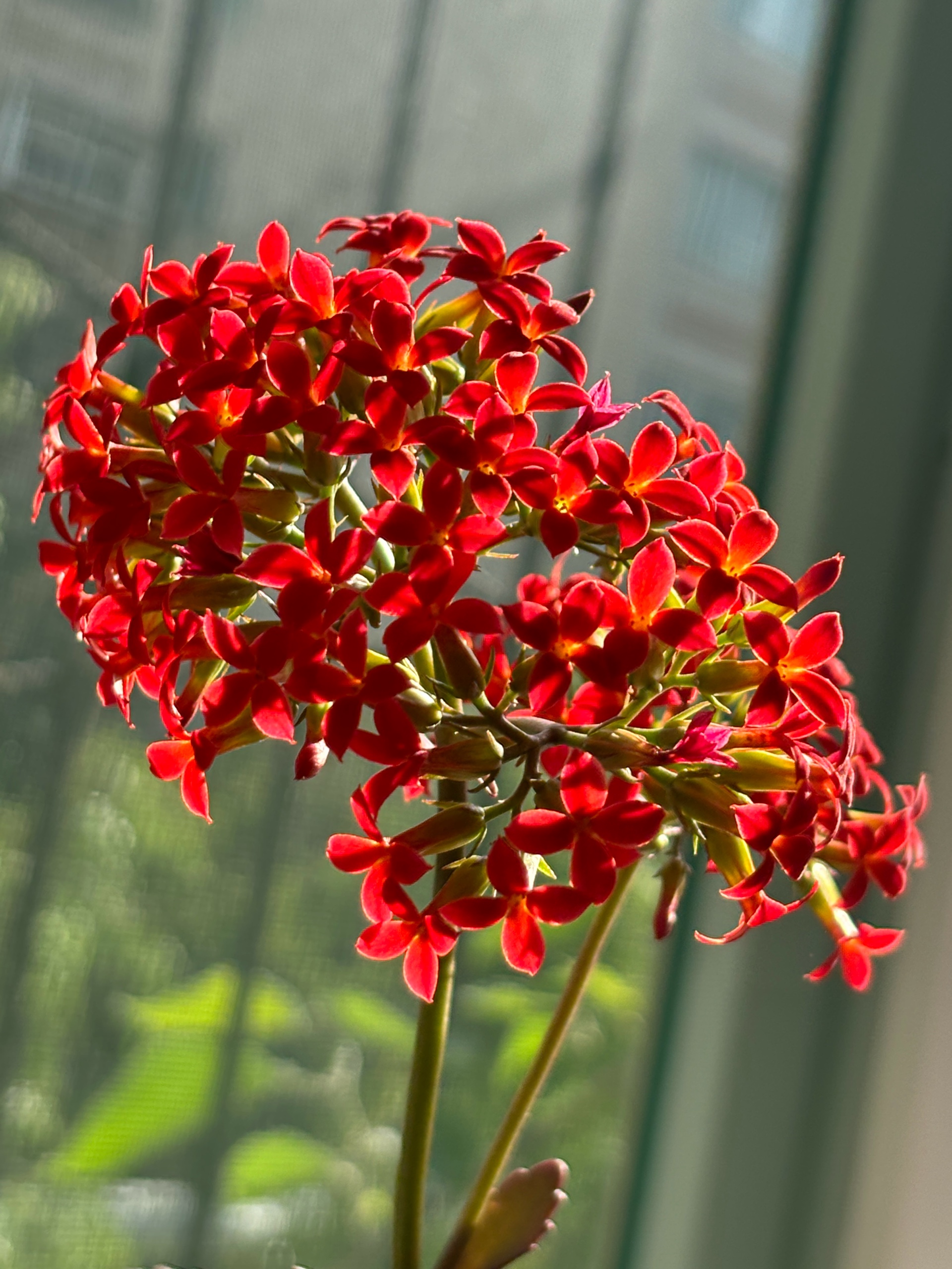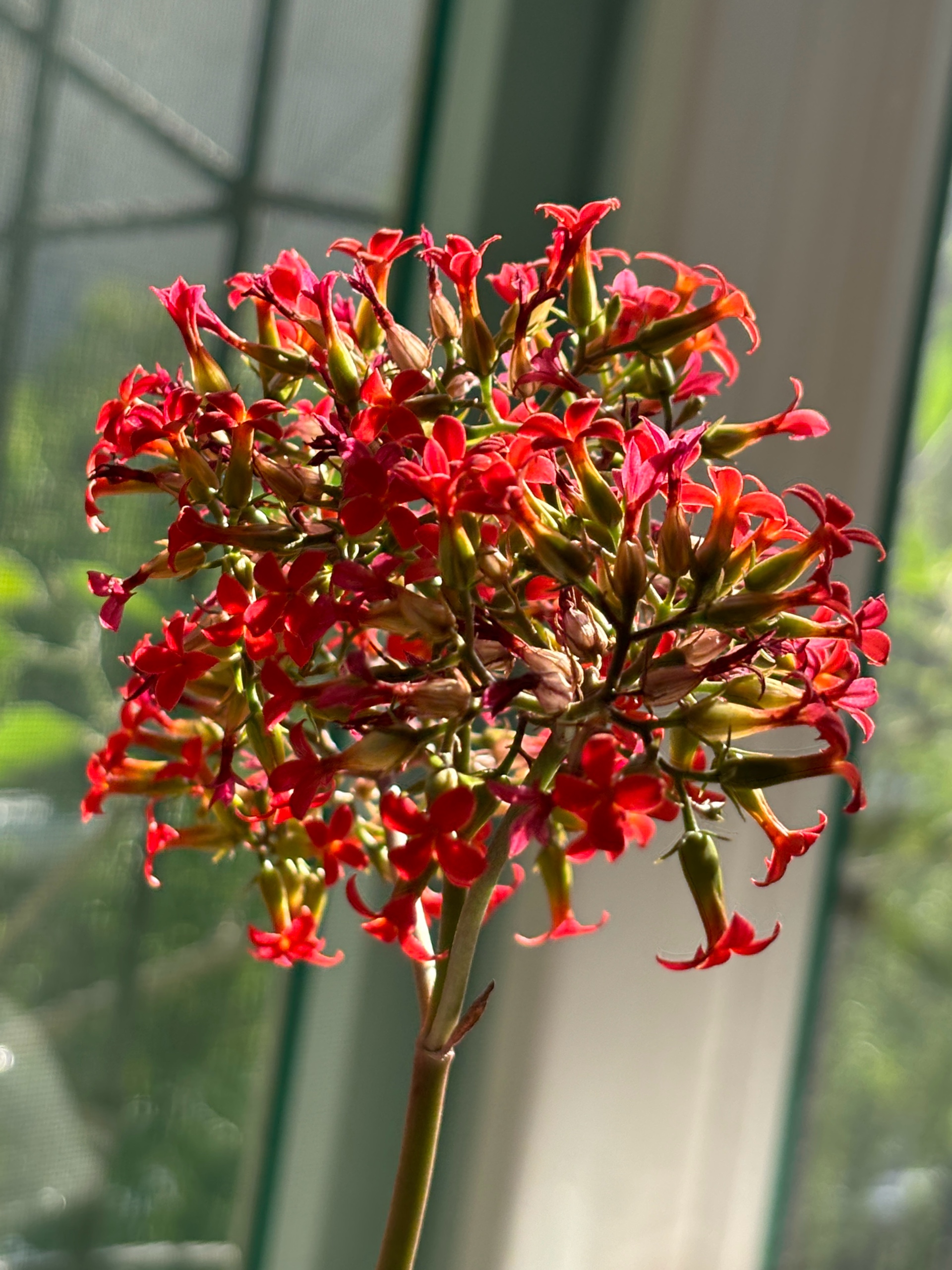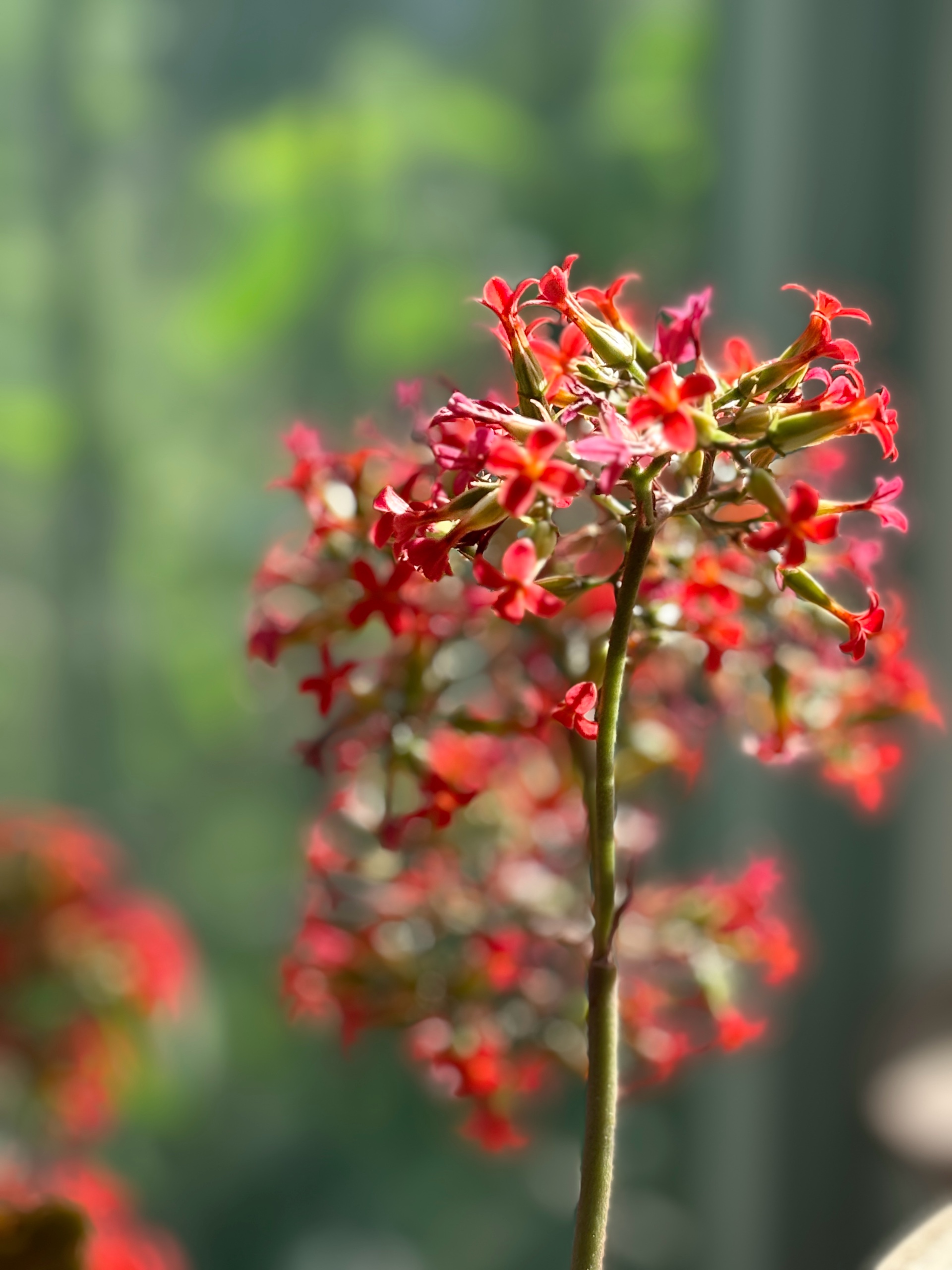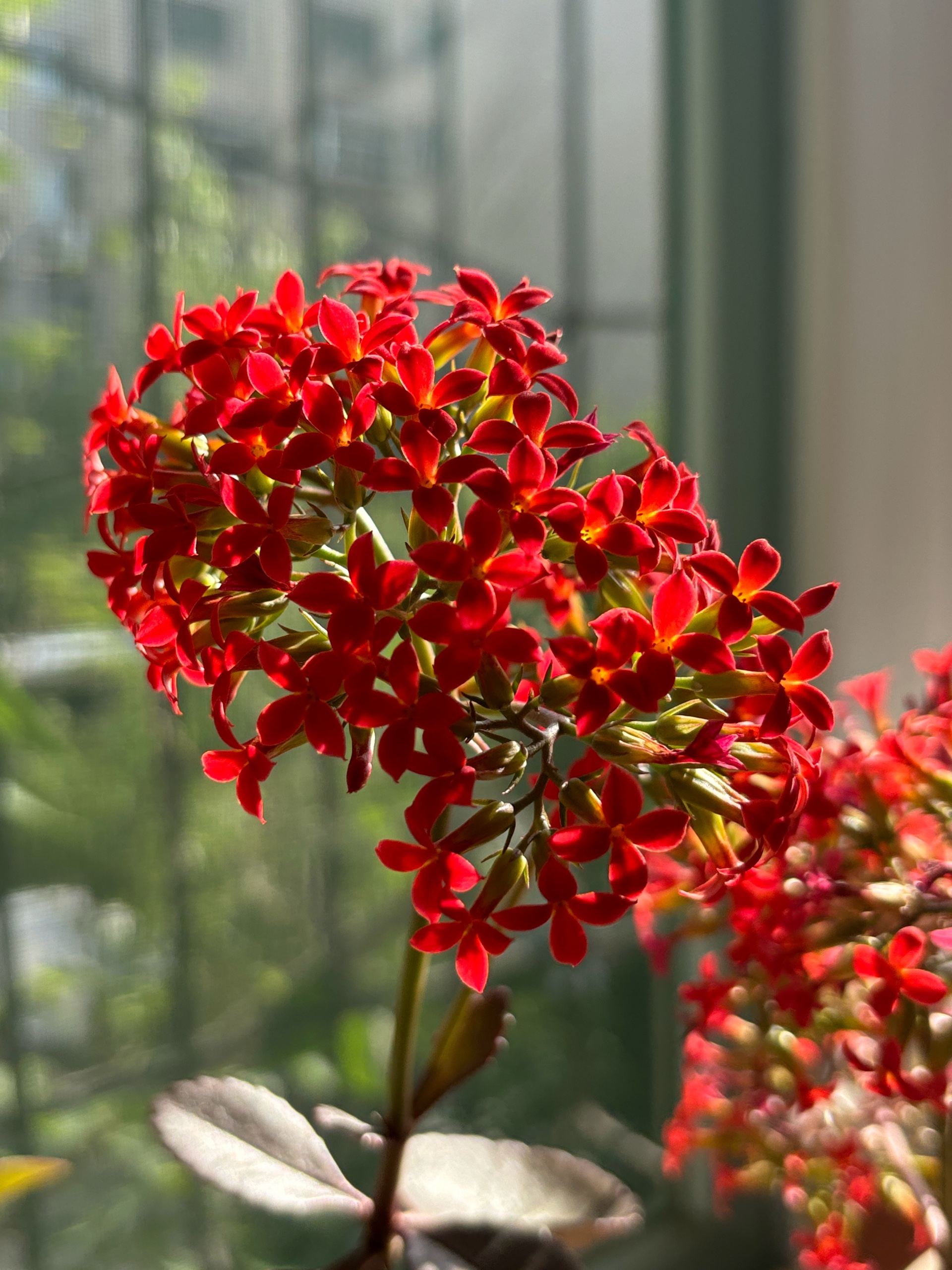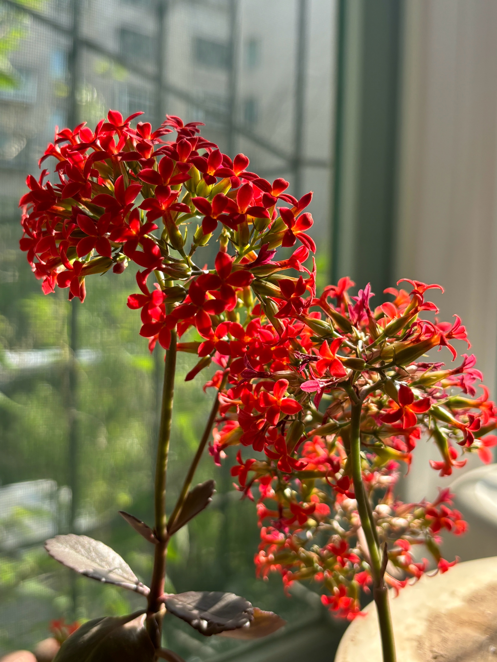 我家的长寿花来了,小小的花骨朵儿,一串一串的像喇叭一样美丽绽放。