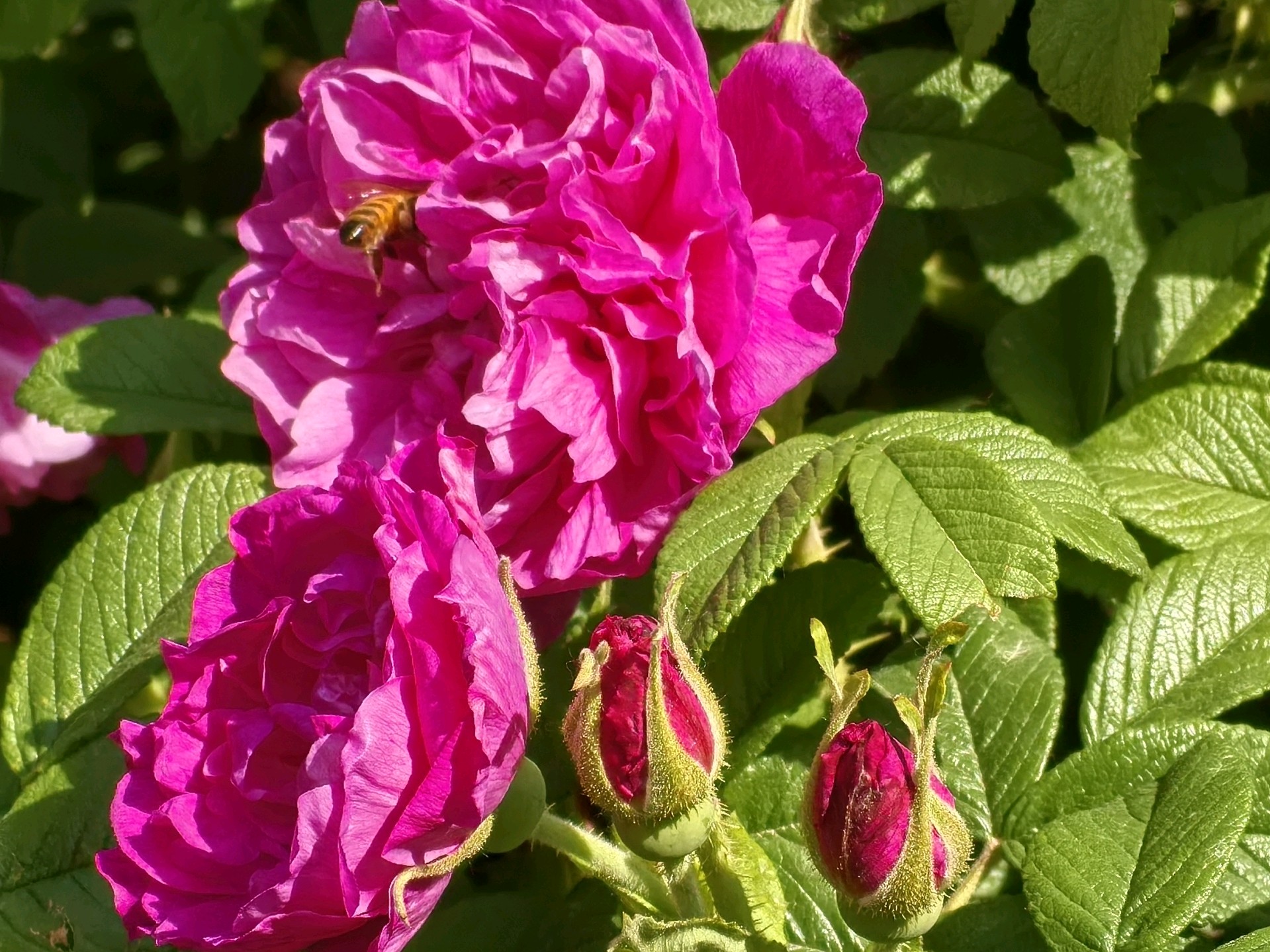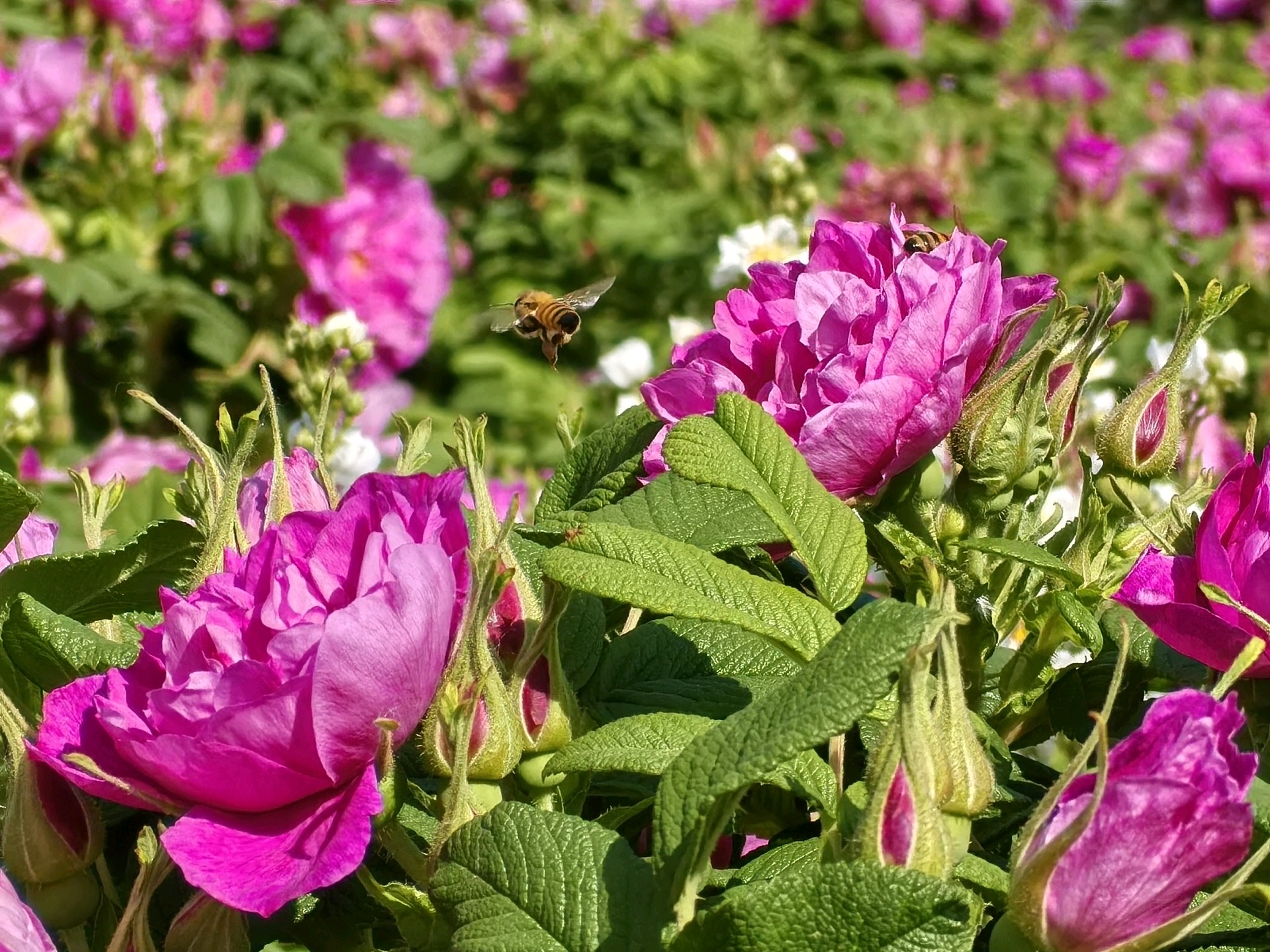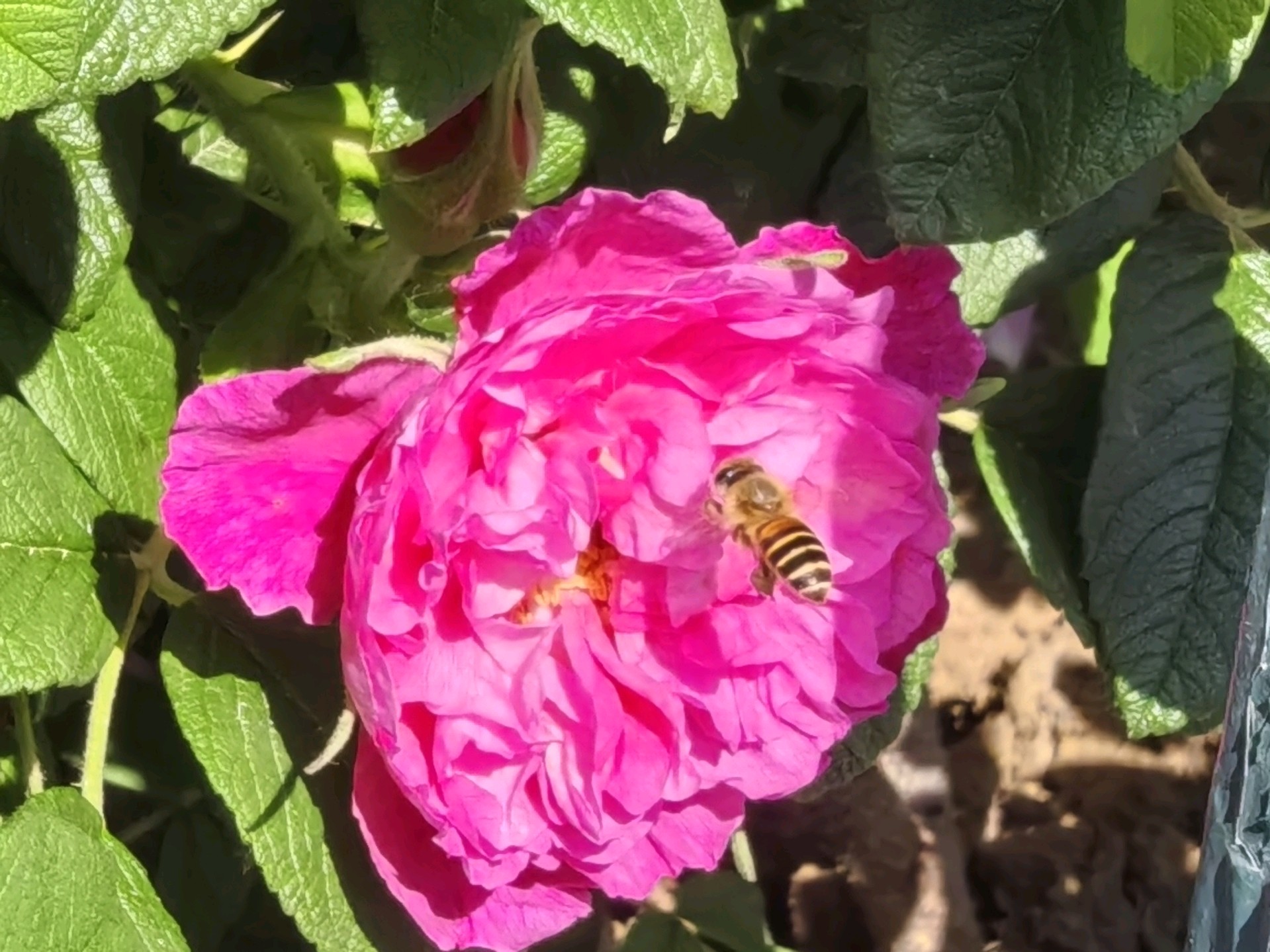 玫瑰的芬芳与花蜜,吸引了无数蜜蜂。它们在玫瑰丛中蹁跹起舞,宛如灵动的舞者。蜜蜂们凭借着敏锐的嗅觉,轻易地找到了玫瑰花的位置。它们小心翼翼地降落在花瓣上,用细长的触角轻轻触碰花蕊,然后伸出吸管般的口器,贪婪地吮吸着花蜜。蜜蜂们在花丛中忙碌地穿梭着,它们不仅采集花蜜,还采集花粉,小蜜蜂们忙了个不亦乐乎。