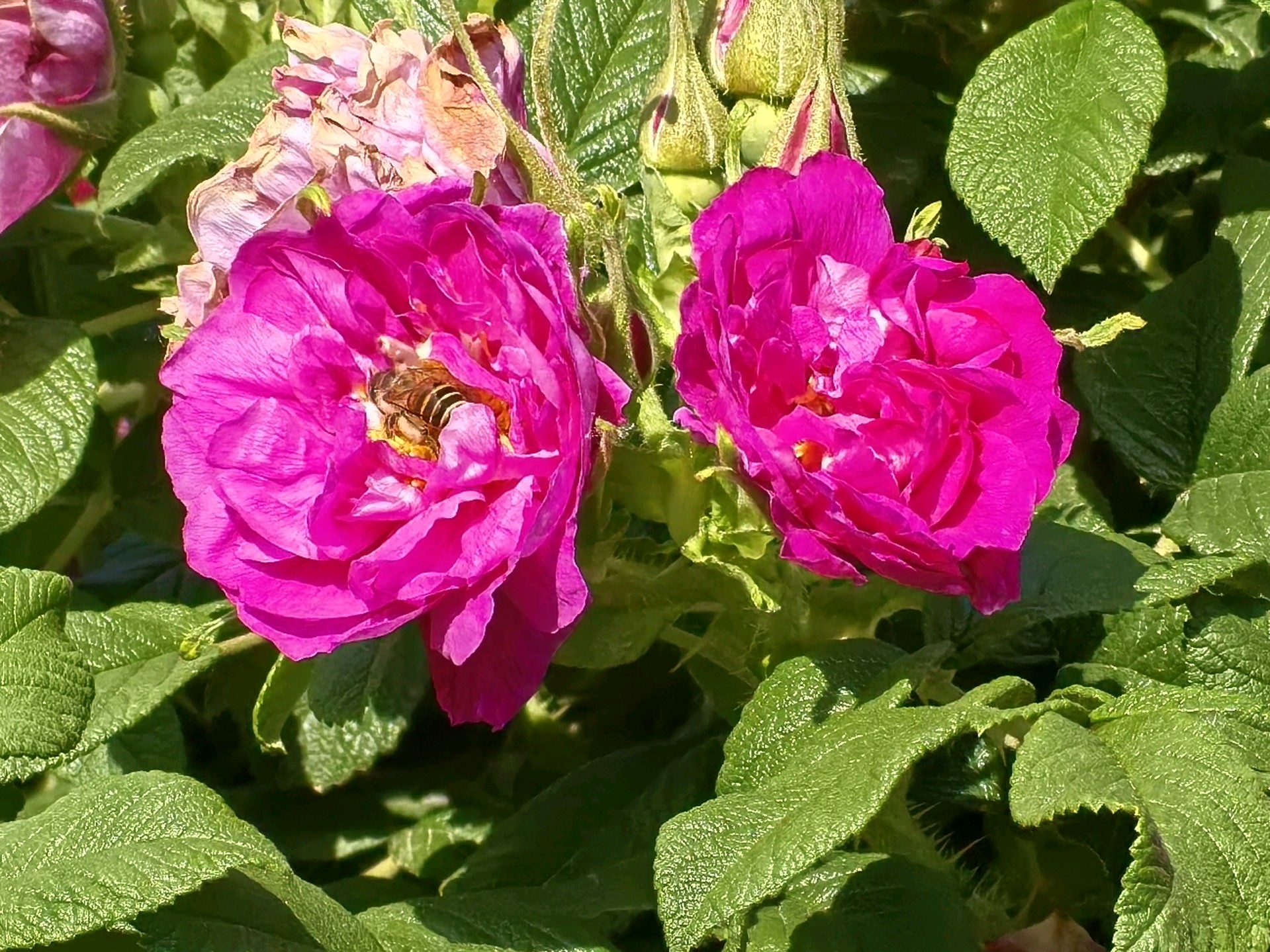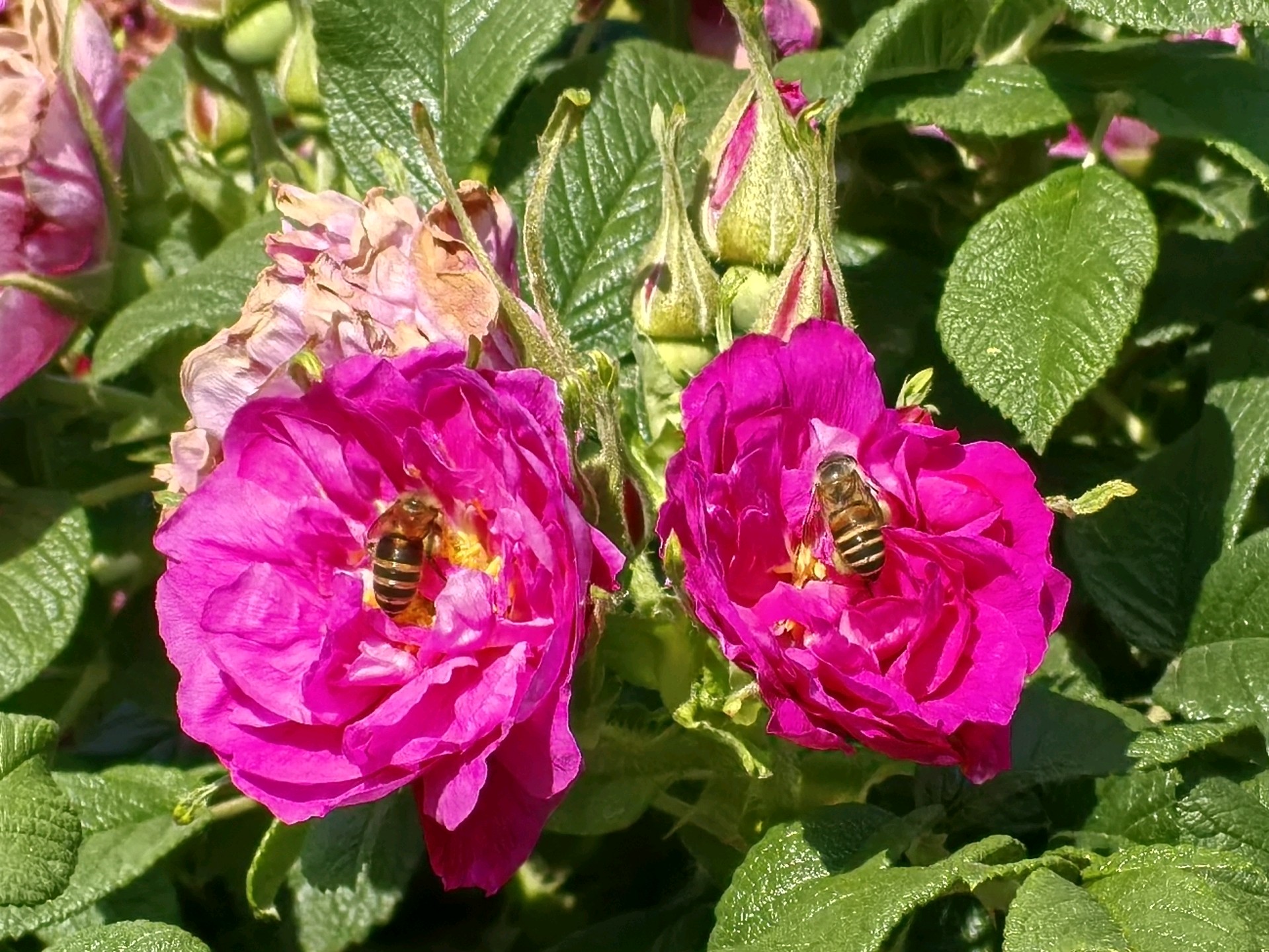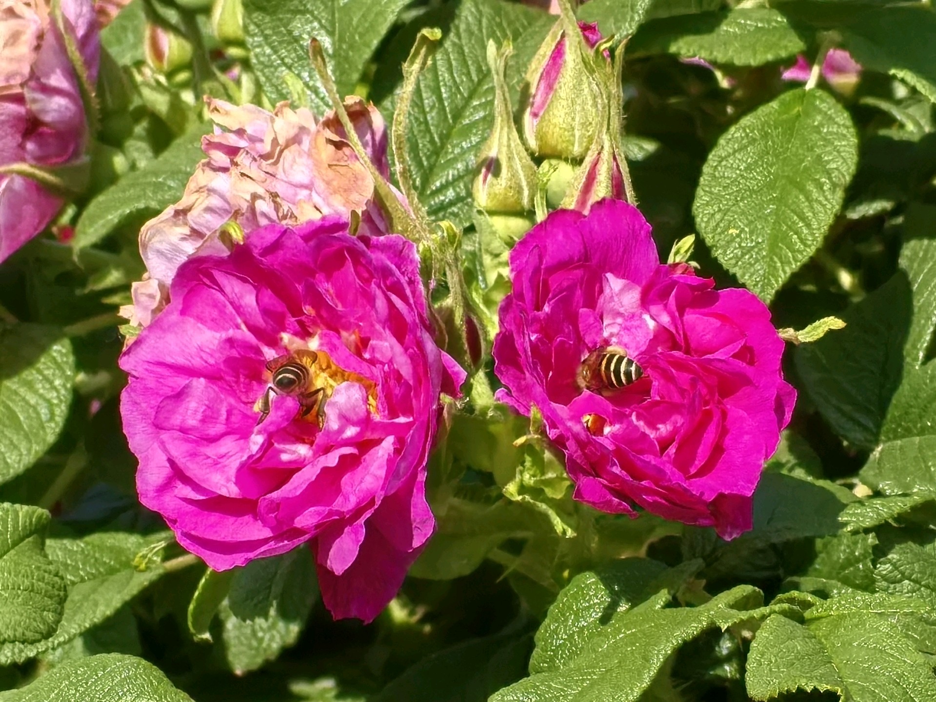 玫瑰的芬芳与花蜜,吸引了无数蜜蜂。它们在玫瑰丛中蹁跹起舞,宛如灵动的舞者。蜜蜂们凭借着敏锐的嗅觉,轻易地找到了玫瑰花的位置。它们小心翼翼地降落在花瓣上,用细长的触角轻轻触碰花蕊,然后伸出吸管般的口器,贪婪地吮吸着花蜜。蜜蜂们在花丛中忙碌地穿梭着,它们不仅采集花蜜,还采集花粉,小蜜蜂们忙了个不亦乐乎。