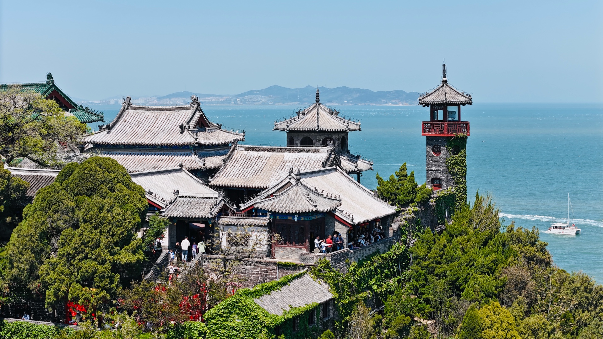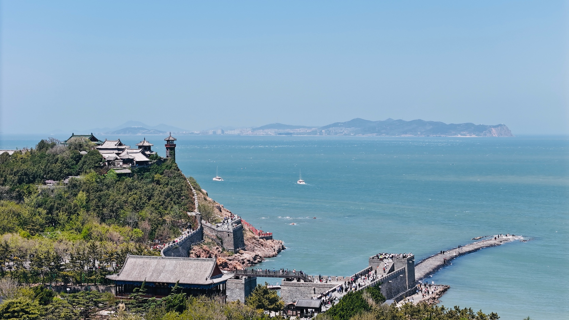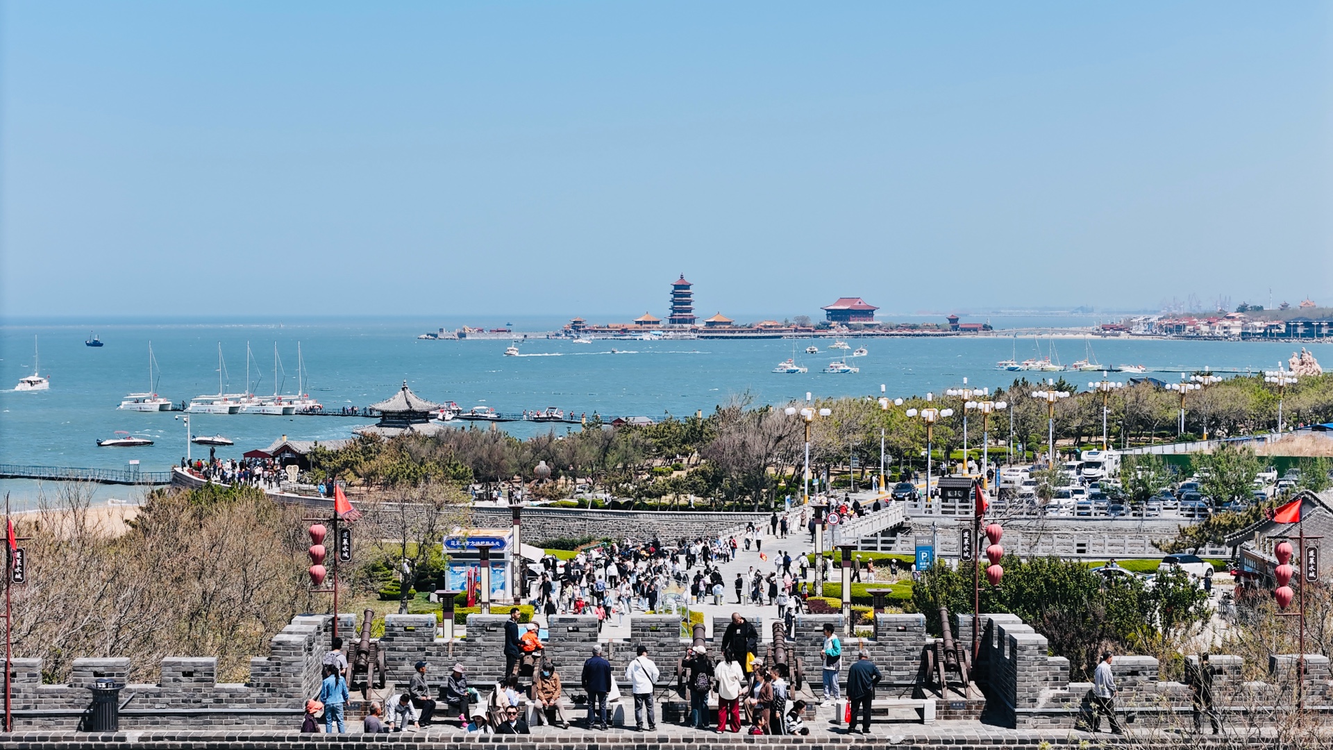 #五一假期“趣”旅行 ,好景山东在路上#“五一”假期首日,烟台市区雨过天晴,市民游客走到户外打卡游玩。5月1日,蓬莱区蓬莱阁景区,市民游客纵览仙境盛景,感受八仙神话传说,领略古登州的繁华,品味千年古建的沧桑。