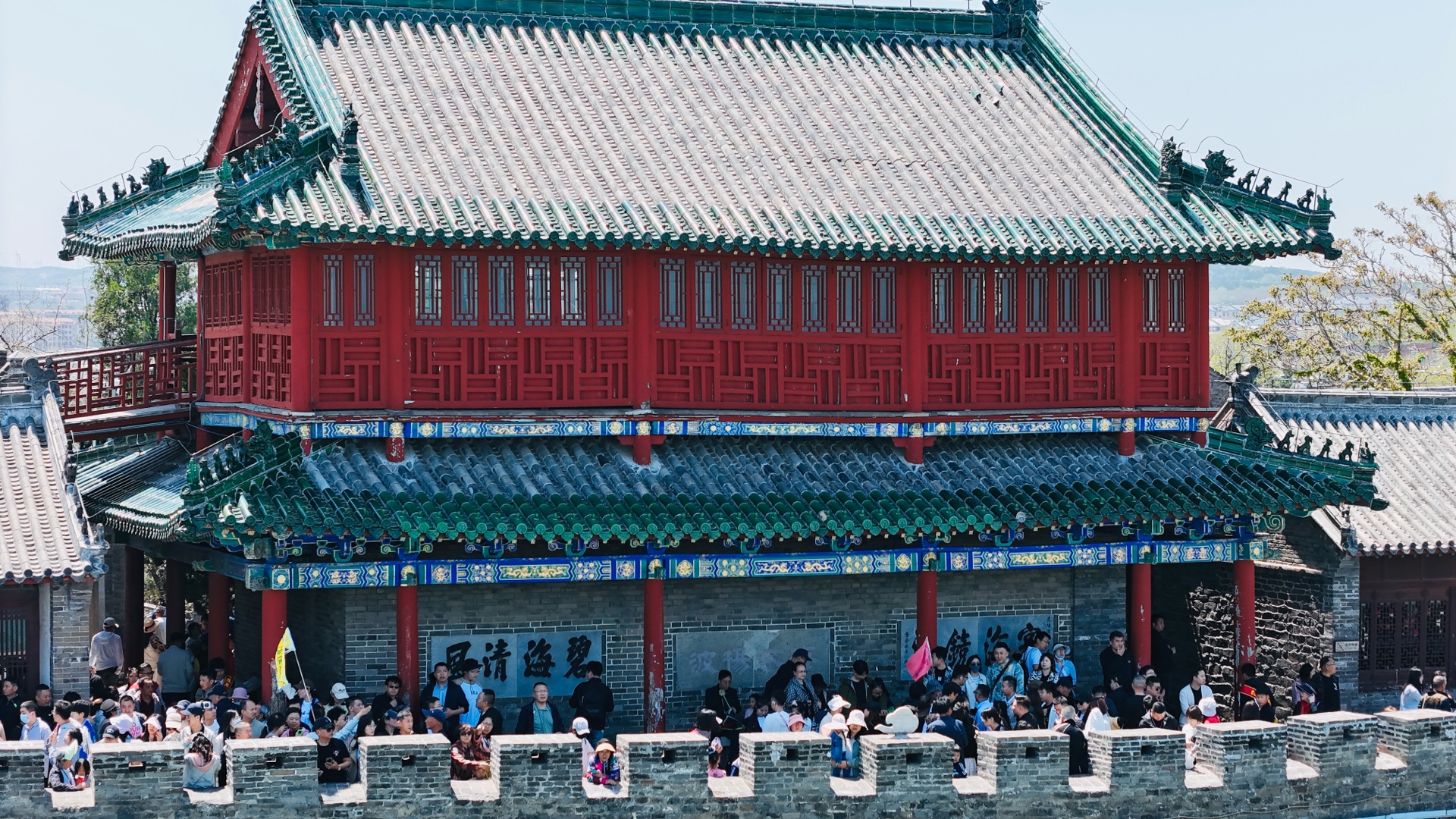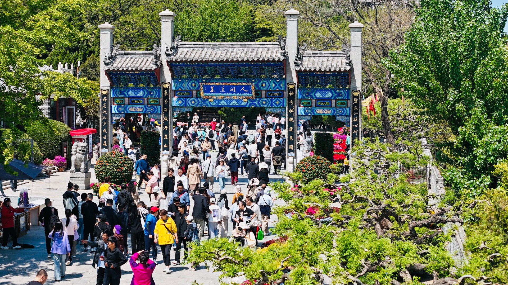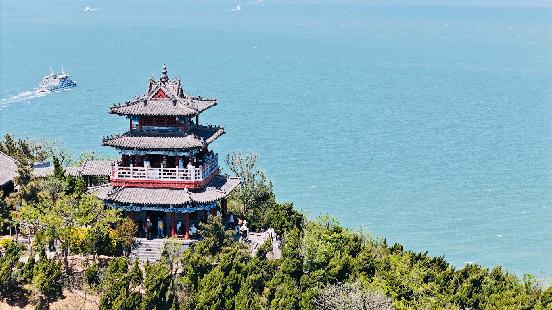 #五一假期“趣”旅行 ,好景山东在路上#“五一”假期首日,烟台市区雨过天晴,市民游客走到户外打卡游玩。5月1日,蓬莱区蓬莱阁景区,市民游客纵览仙境盛景,感受八仙神话传说,领略古登州的繁华,品味千年古建的沧桑。