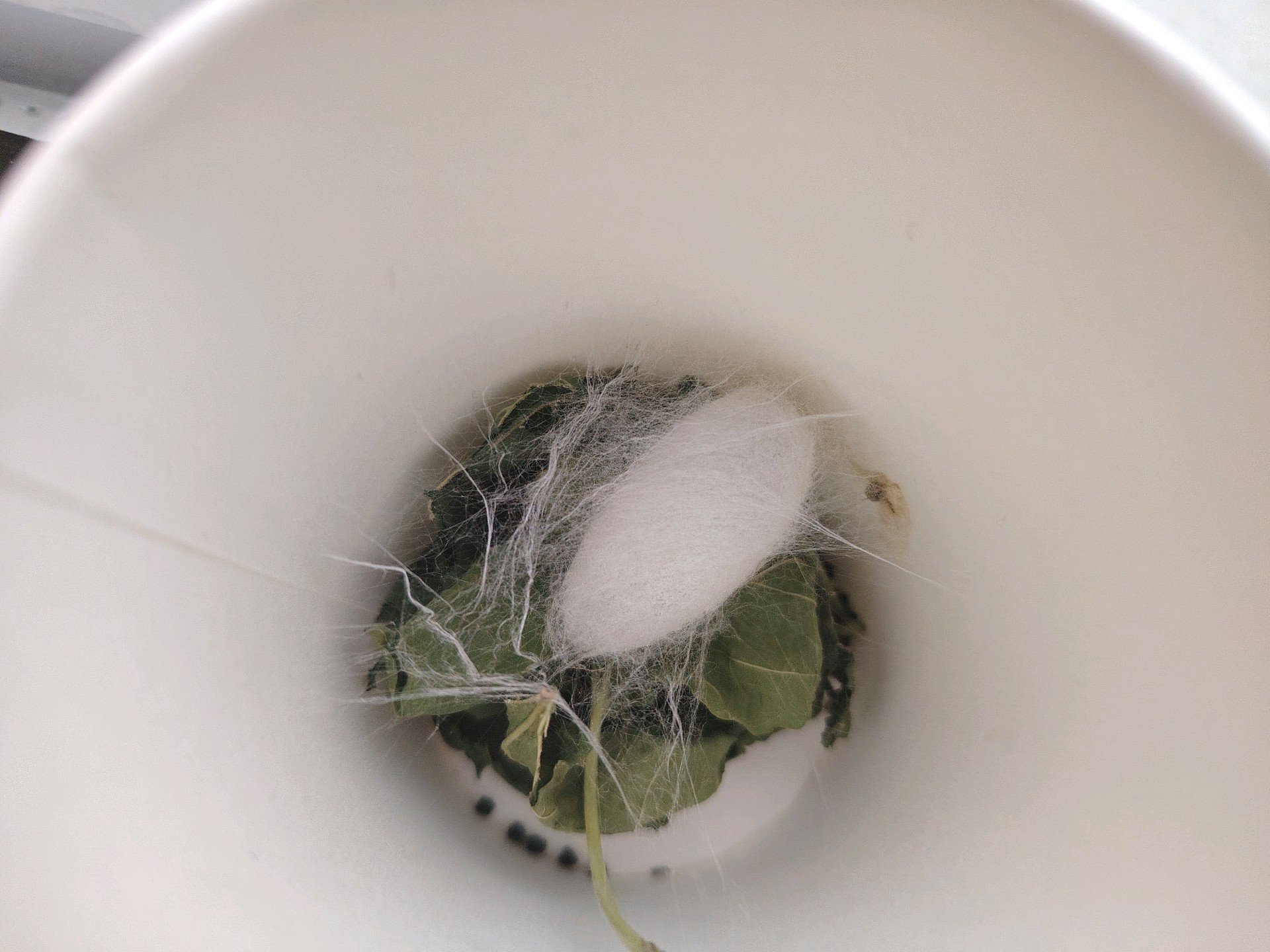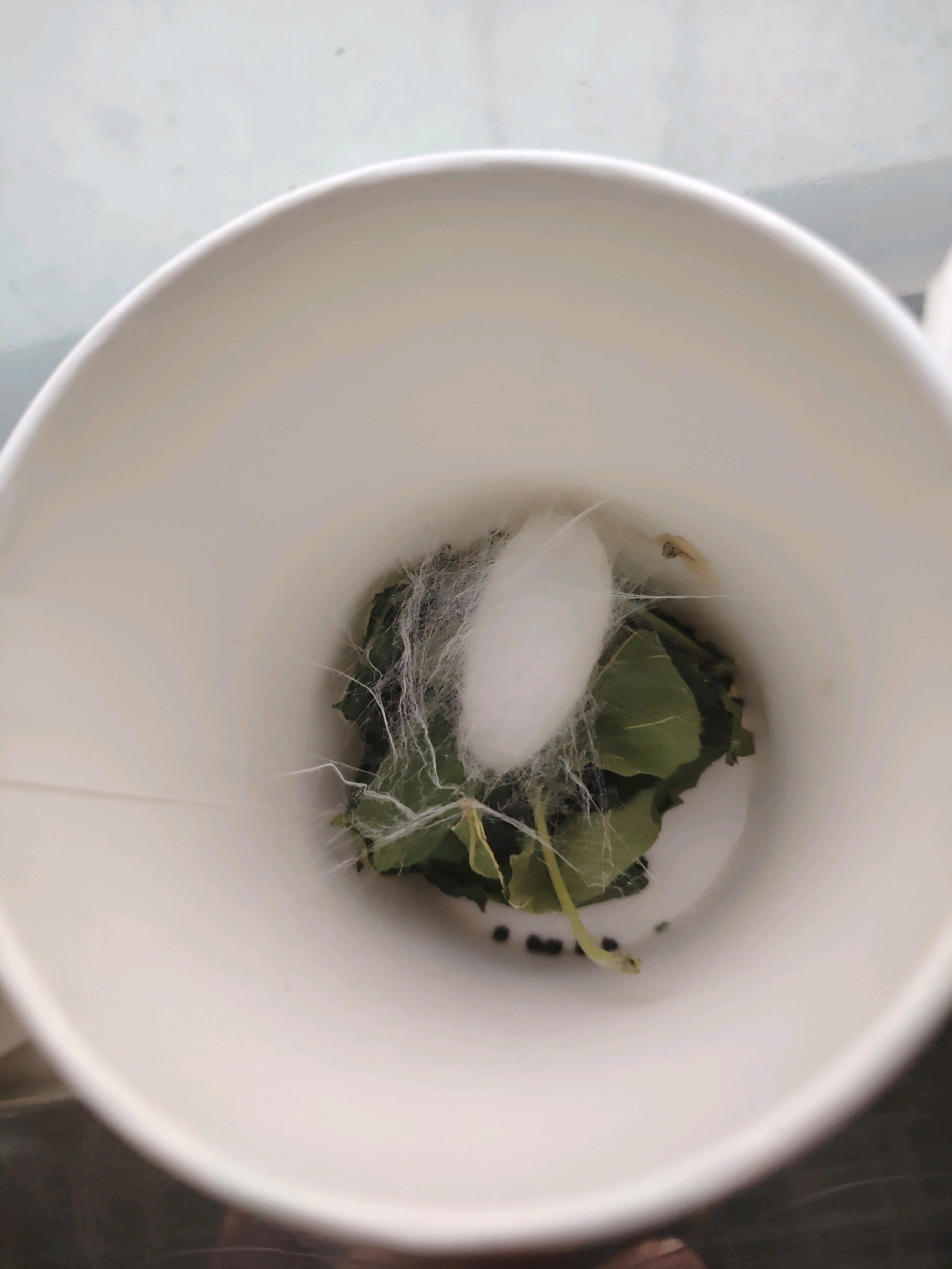 为了让孩子们见证了蚕宝宝奇妙的一生,老师们从塑料盒中养了几条蚕宝宝,让孩子们观察。蚕宝宝从叶片间奋力啃食桑叶的蠕动身影,到在小杯中静静织茧,将自己包裹于洁白丝缕之中。这小小的生命,用坚持与蜕变,诠释着自然的神奇,每一个阶段都在诉说着成长与新生的力量。