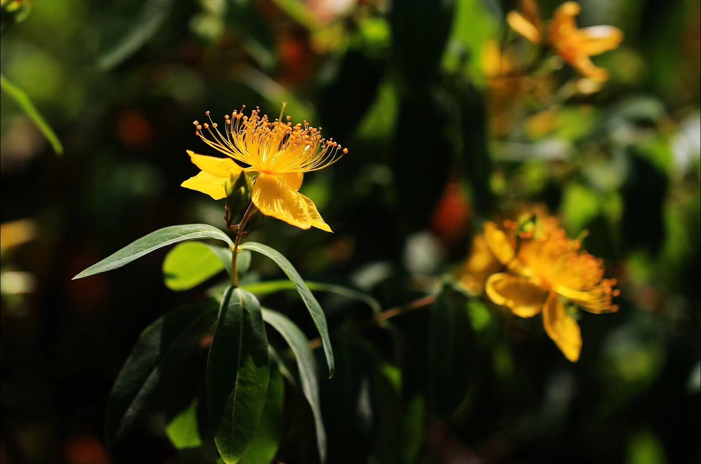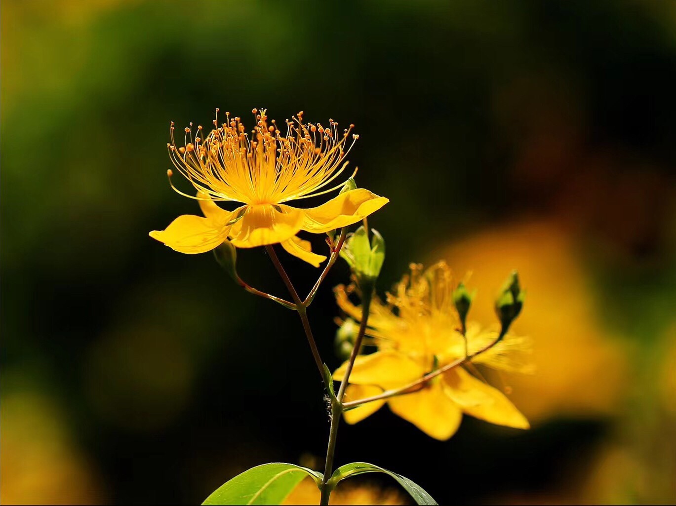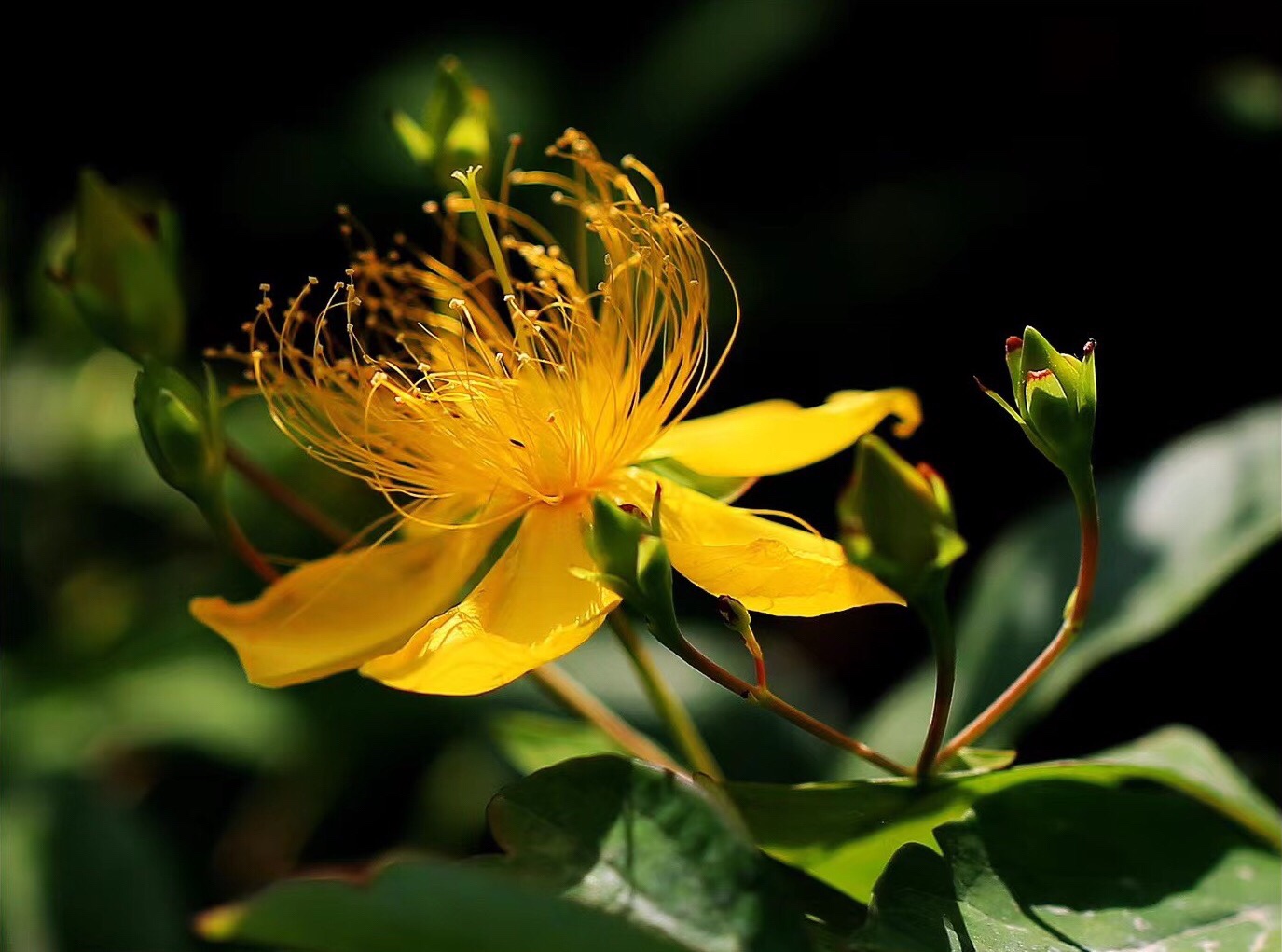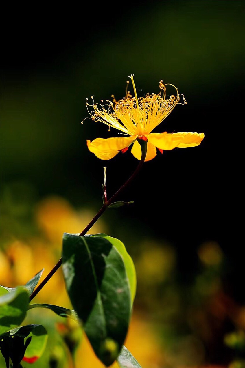 《金丝桃》 灿灿蝴蝶花, 红黄蕊似发。 芳容虽少见, 美誉信无涯。 旋瓣风车转, 开蕾聚伞斜。 若君身不爽, 饮此鸣心茶。