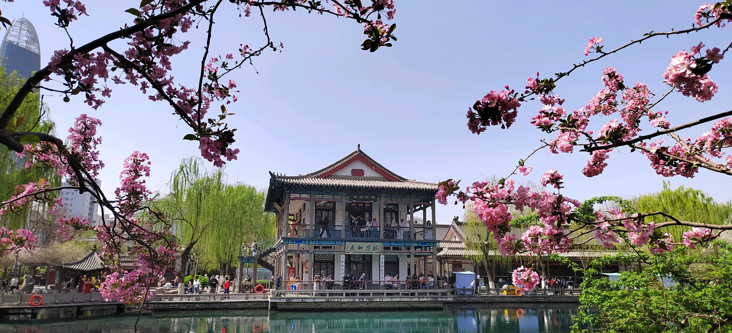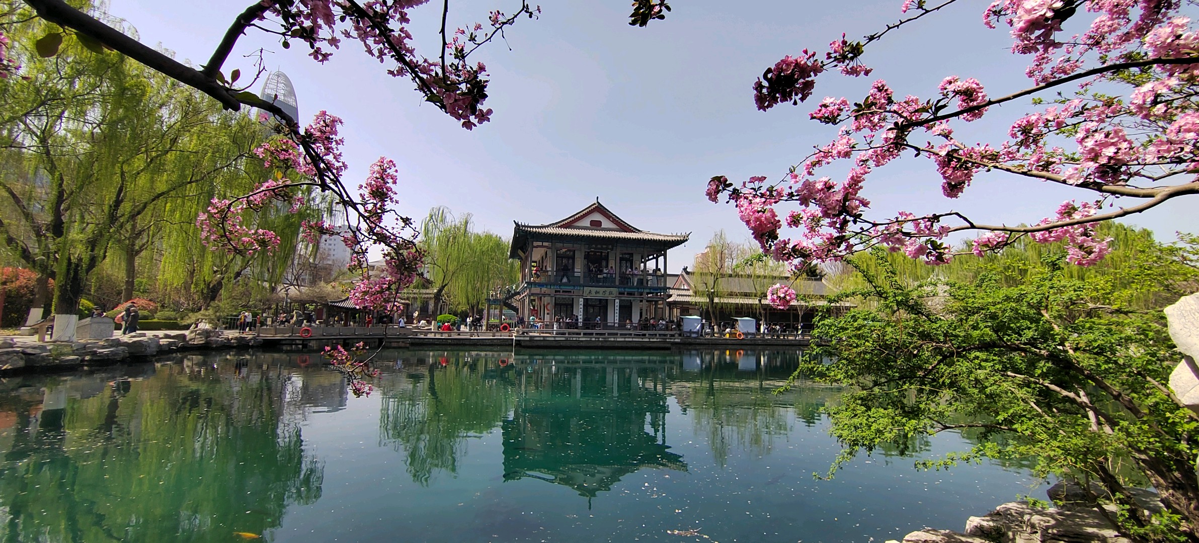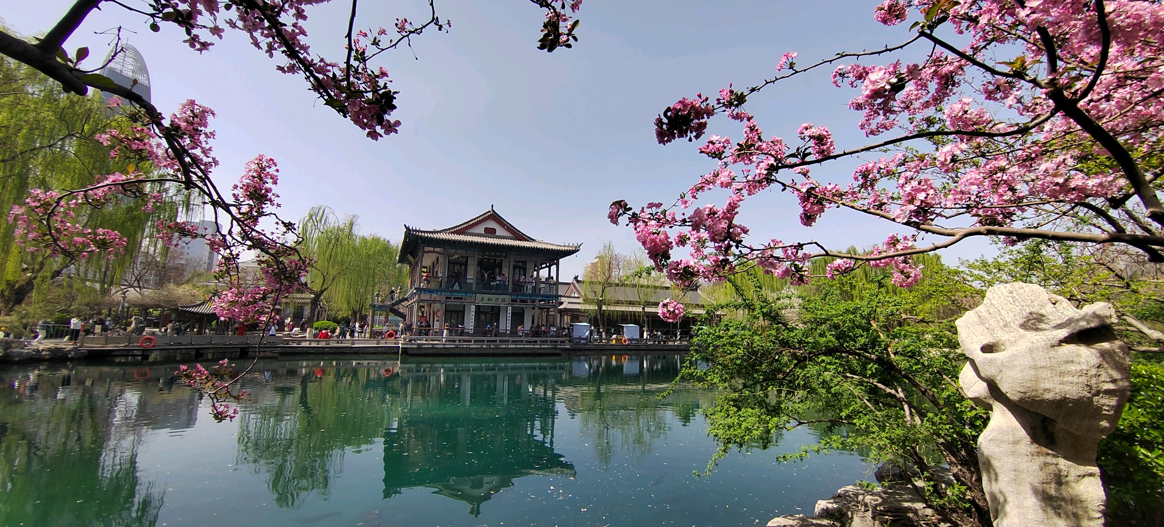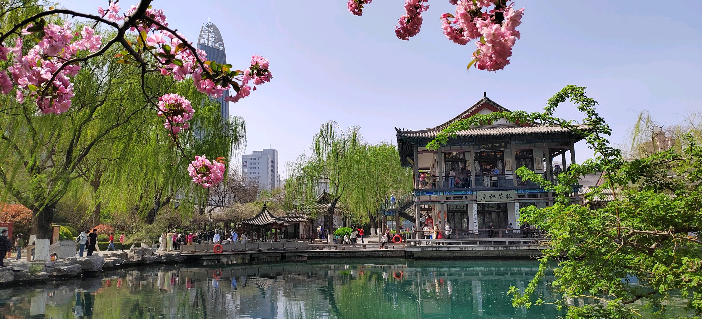 春暖花开的季节,五龙潭掩映在红花绿树中,如诗如画,非常漂亮!