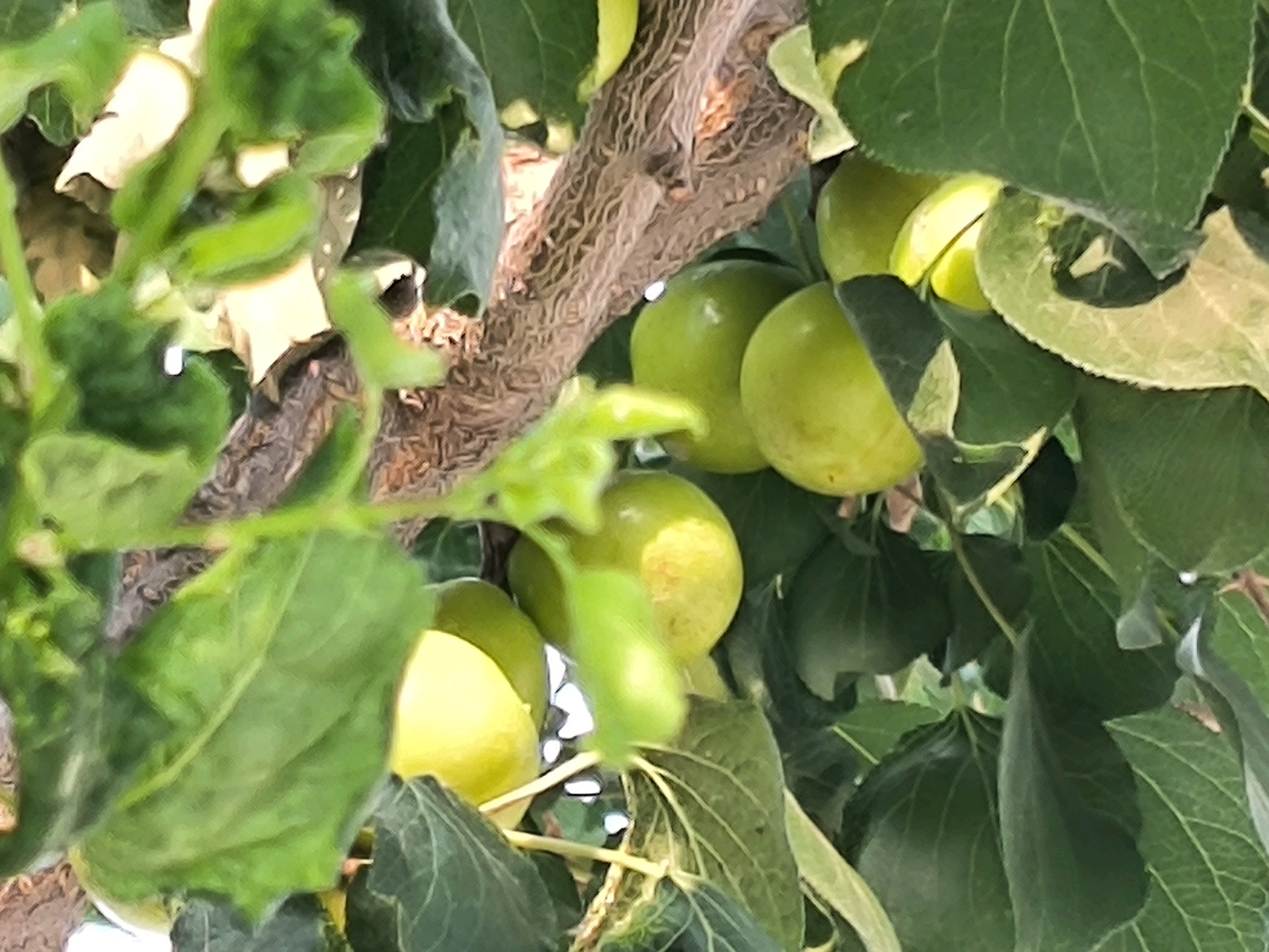 乡间的美景总是那么醉人!满树的小油杏挤挤挨挨,似乎要掉下来。青青的小苹果挂在枝头向人招手。柿子颇具雏形,在努力生长,等待秋天的成熟。绿意盎然,果实累累,陶醉其中,美哉美哉!