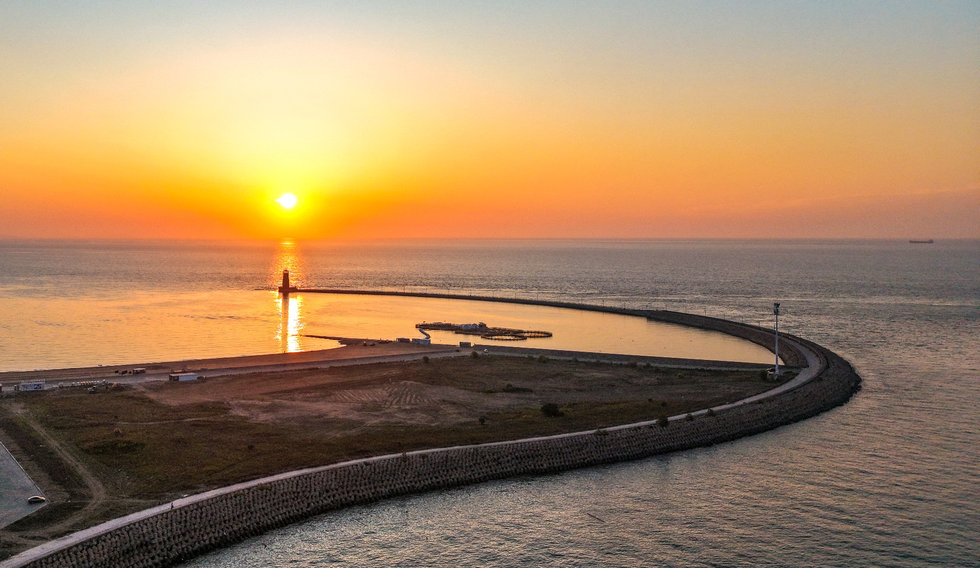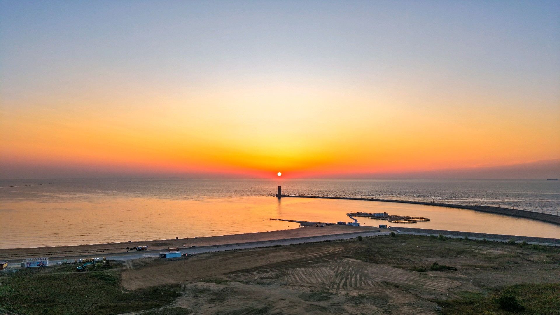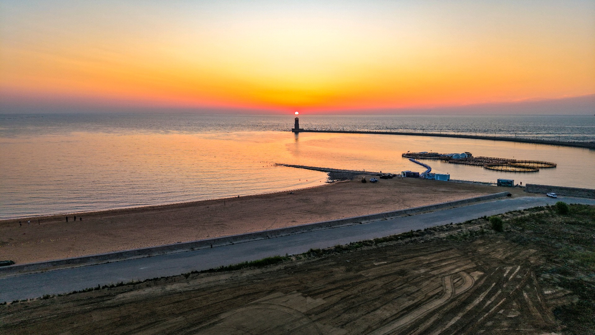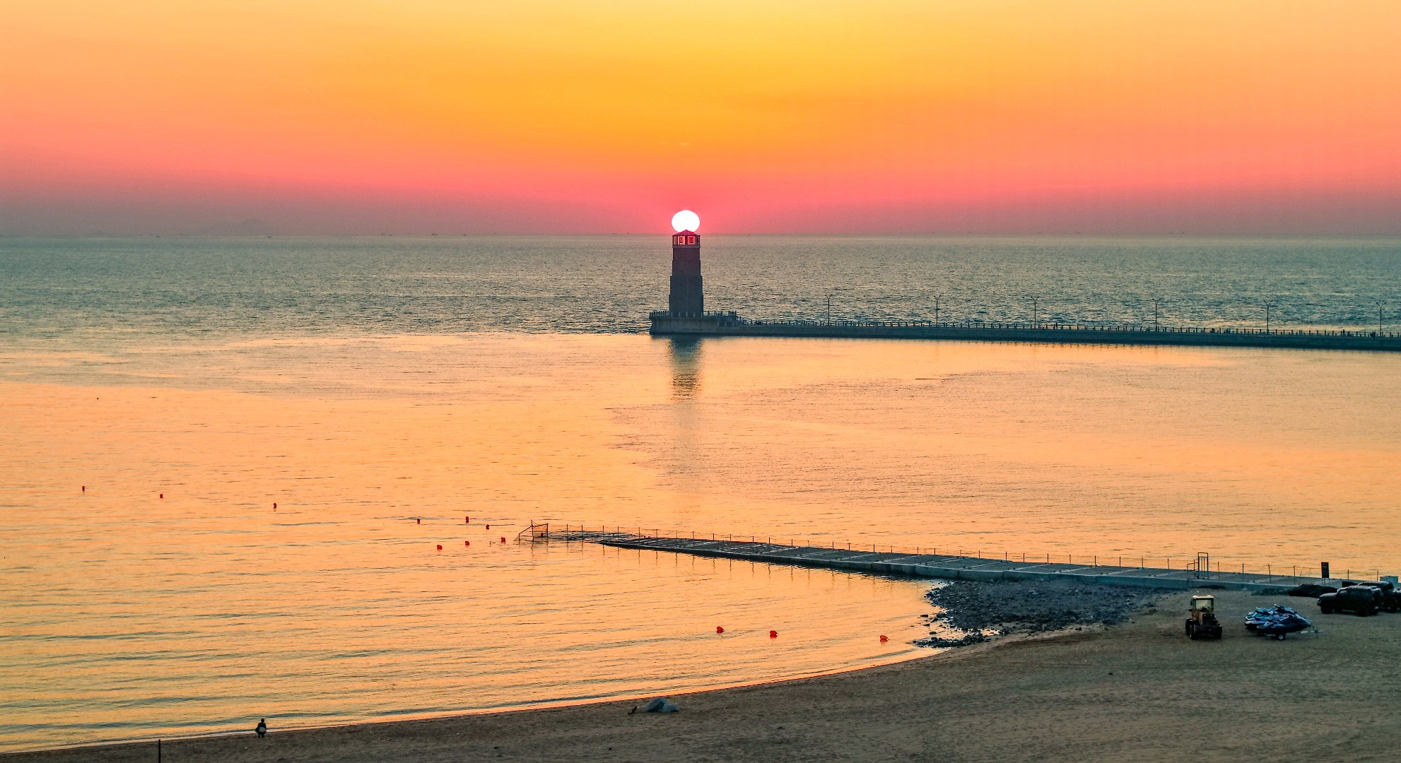 2025年6月12日,山东省日照市海龙湾灯塔日出美。