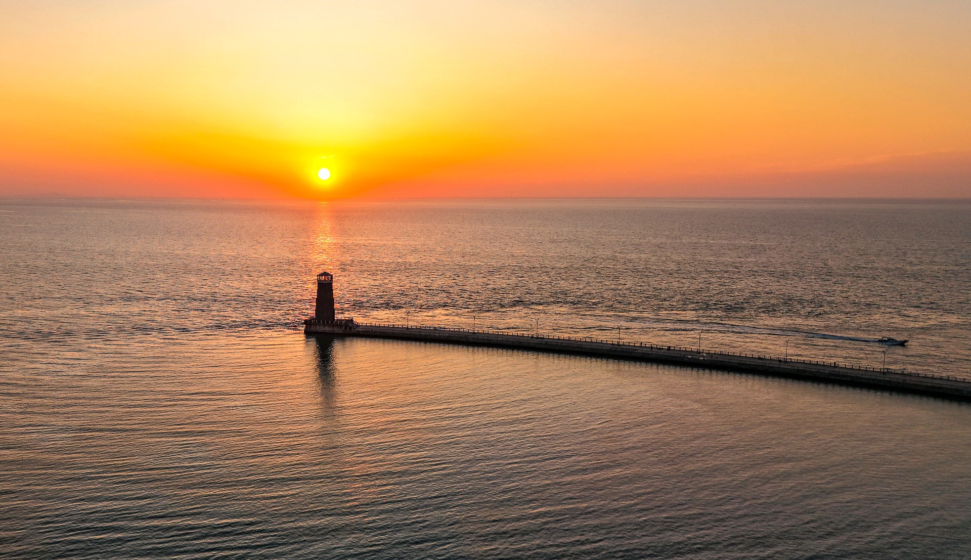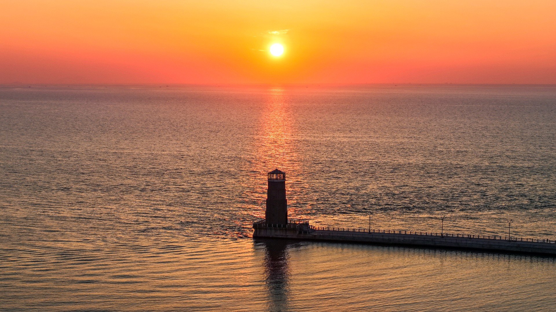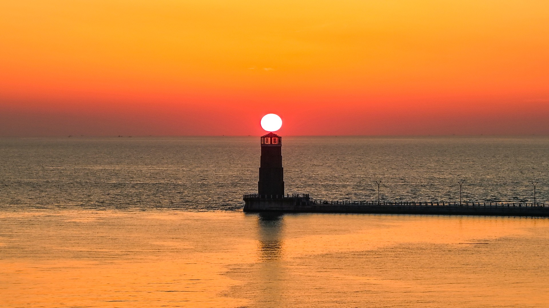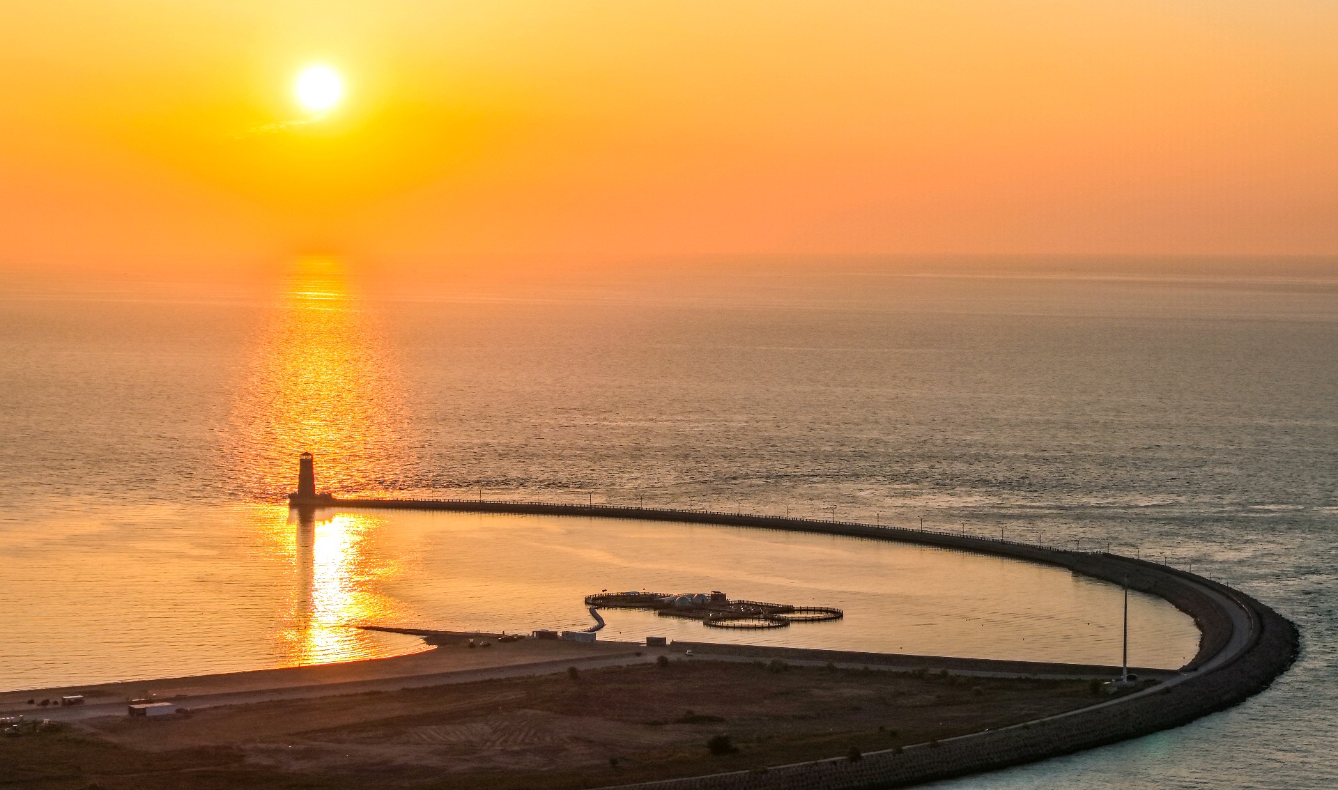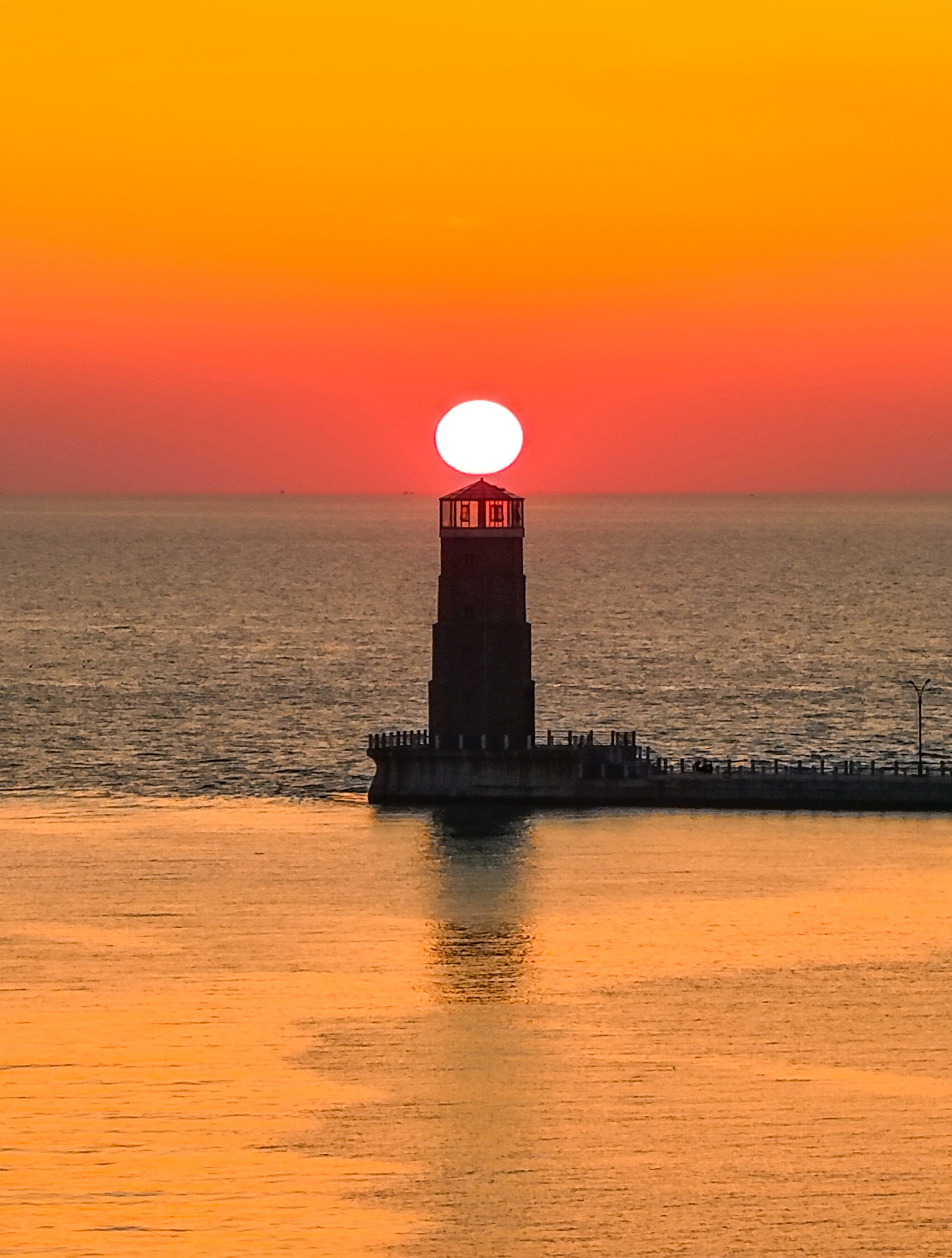 2025年6月12日,山东省日照市海龙湾灯塔日出美。