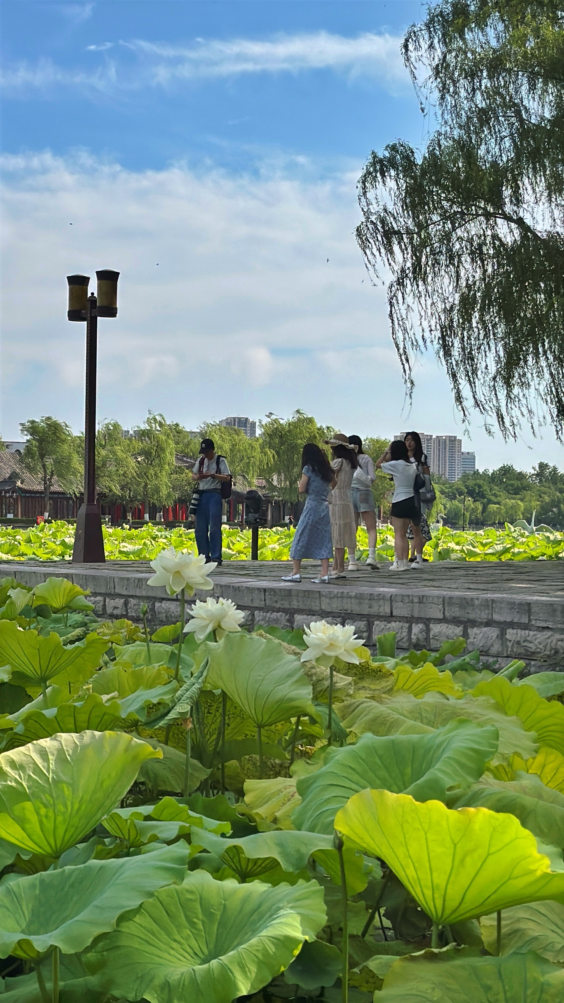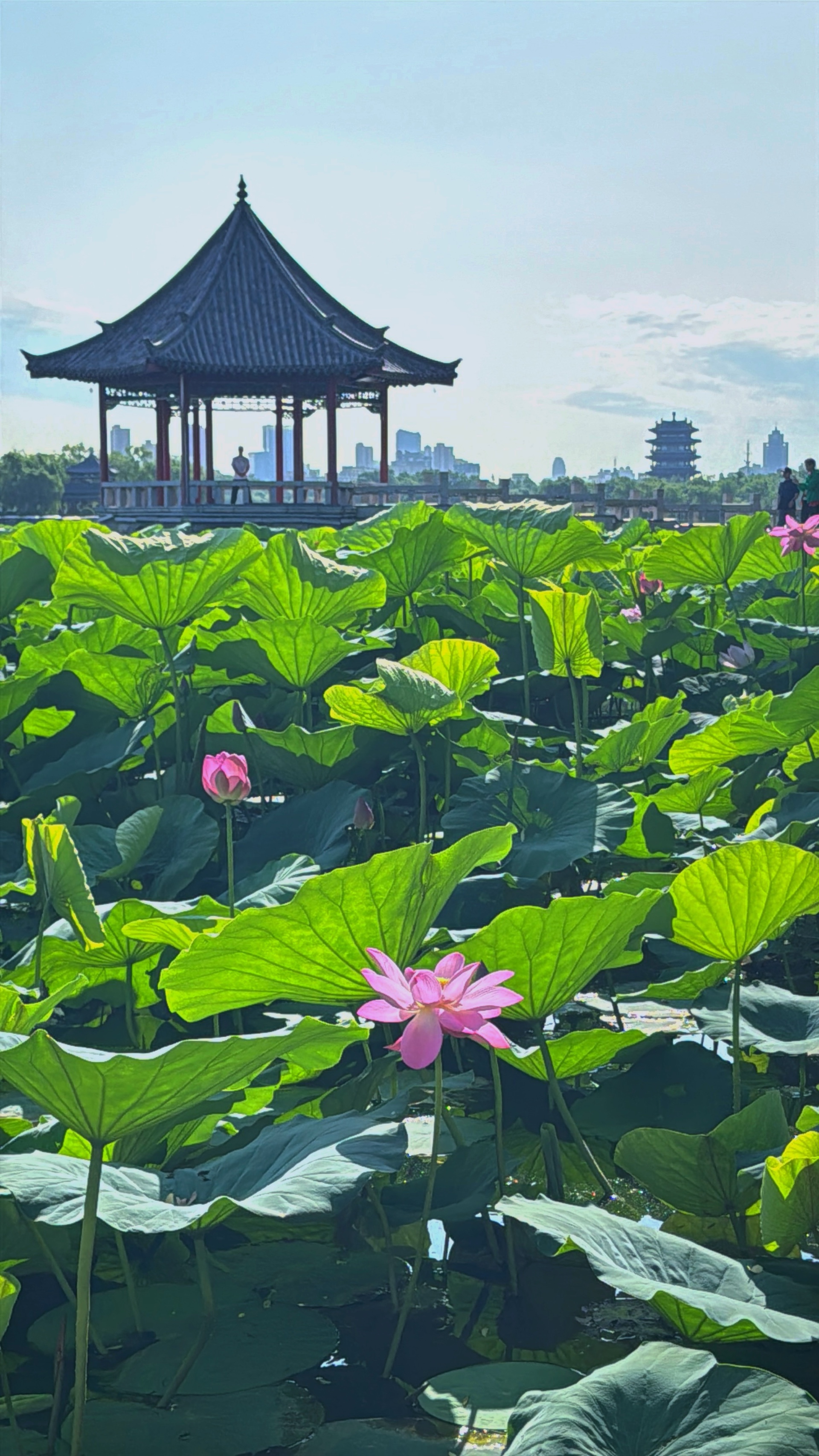 夏日大明湖,荷花肆意绽放。粉荷娇艳,白荷素雅,花瓣舒展,在绿伞般的荷叶间摇曳。微风徐来,清香悠悠,与古亭、碧水相融,勾勒出一幅清新雅致的画面,美不胜收,尽显大明湖的灵动诗意。