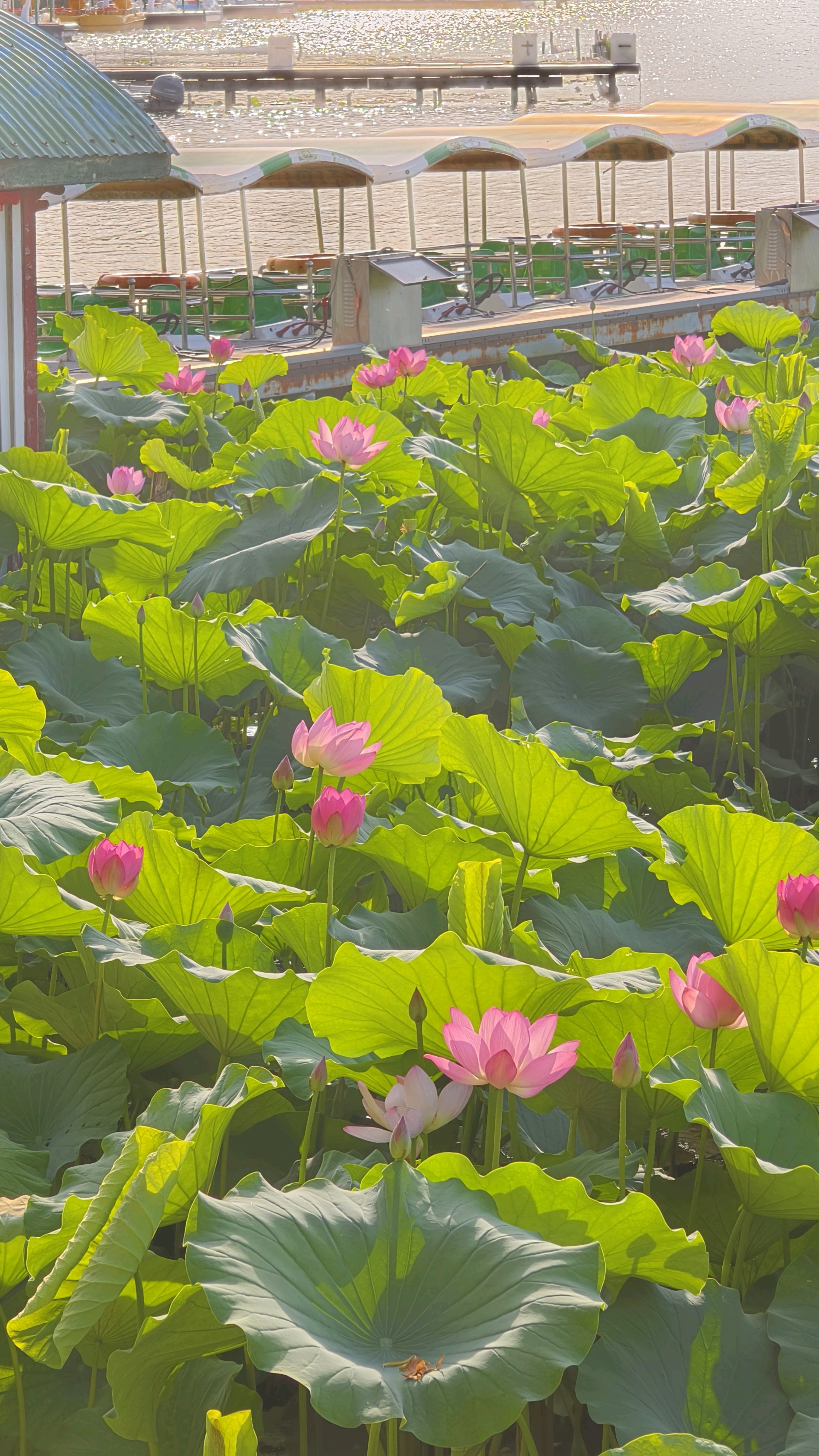 #打卡齐鲁好风光,共赴夏日盛景#夏日大明湖畔的荷花正在盛开。漫步湖边,荷叶田田荷塘里的荷花随风摇曳,荷香扑鼻。晨光洒在荷叶上熠熠生辉,晨起的水鸟在梳洗着自己的羽毛,一派浓浓的夏日风情。令人流连忘返,陶醉其中。