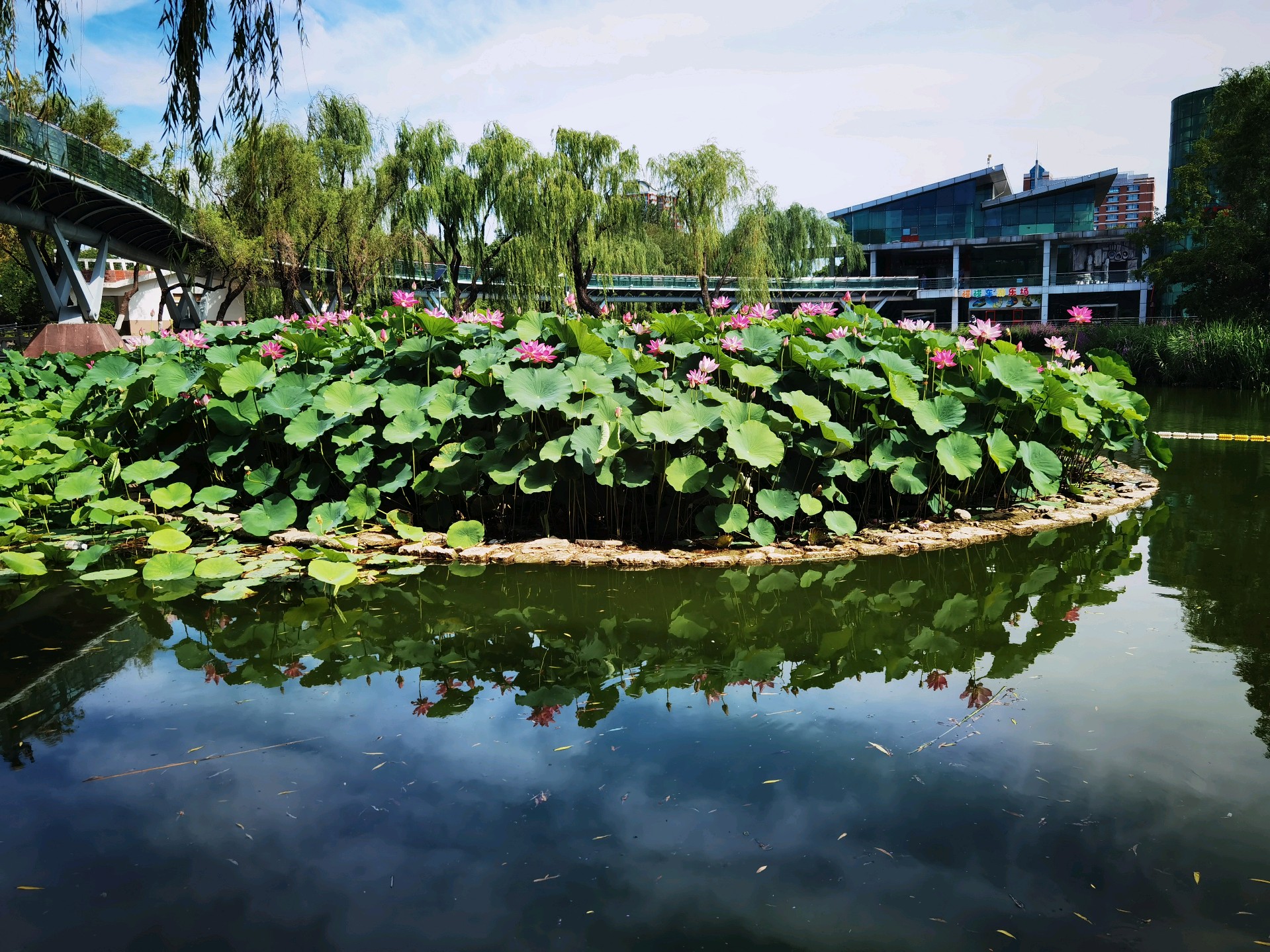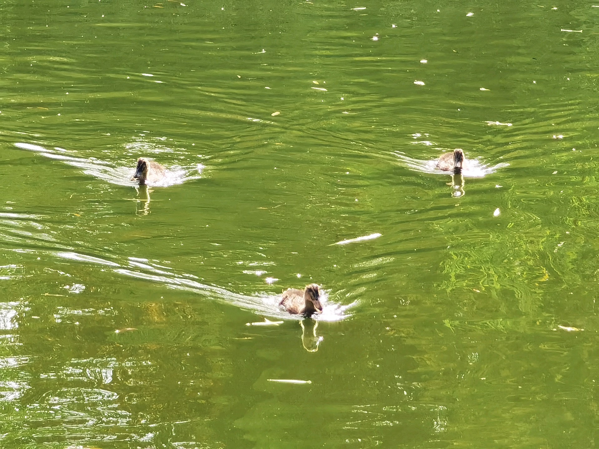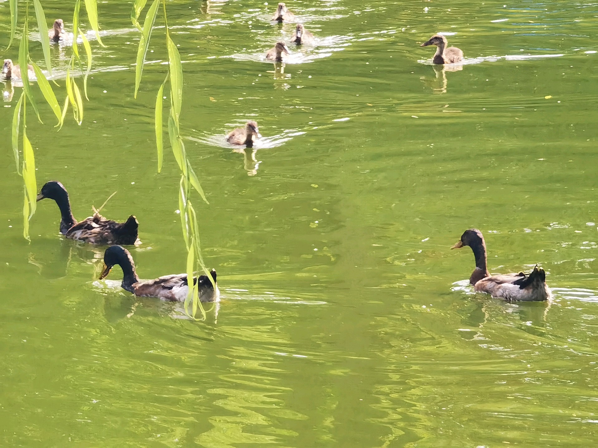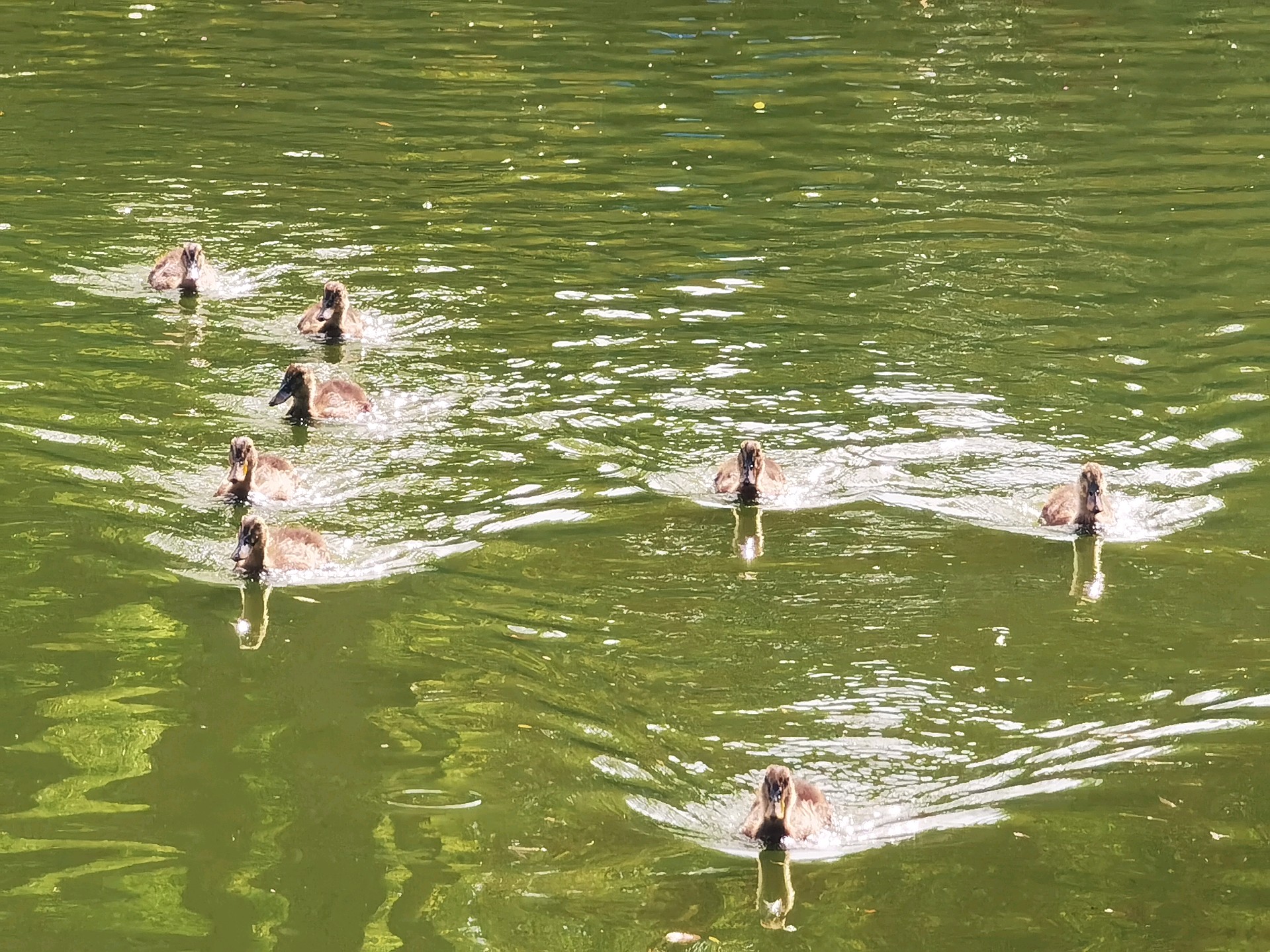 济南泉城公园映日湖不仅有荷花,还有一群鸭子游来游去,这是一只斑嘴鸭妈妈带着它的十七个孩子,几个月时间,小鸭子长大了,游在一块,都和鸭妈妈一样大了。这群鸭子活跃了整个湖,给人们带了许多欢乐。