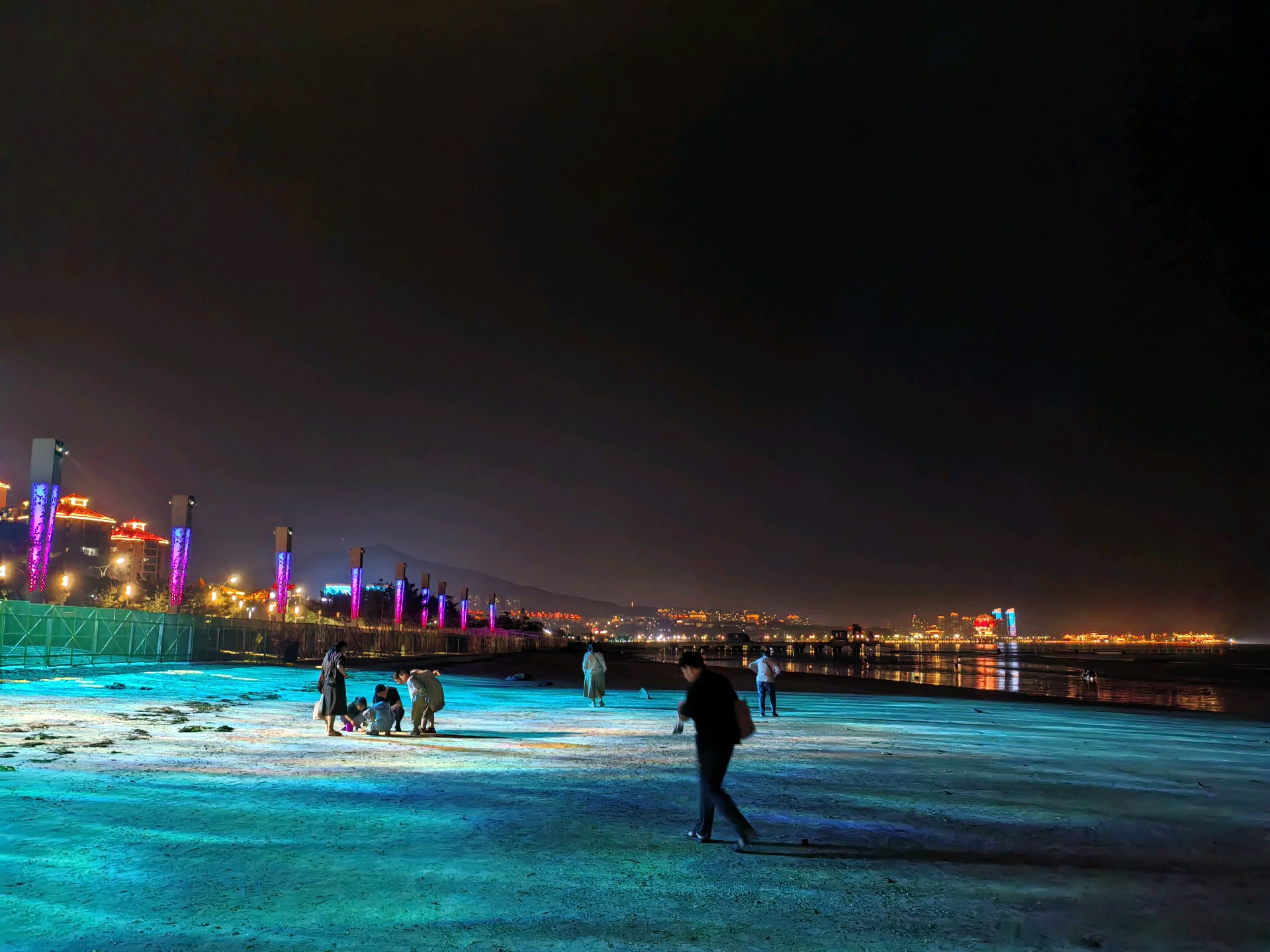 终于到了烟台海边,虽然天黑看不清远处,但是能吹吹海风,听听海浪的声音,感觉也很浪漫。