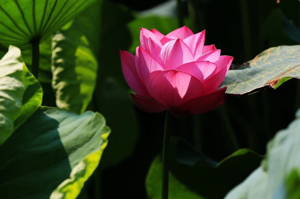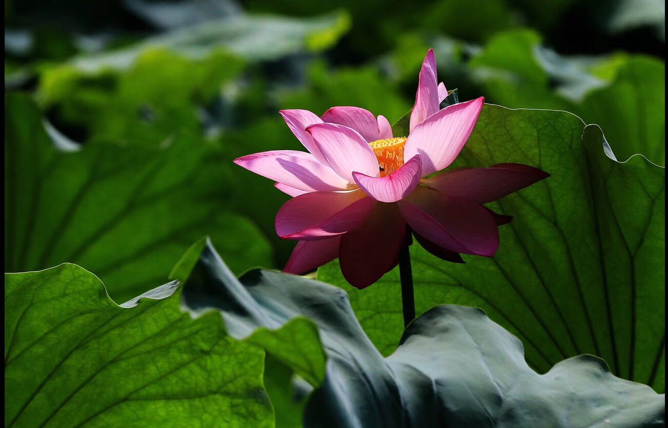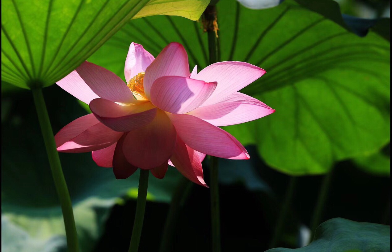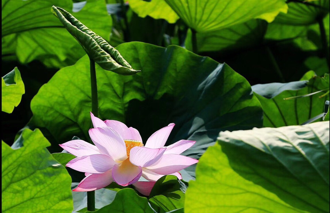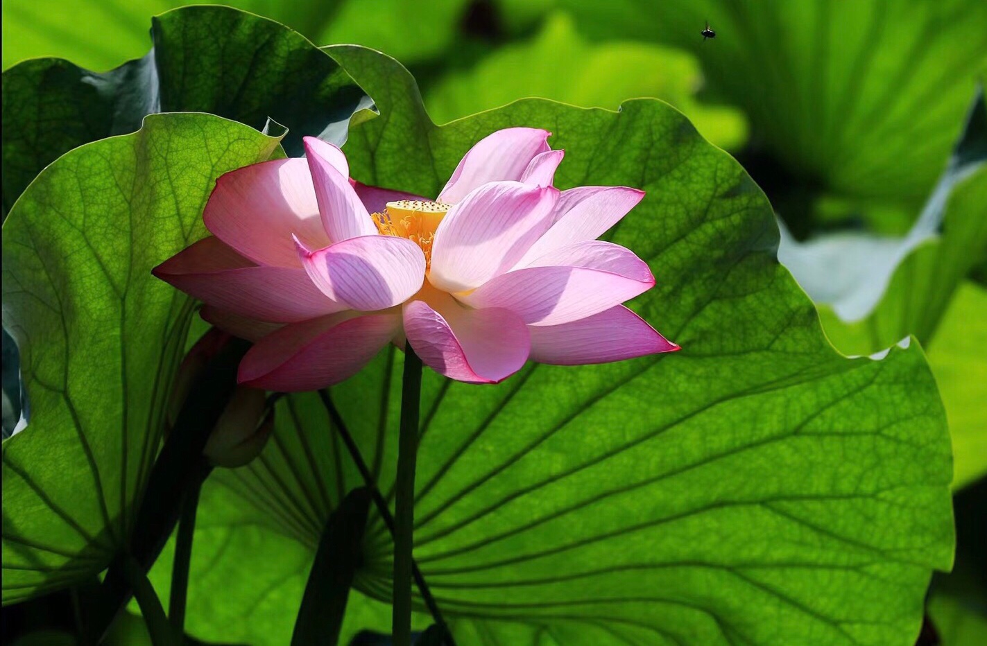 荷花盛开的季节到了,一片片翠绿的荷叶迎风招展,如同绿色的海洋。荷花瓣在阳光的照耀下,如同涂抹了一层淡淡的红晕,美丽动人。