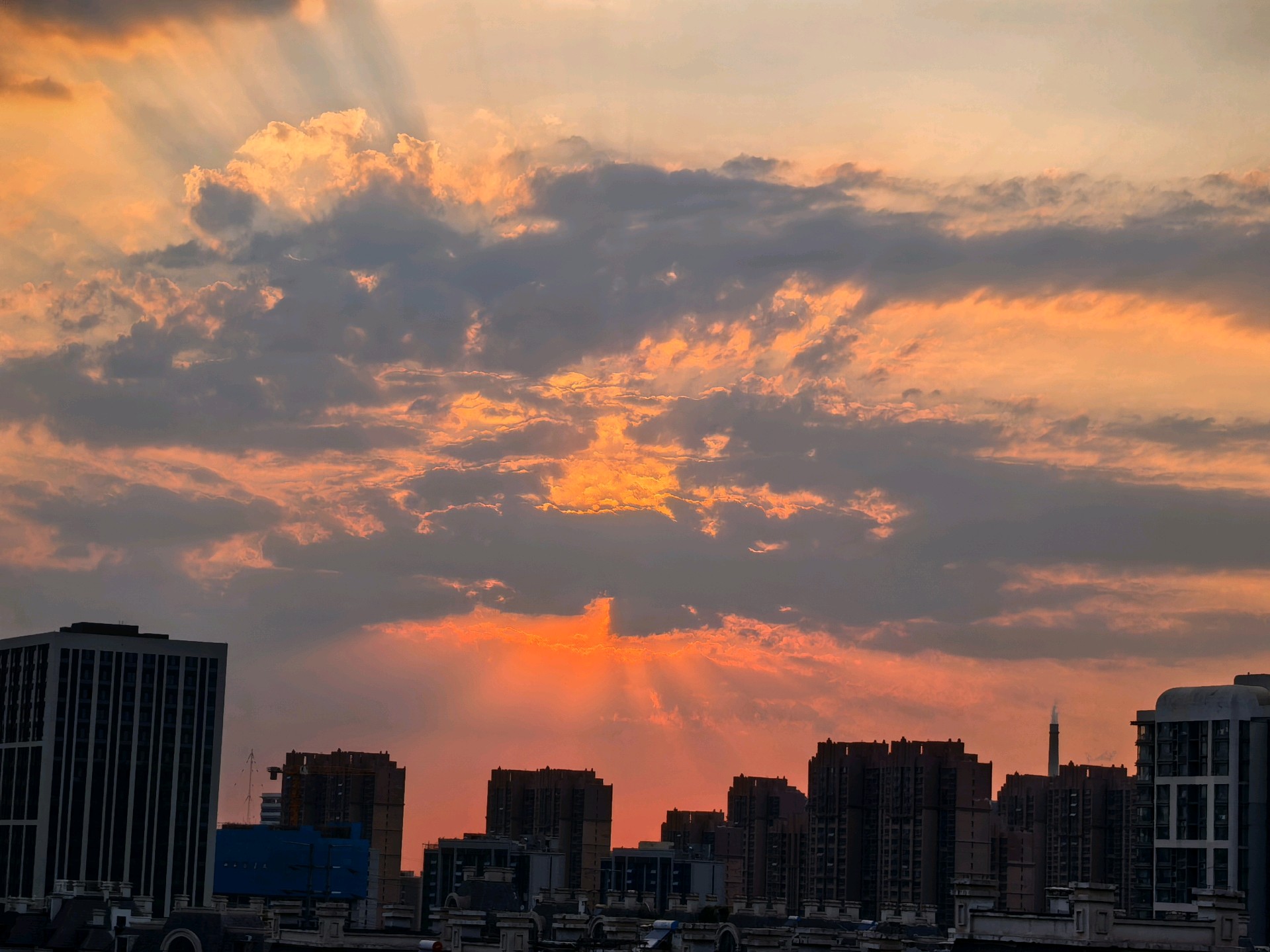 泉城傍晚,风起云涌,晚霞如画,令人陶醉。