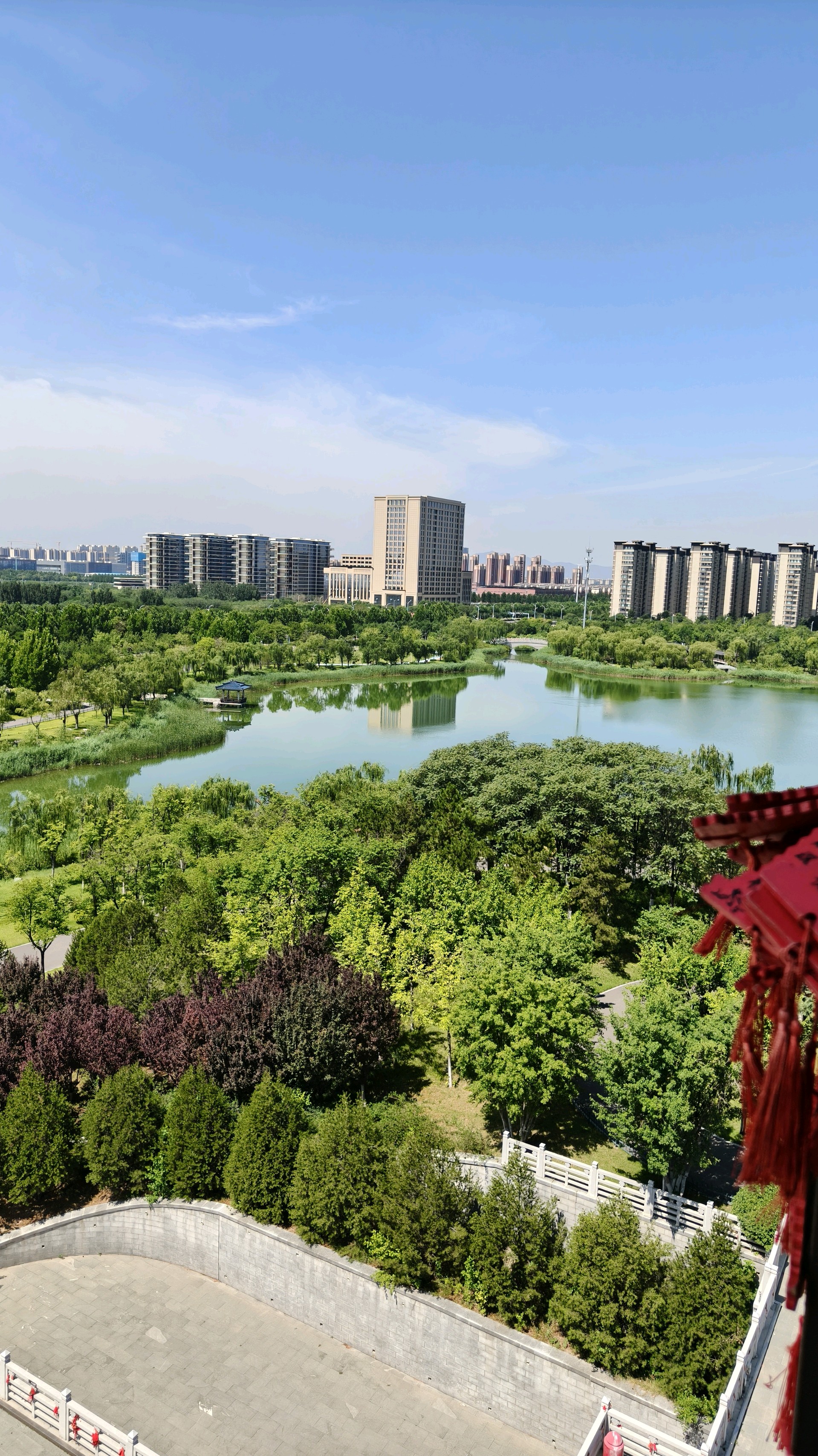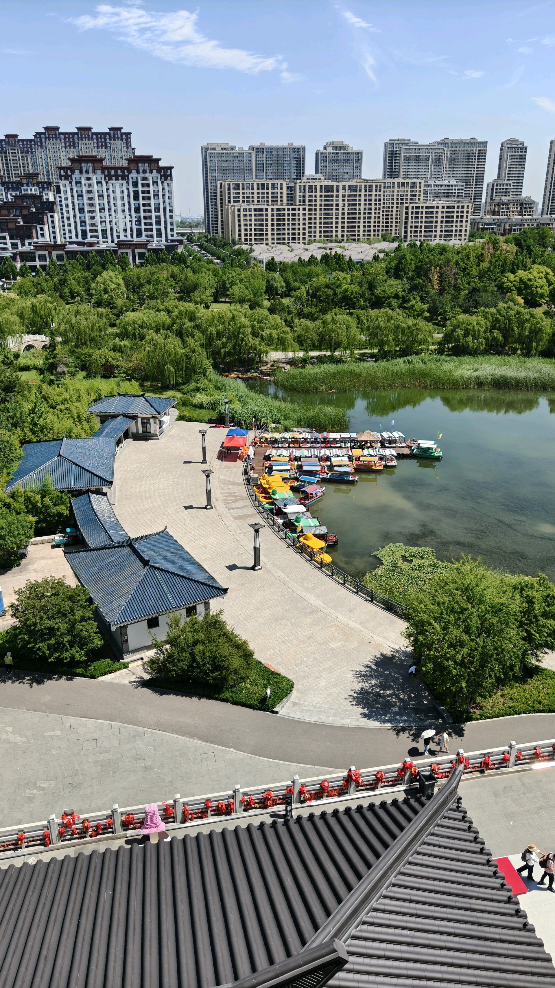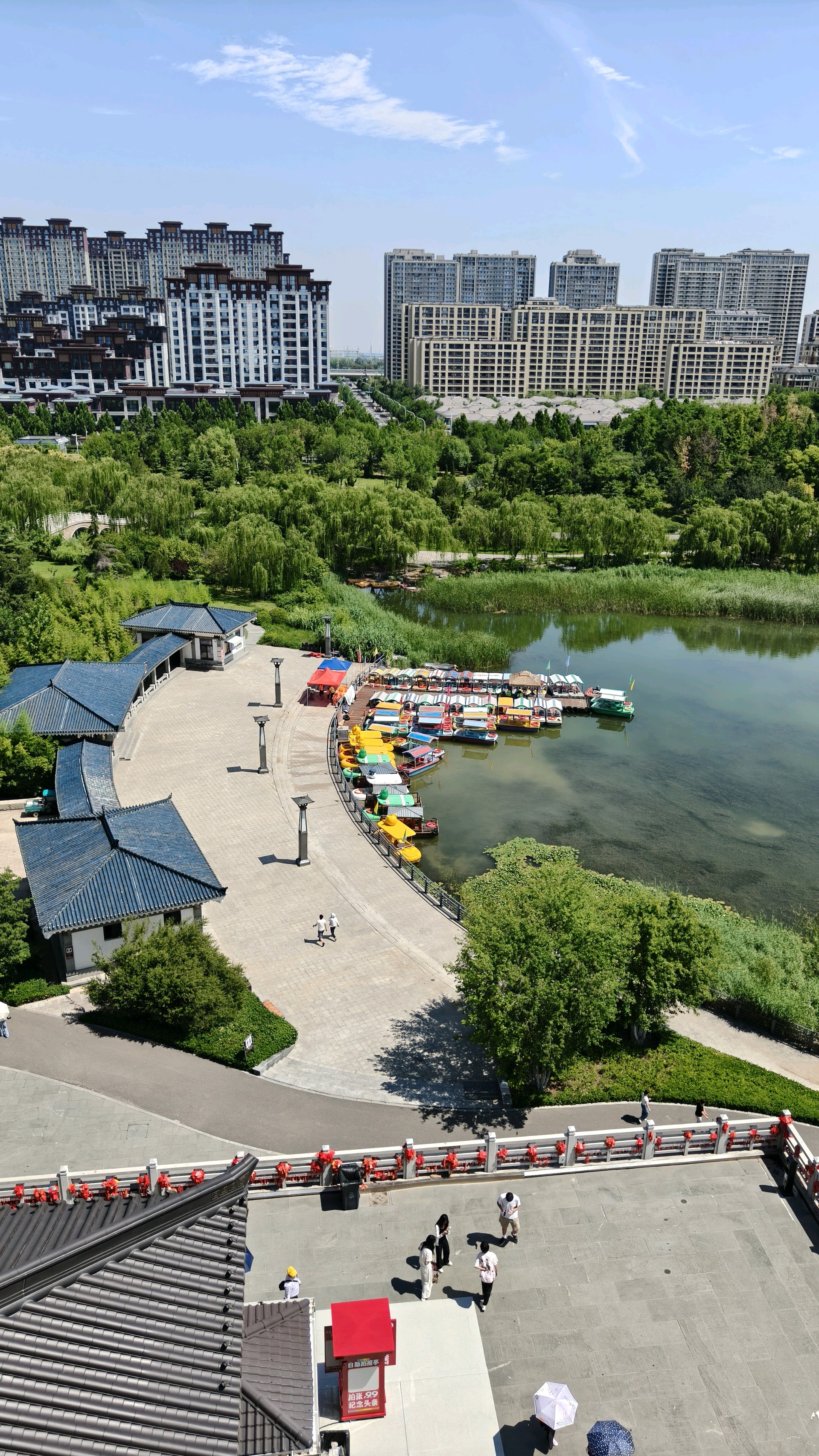 哇塞!淄博海岱楼周边老美啦!古楼很有韵味,周边水域波光粼粼,绿树在风中晃悠,就像仙境一样!