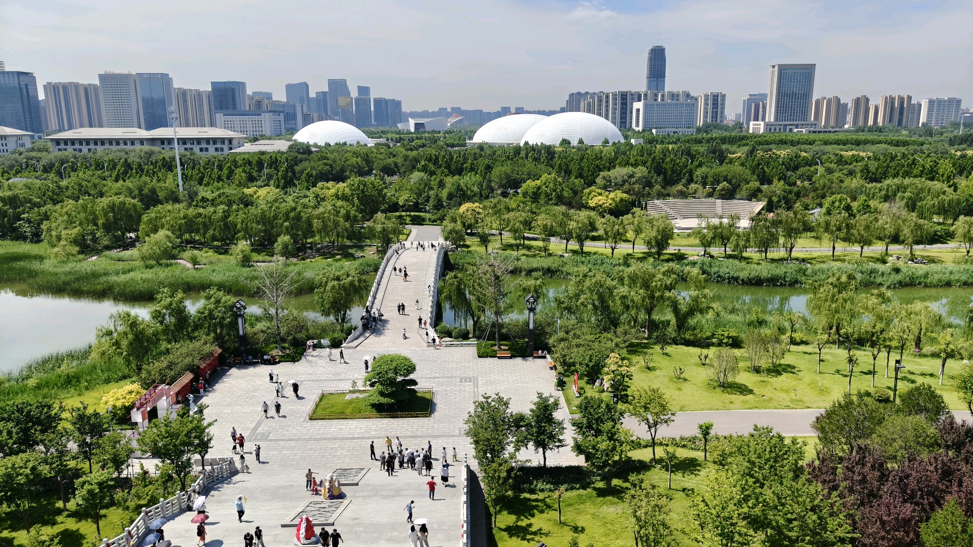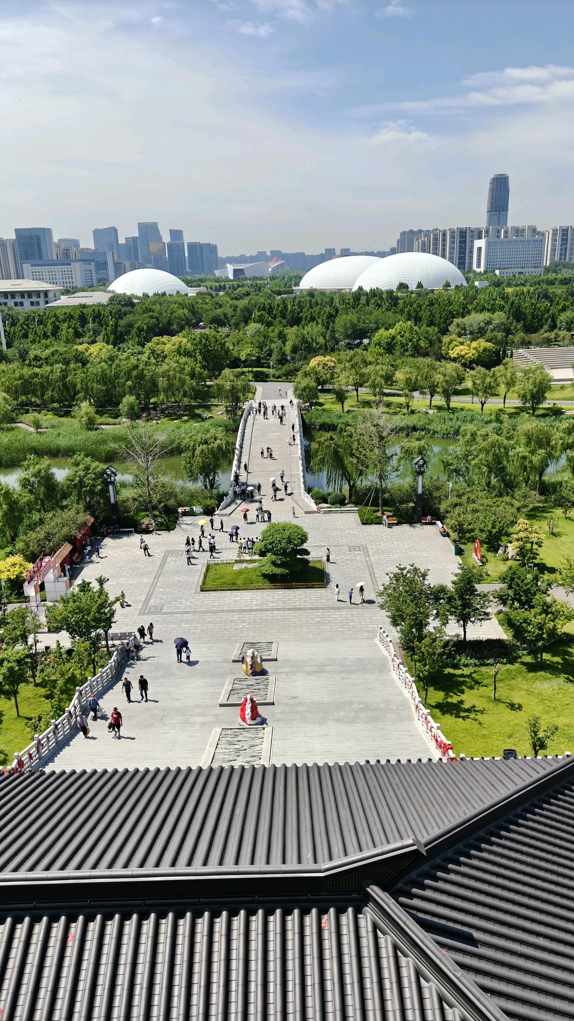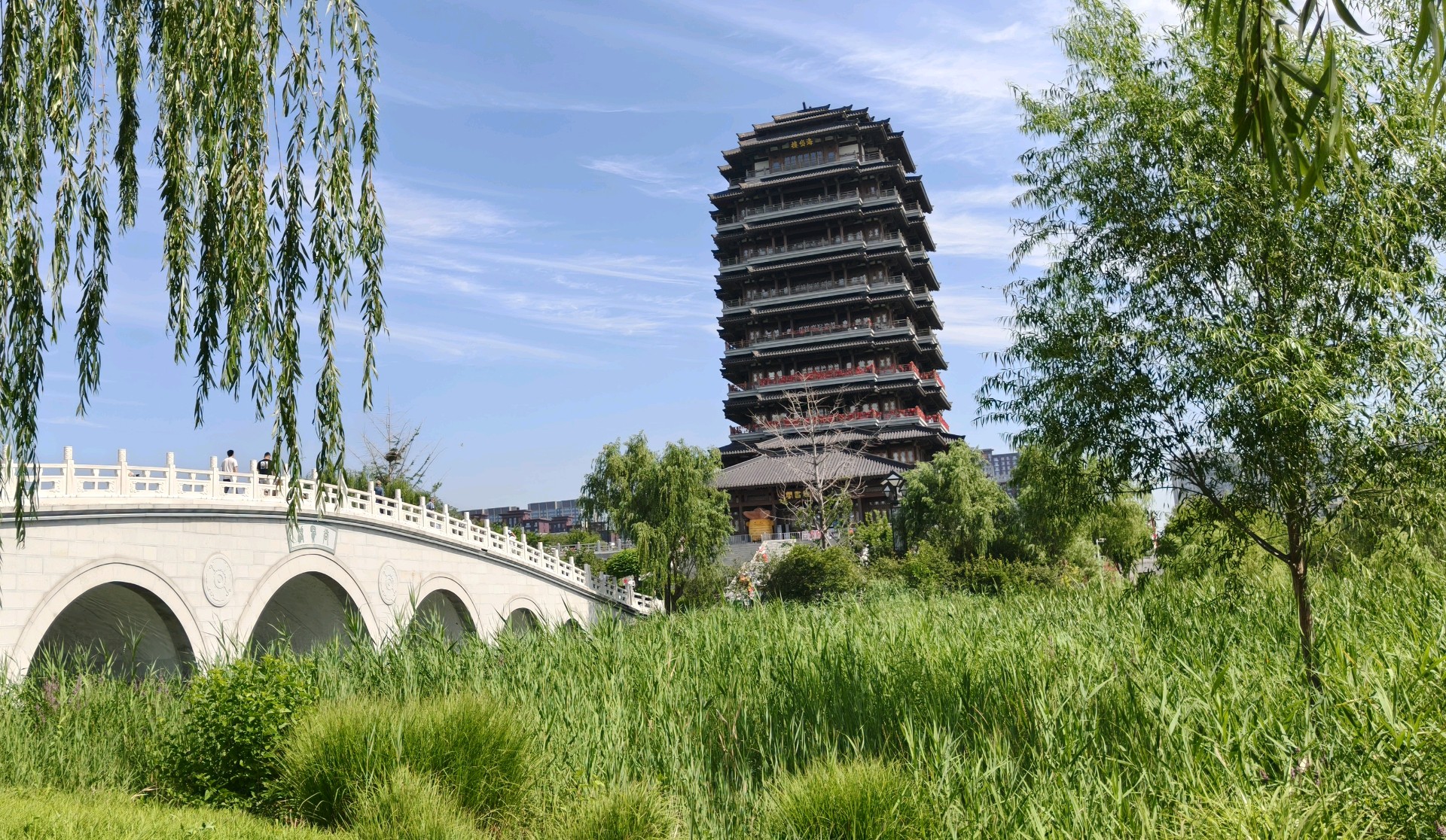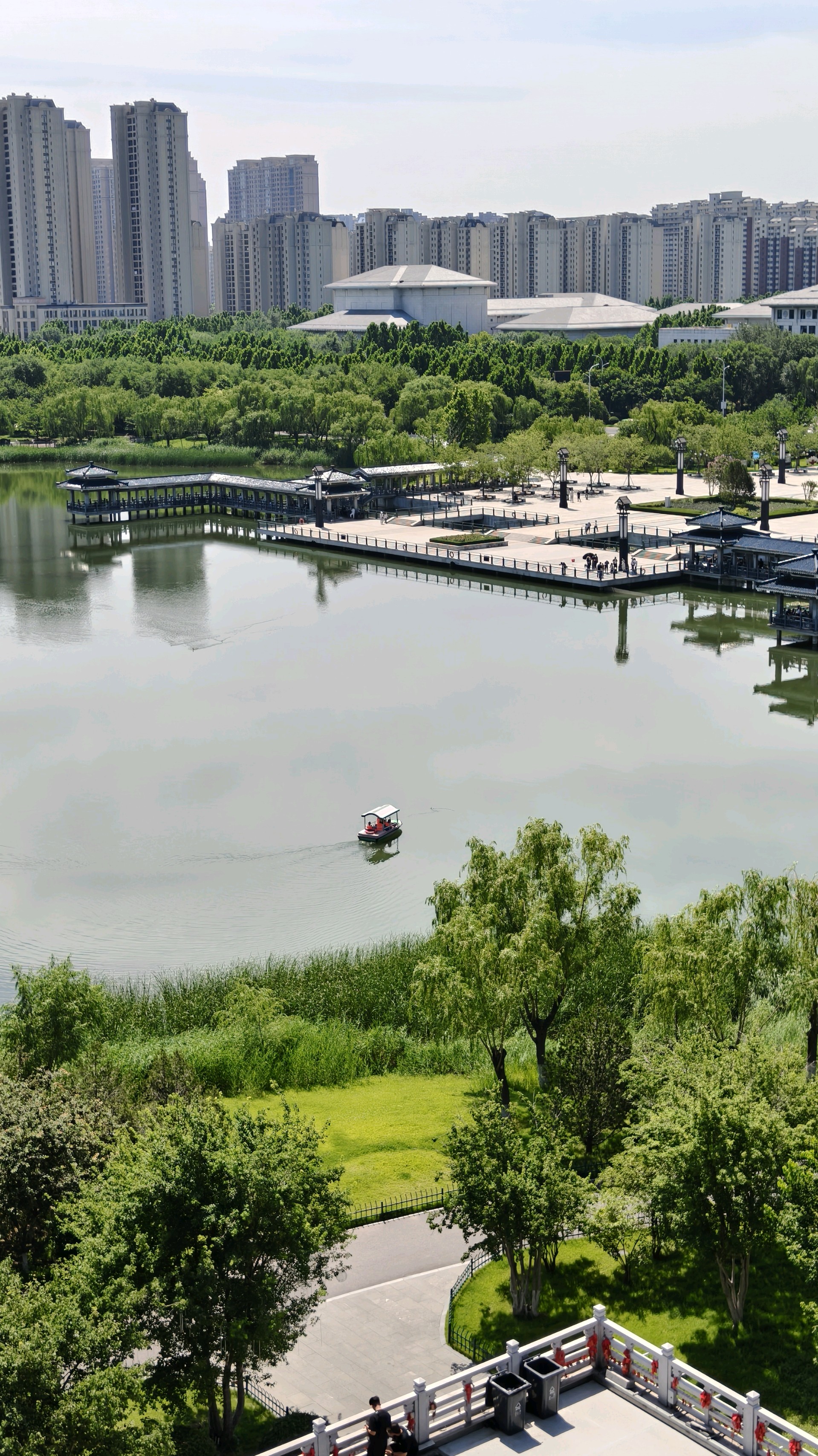 哇塞!淄博海岱楼周边老美啦!古楼很有韵味,周边水域波光粼粼,绿树在风中晃悠,就像仙境一样!
