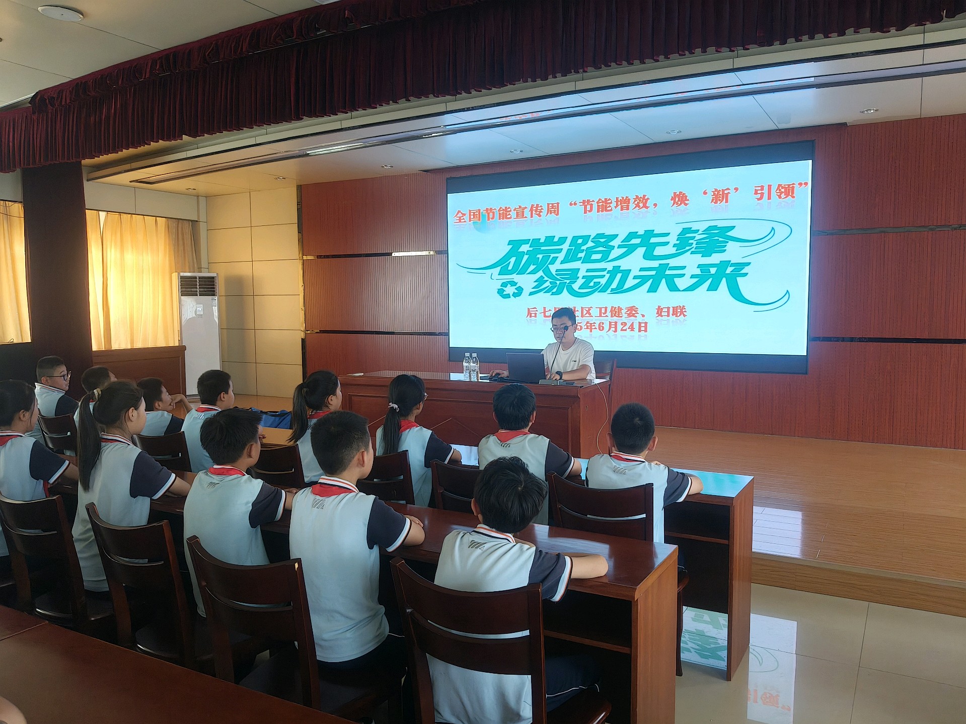 为增强青少年的环保理念,提高青少年的综合素质,6月24日下午,财源街道后七里社区卫健委、妇联、退役军人服务站联合七里学校开展了“碳路先锋 绿动未来”低碳知识讲座。
