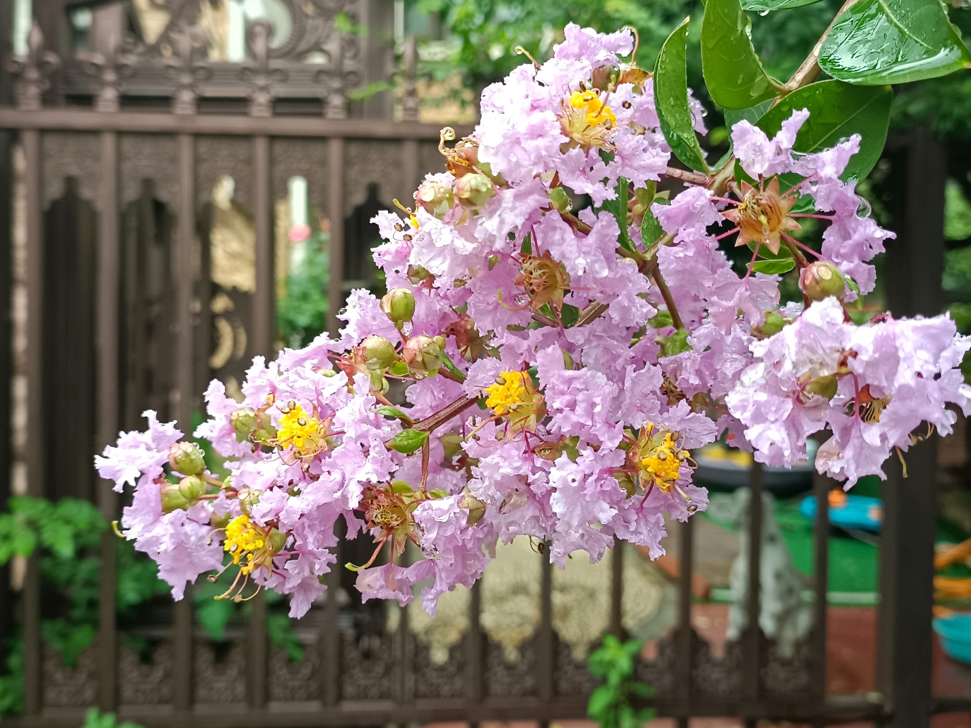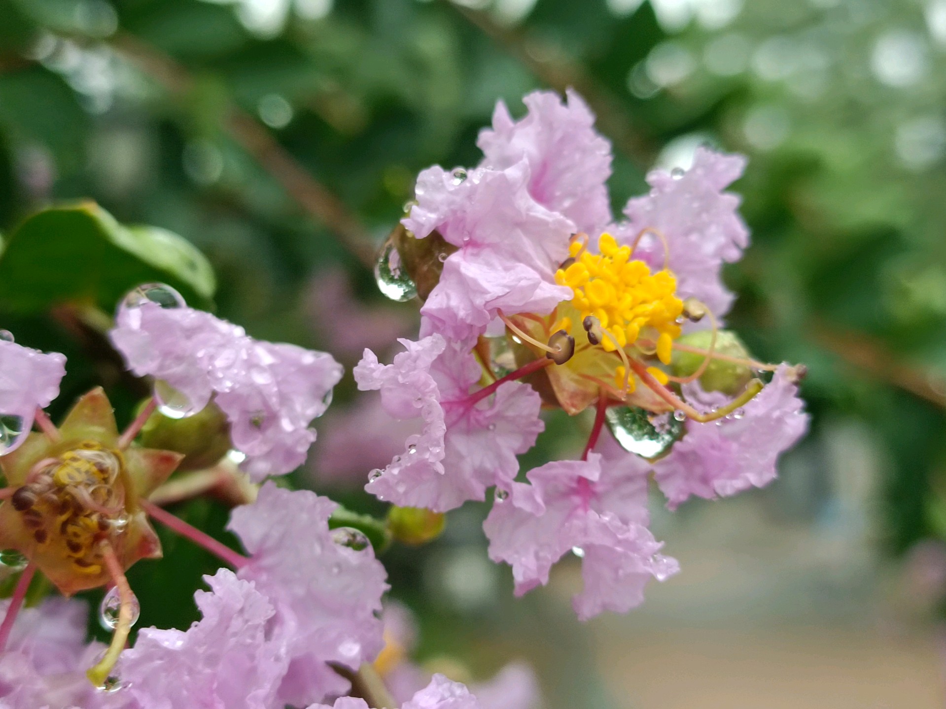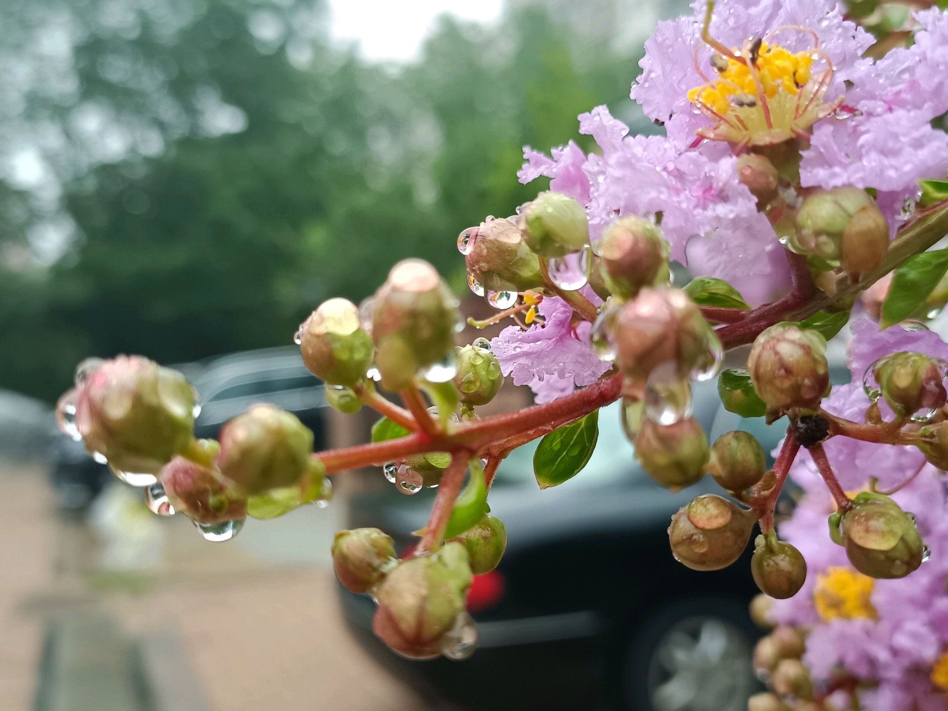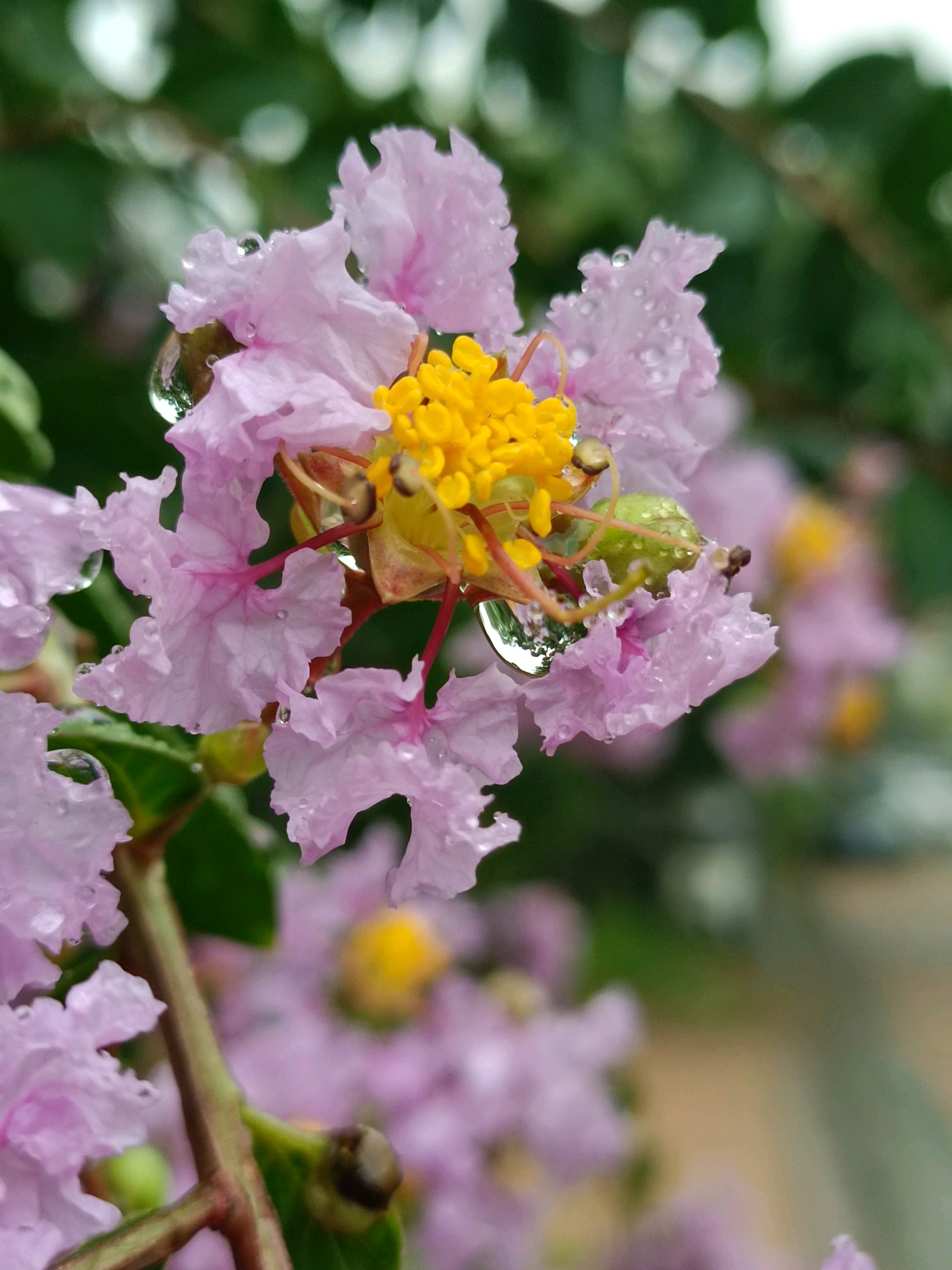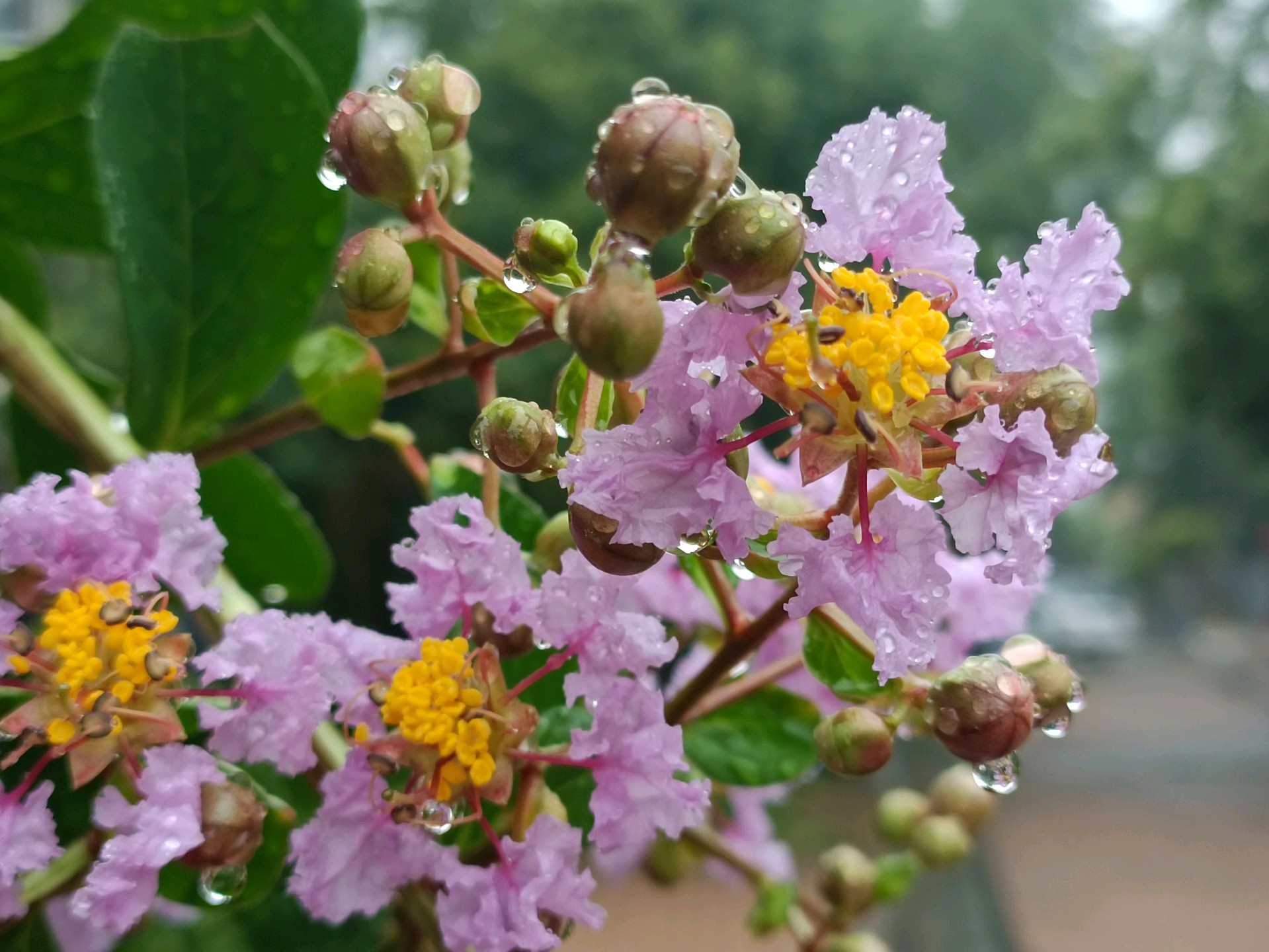 #天气情报站#赞美紫薇花,有句古诗:“盛夏绿遮眼,兹花红满堂。自惭终日对,岂是紫微郎。”盛夏的济南,大街小巷处处可见红色、粉色、白色的紫薇花,艳丽不争春,盛夏满枝头。昨天济南开始降雨,雨中的紫薇花更是水灵灵、娇滴滴,让人不舍离去。今天上午拍摄于小区