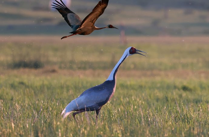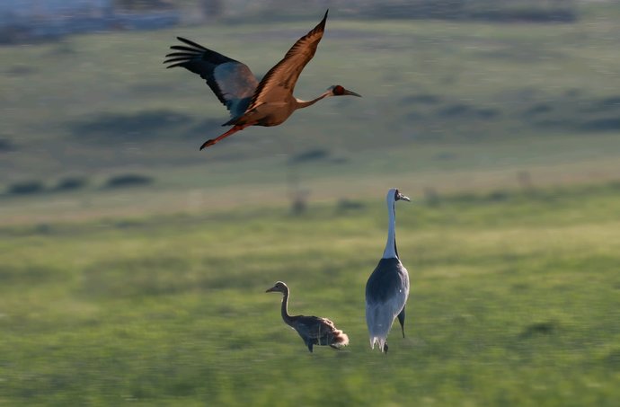 白枕鹤一家在草原上的生活,是自然与温情交织的诗篇